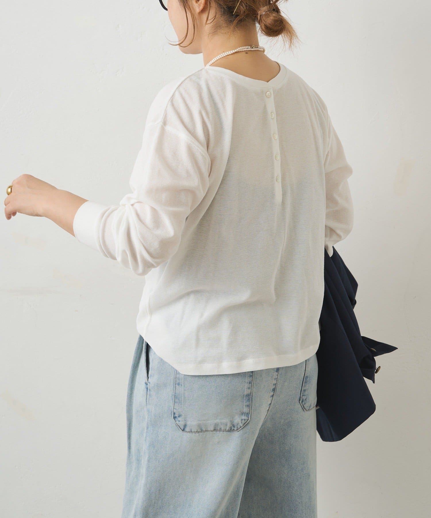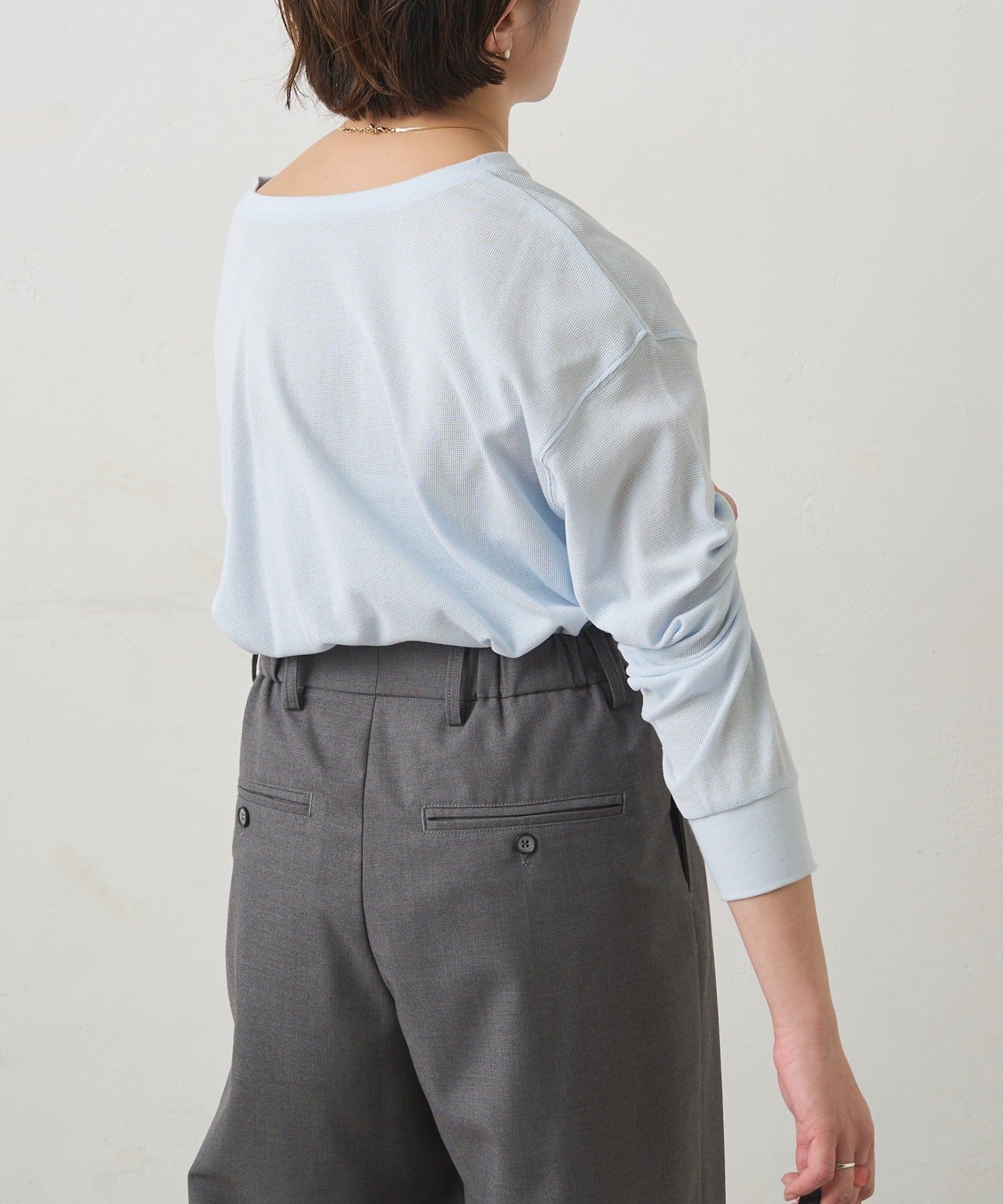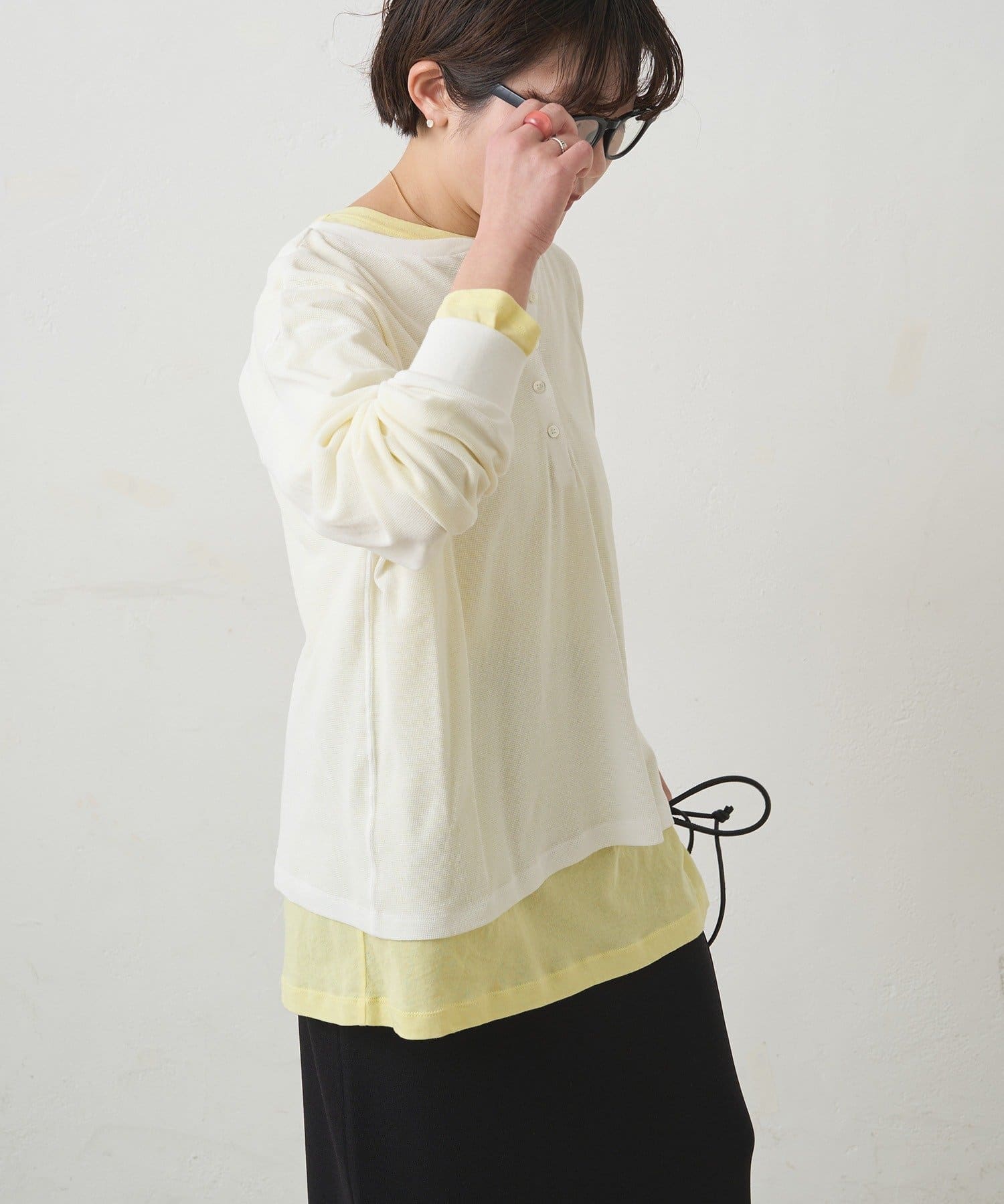 ふっくらとしたワッフル素材が心地よい、軽やかなカットソー。