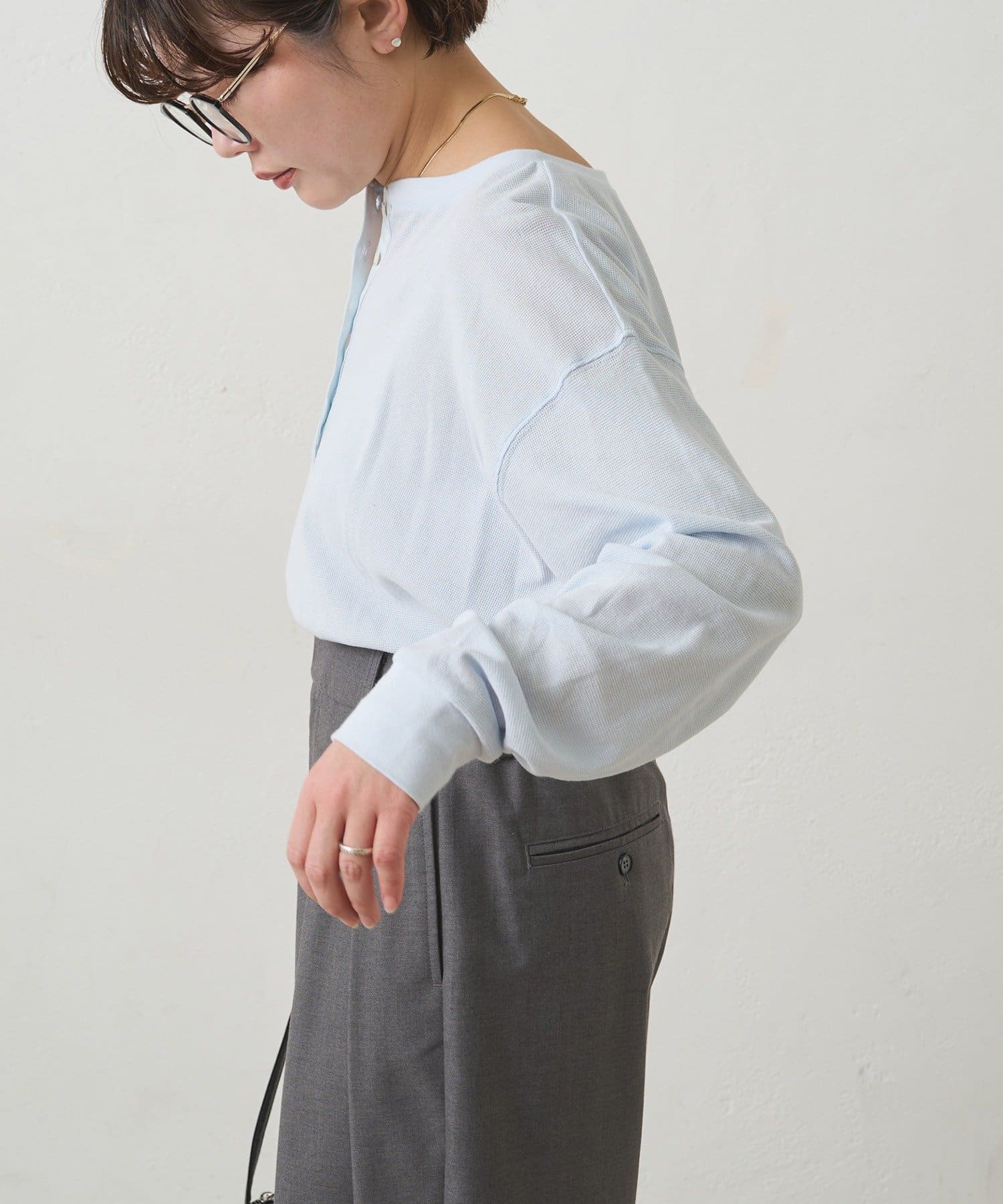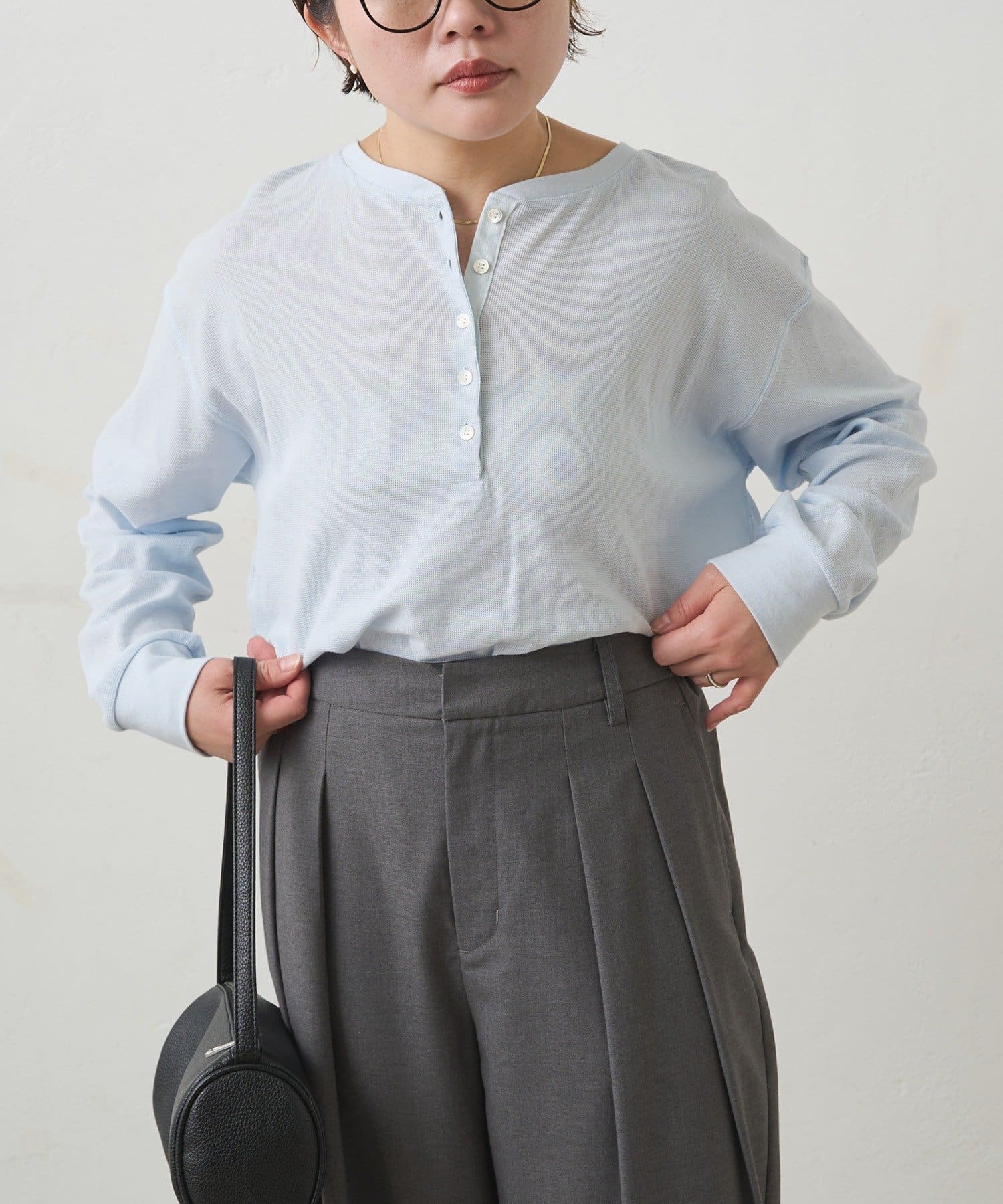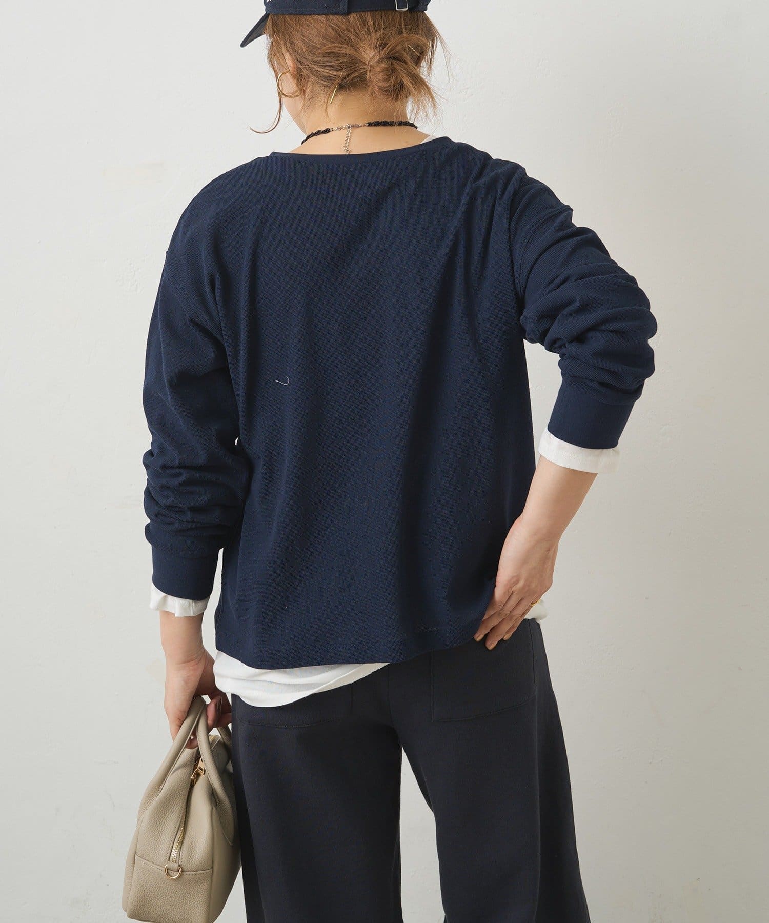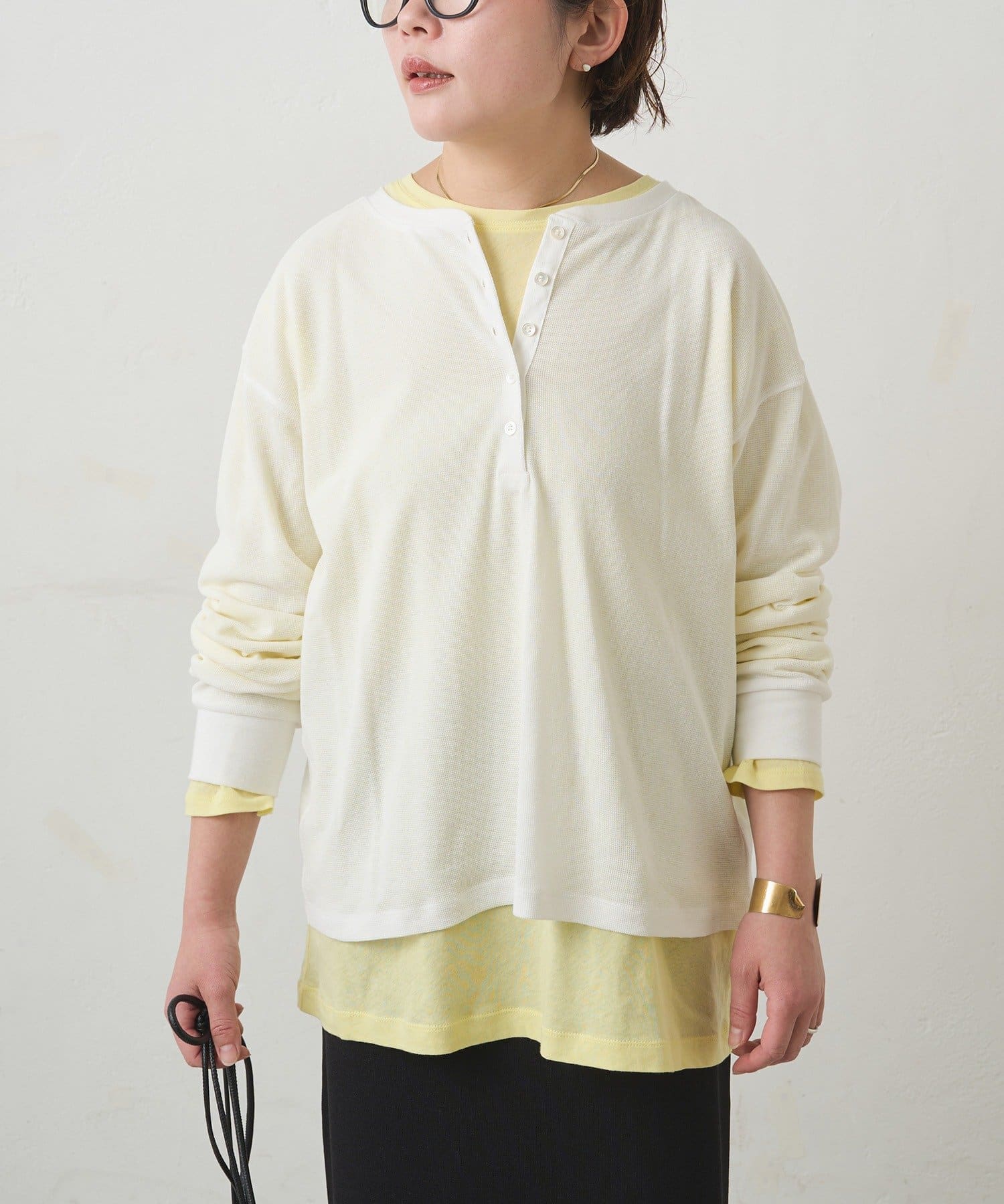 ふっくらとしたワッフル素材が心地よい、軽やかなカットソー。