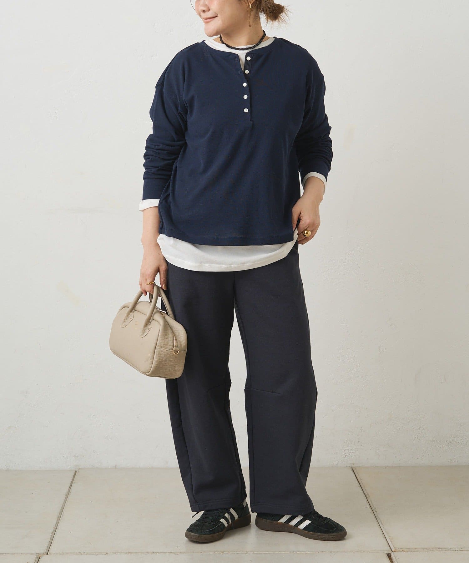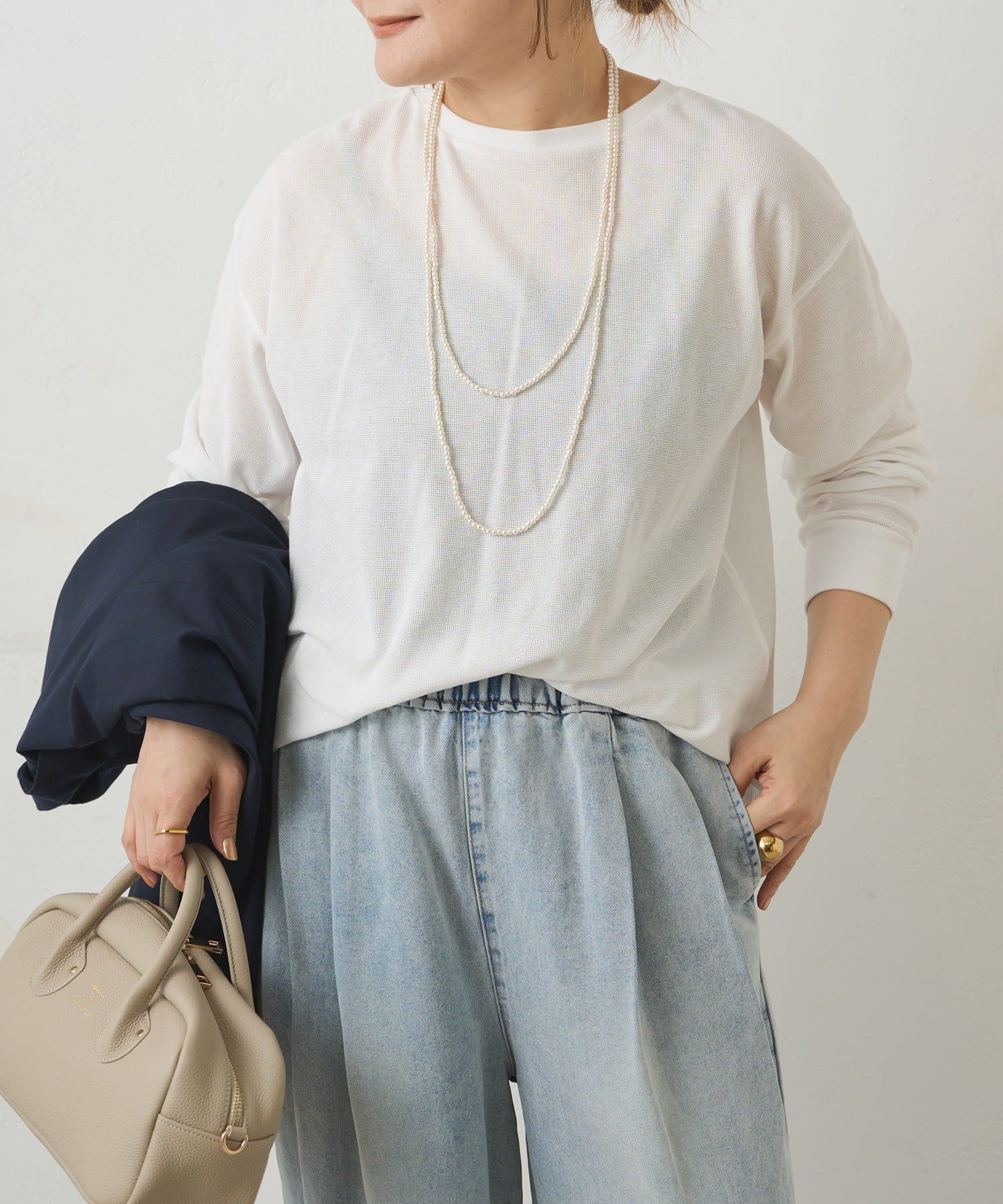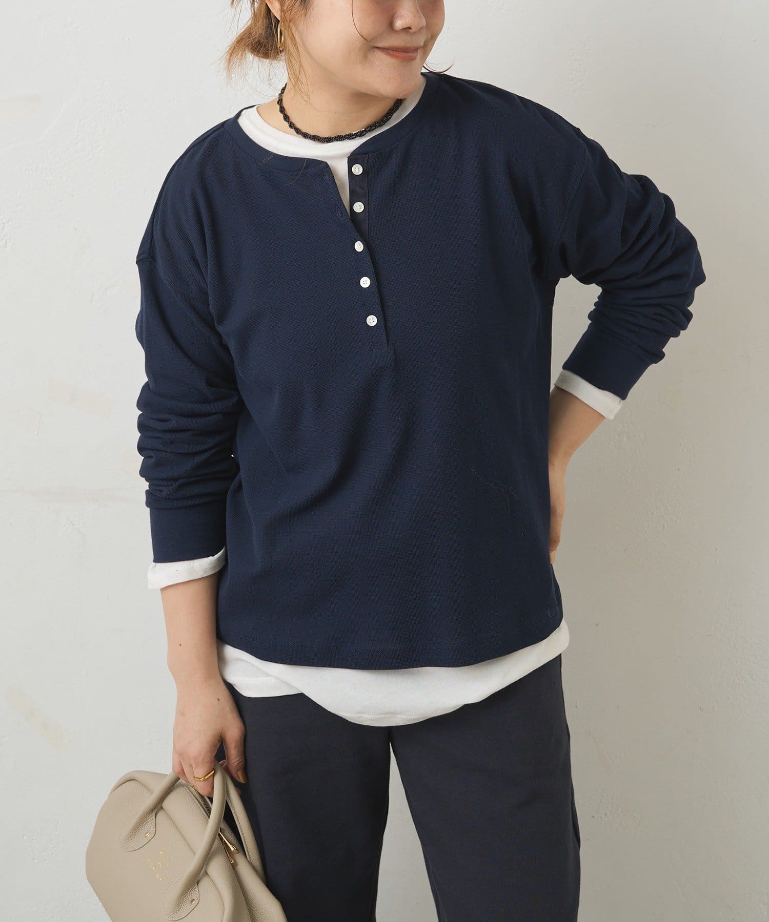 シンプルなのに表情があり、一枚でもレイヤードでも季節を問わずに活躍します。