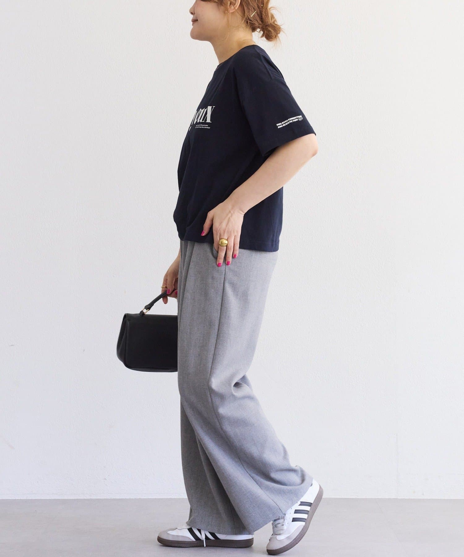 Tシャツのコンパクトなサイジングとのメリハリが付きスマートな雰囲気に。