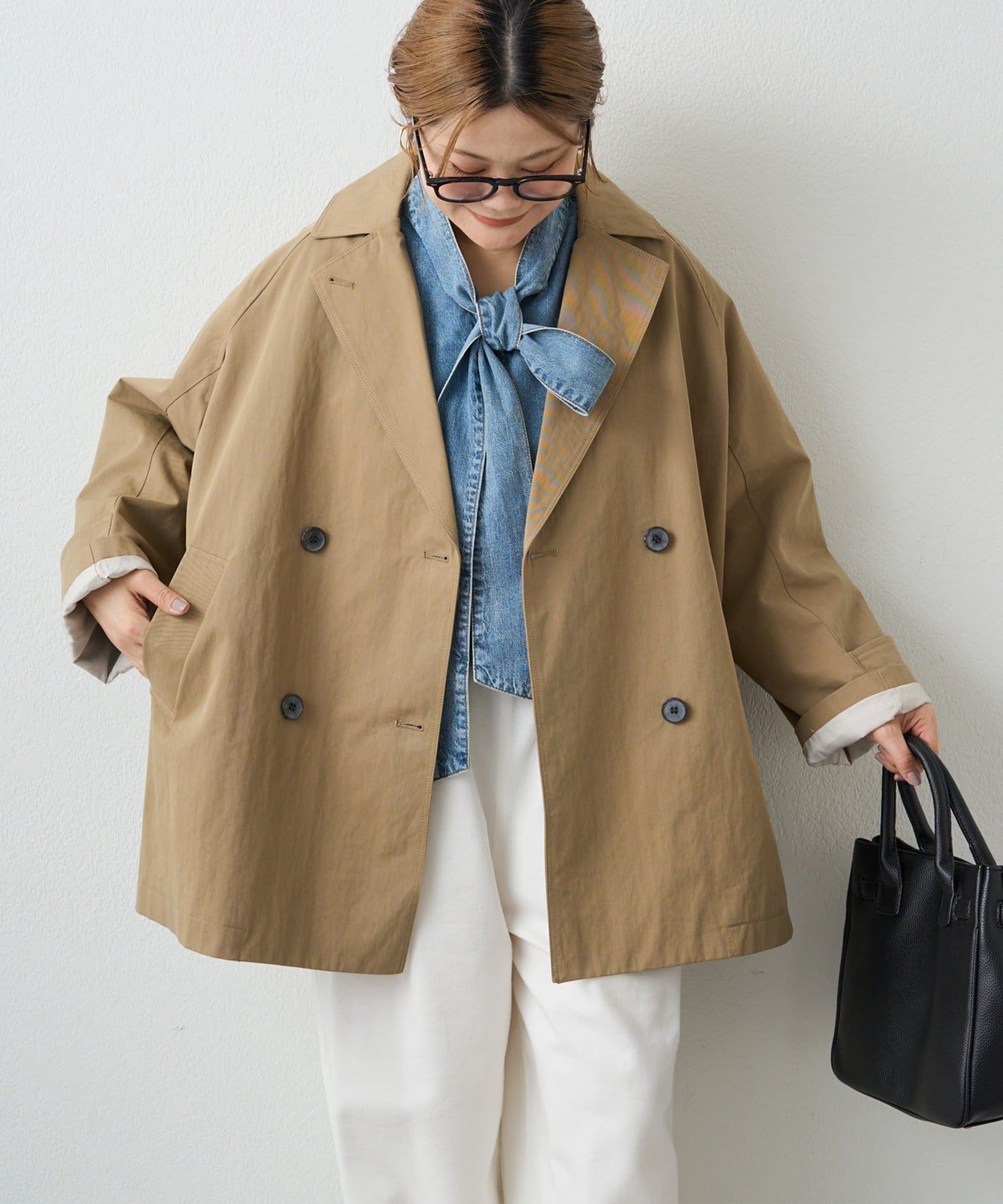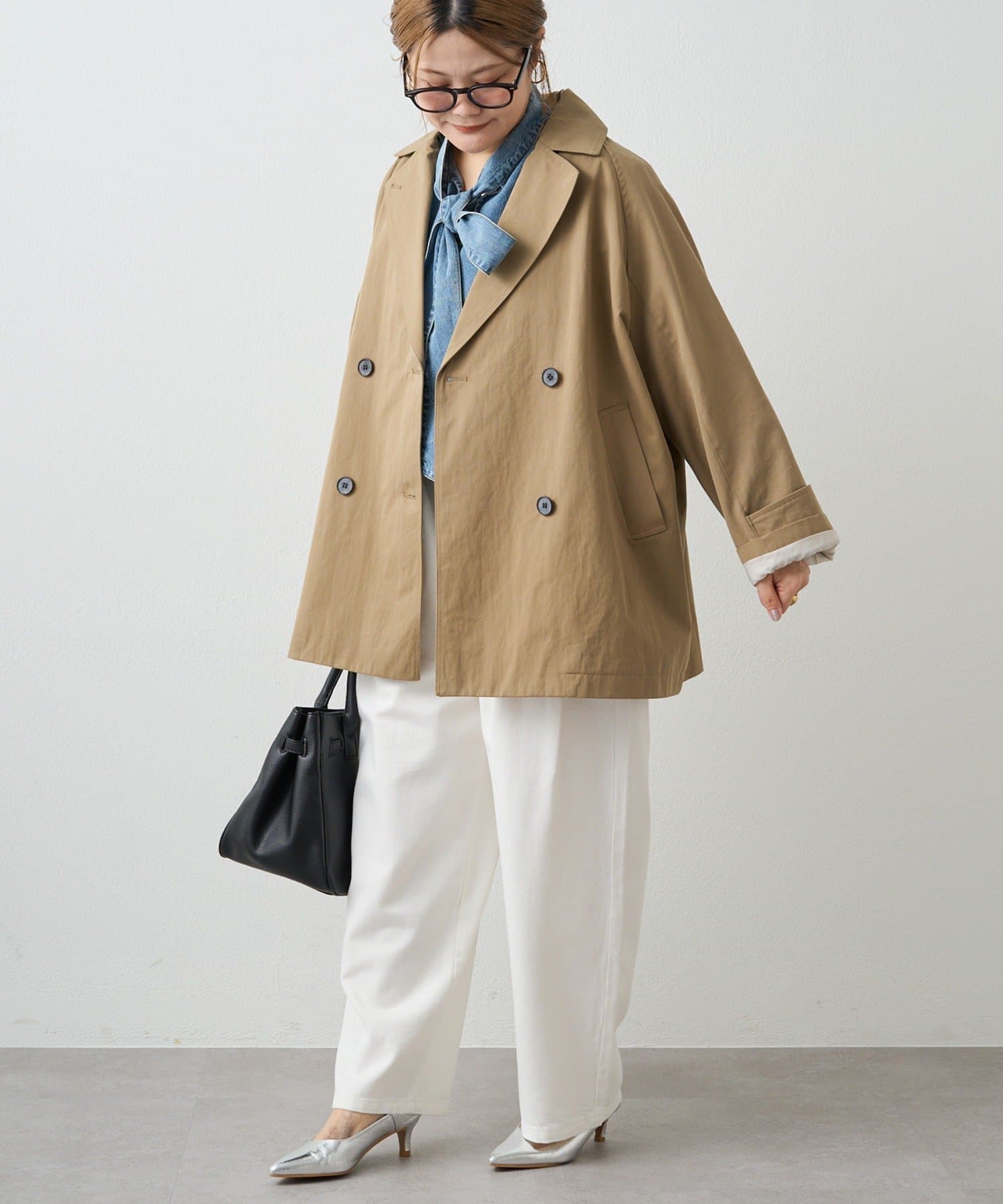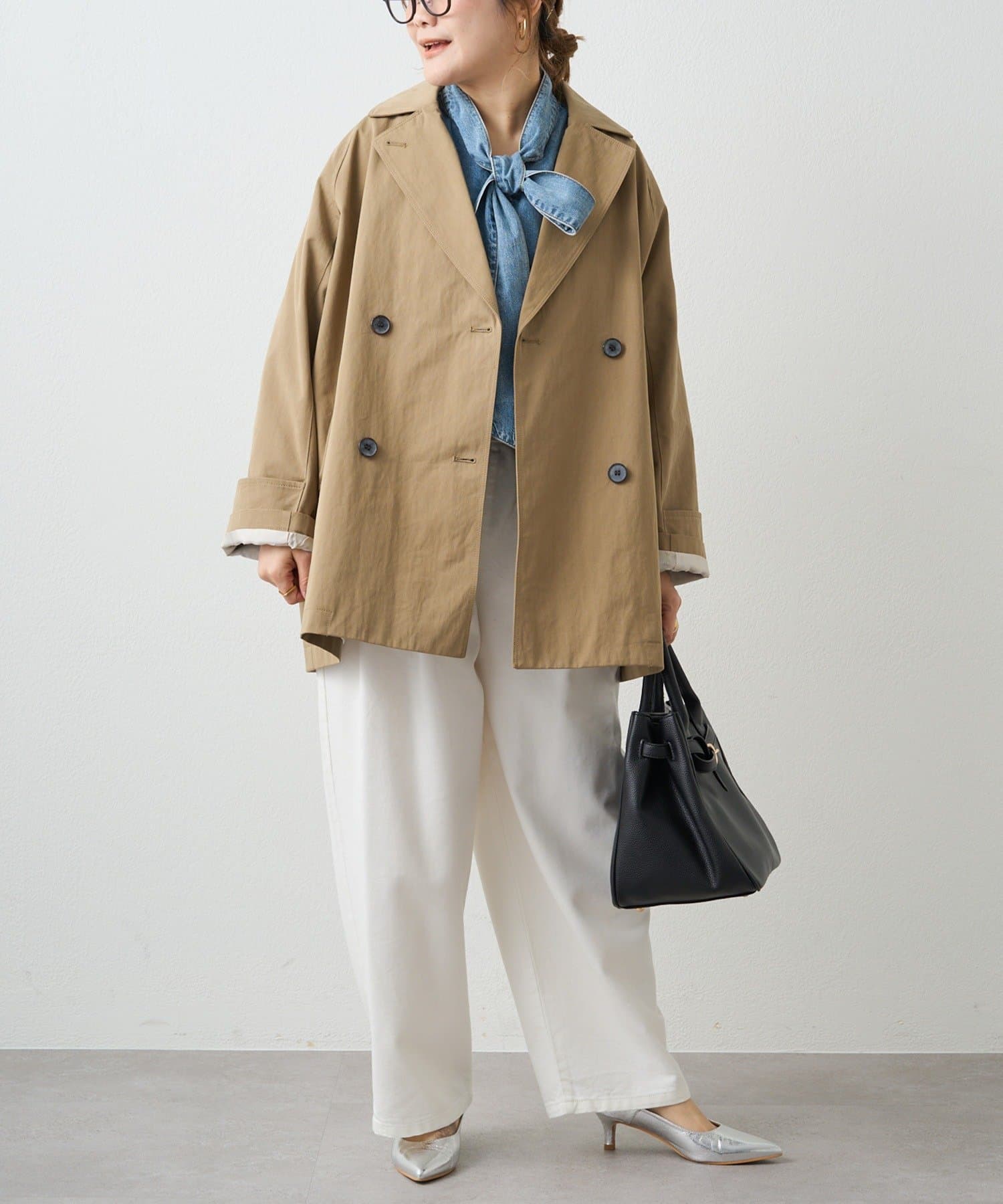 トレンチのディテールを取り入れて、きちんと感をプラスしました。