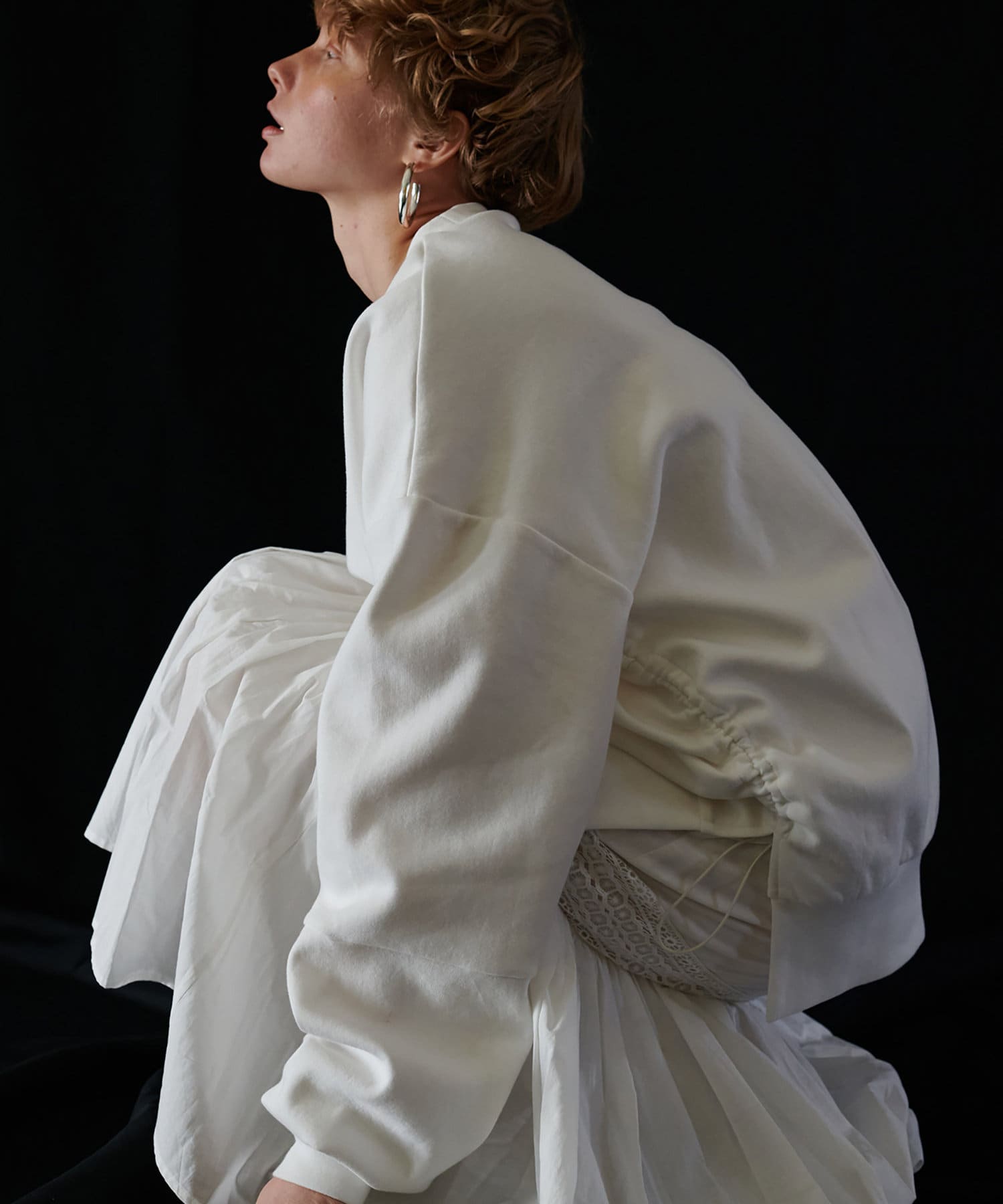 切り替え下にはたっぷりと用尺を使いギャザーを寄せて華やかな印象に。