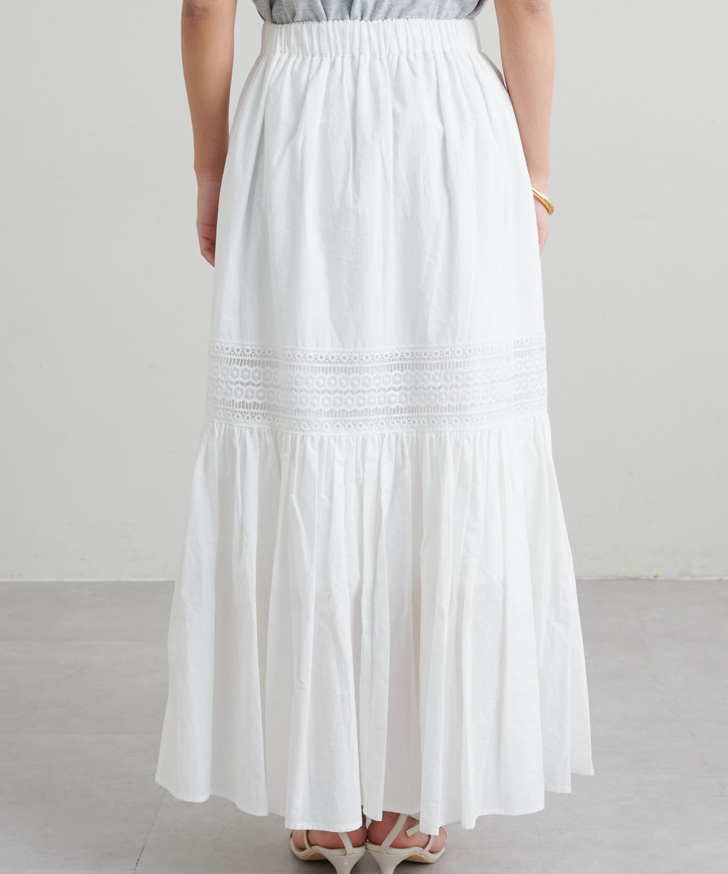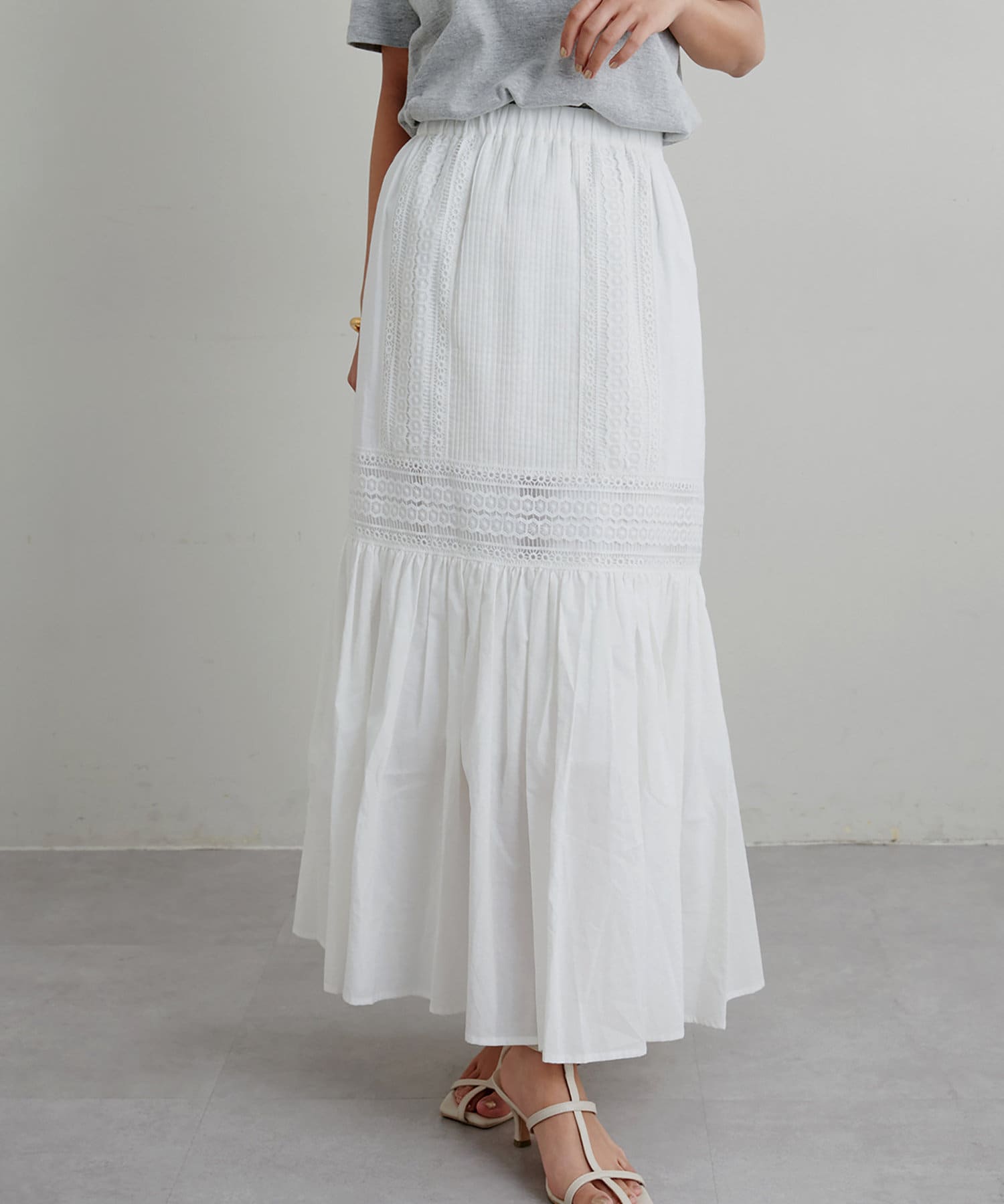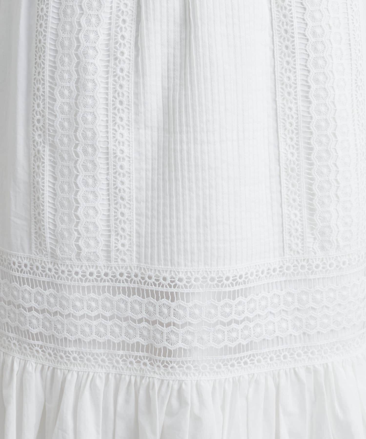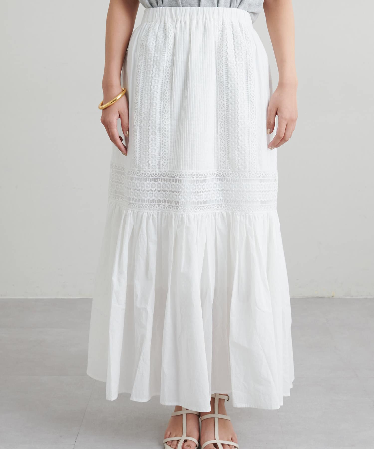 フロント部分に細かいピンタックをふんだんにあしらった贅沢なレーススカート。