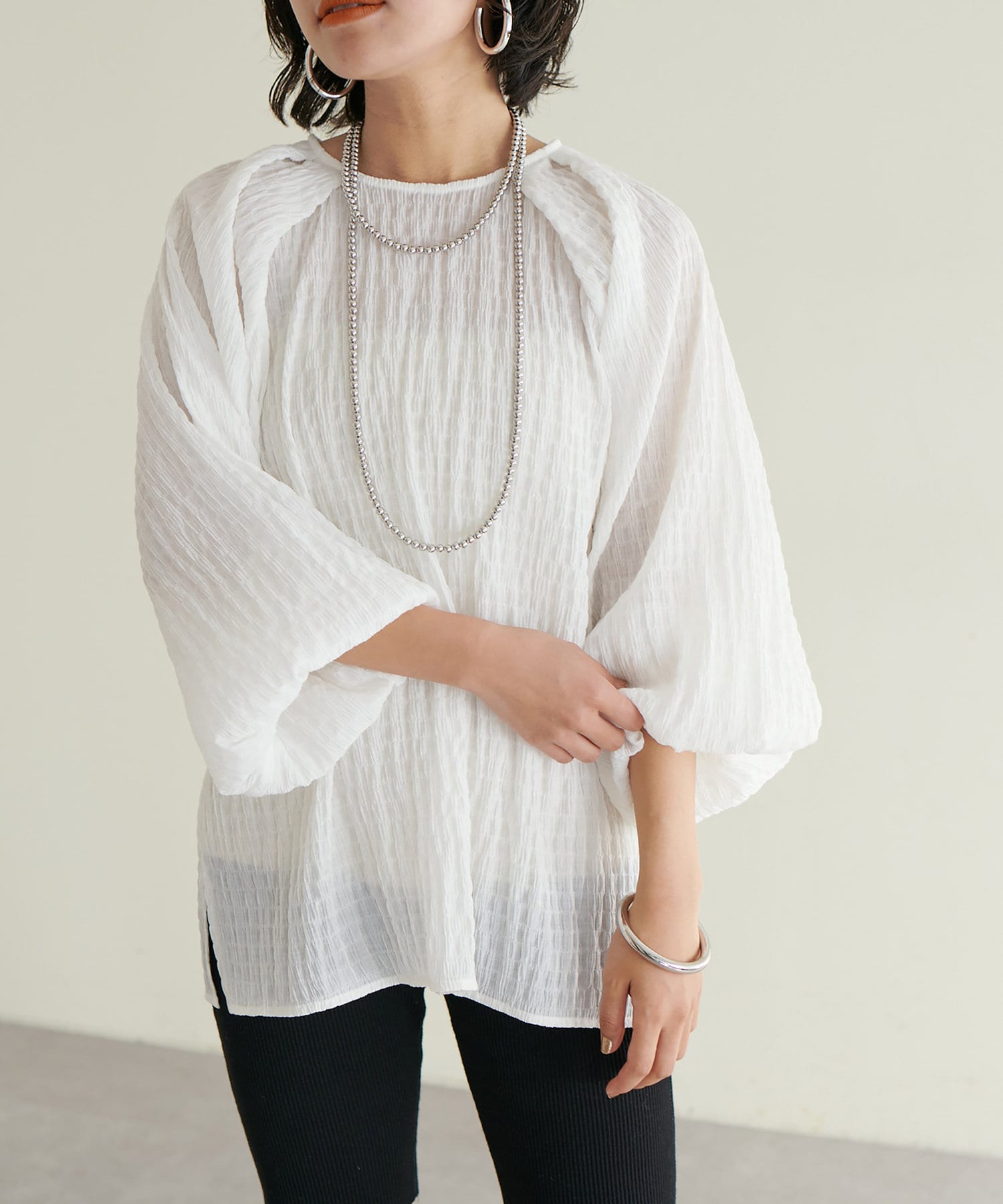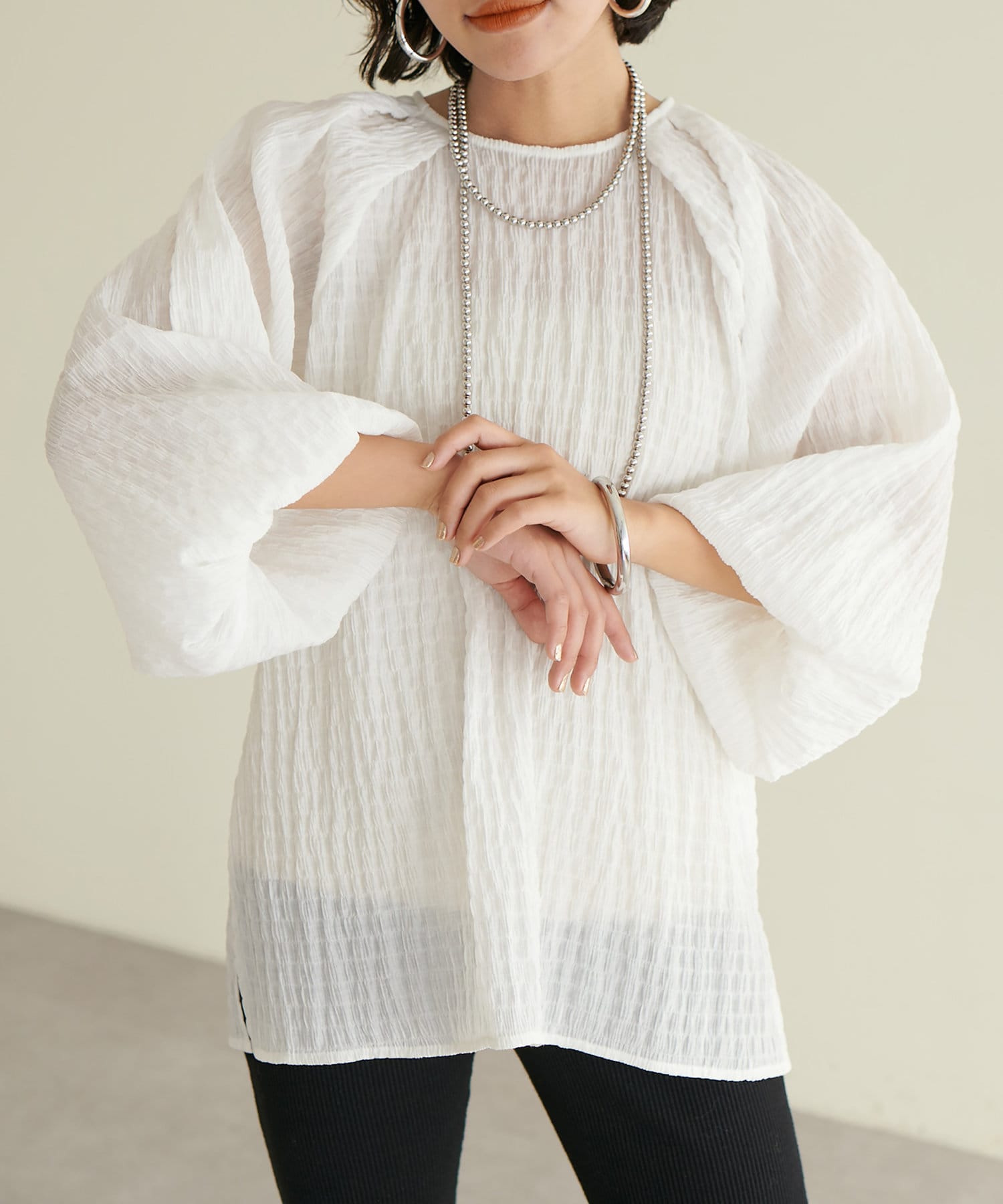 ポコポコボリュームスリーブブラウス