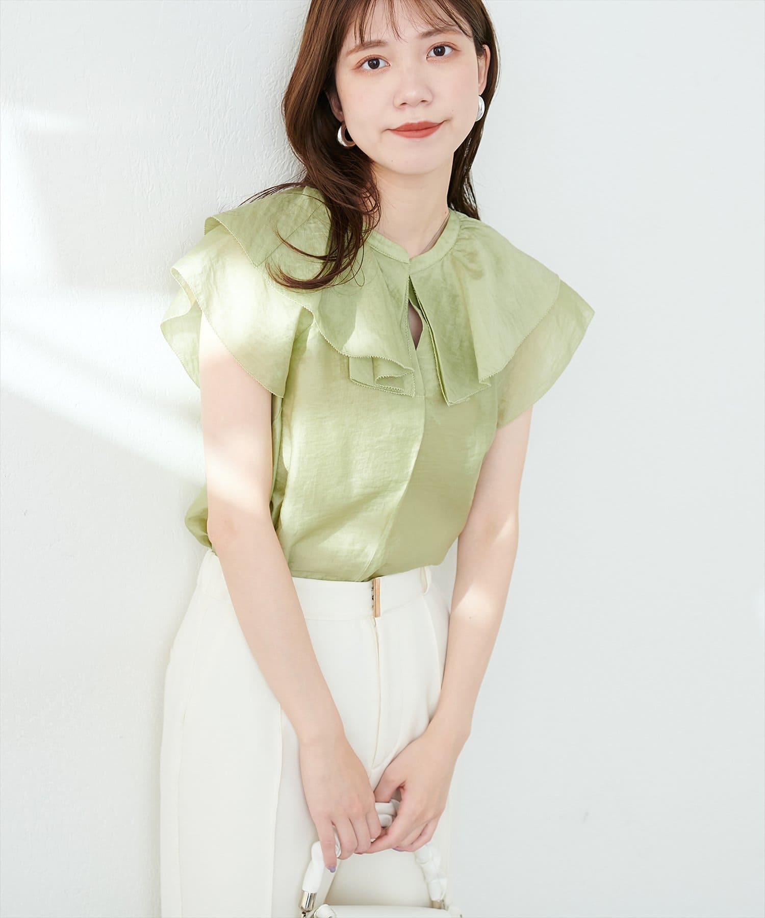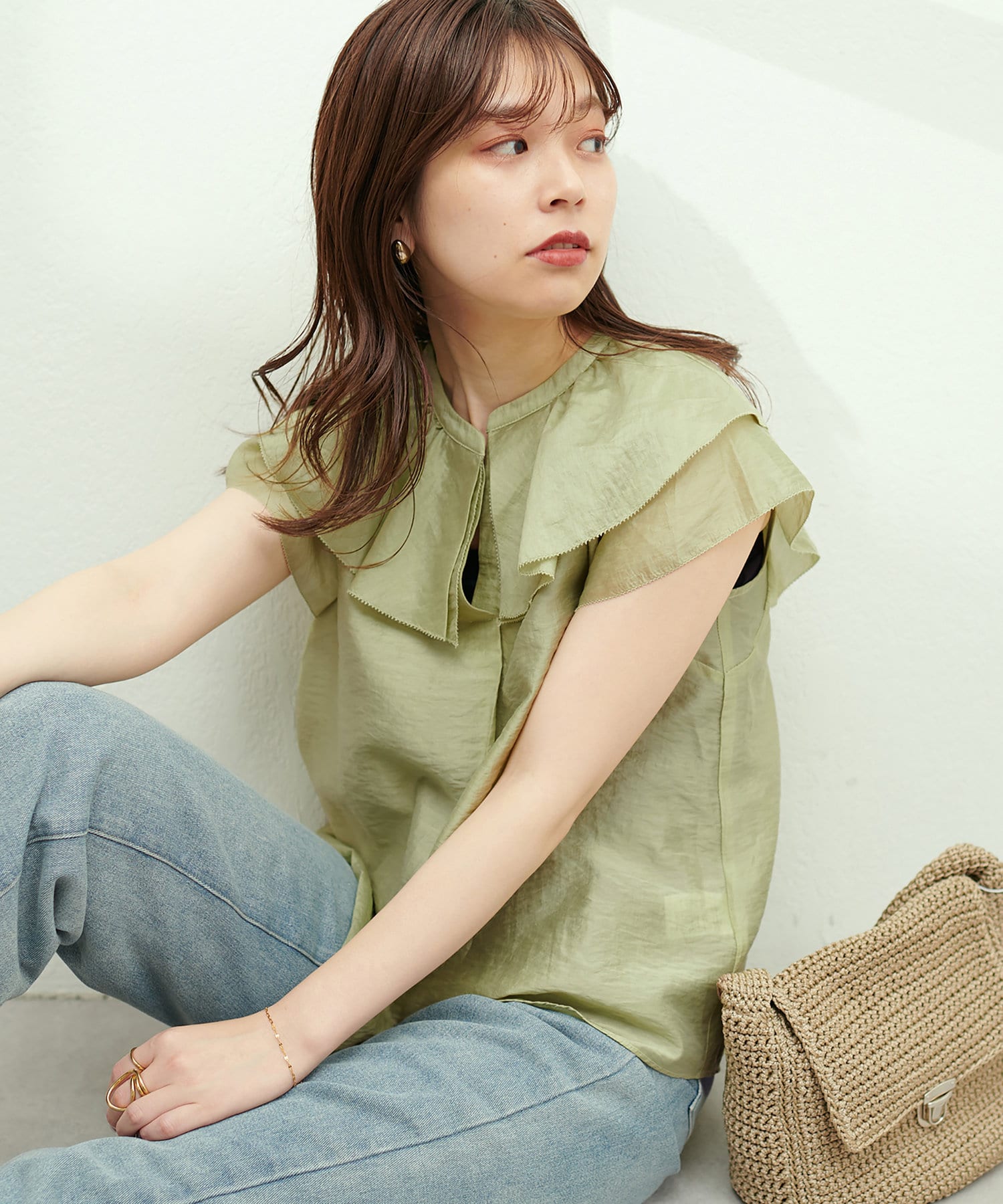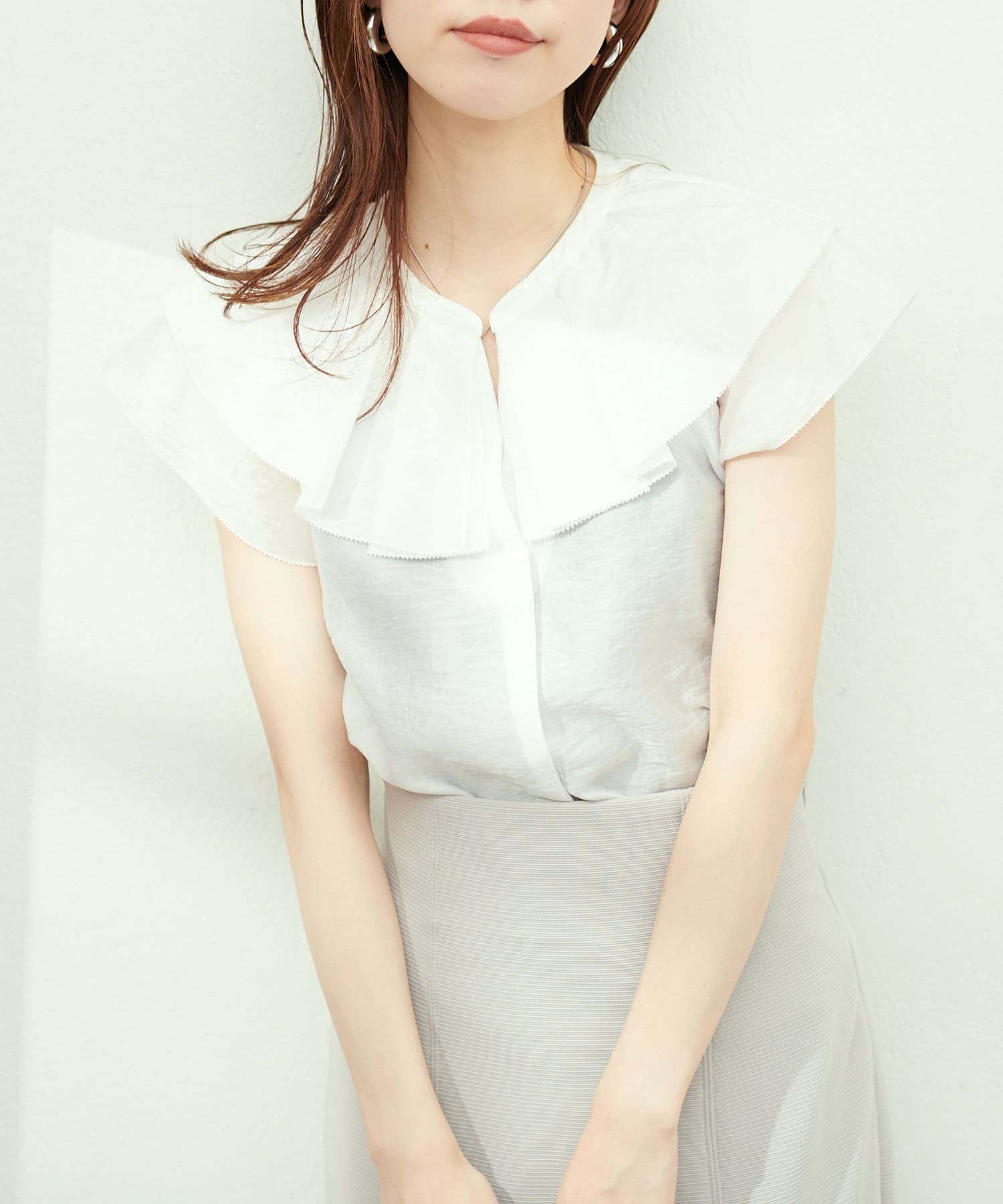 上品な質感とほんのりシアー感が旬なムードを演出してくれる、大人ガーリーな注目のブラウスが登場。