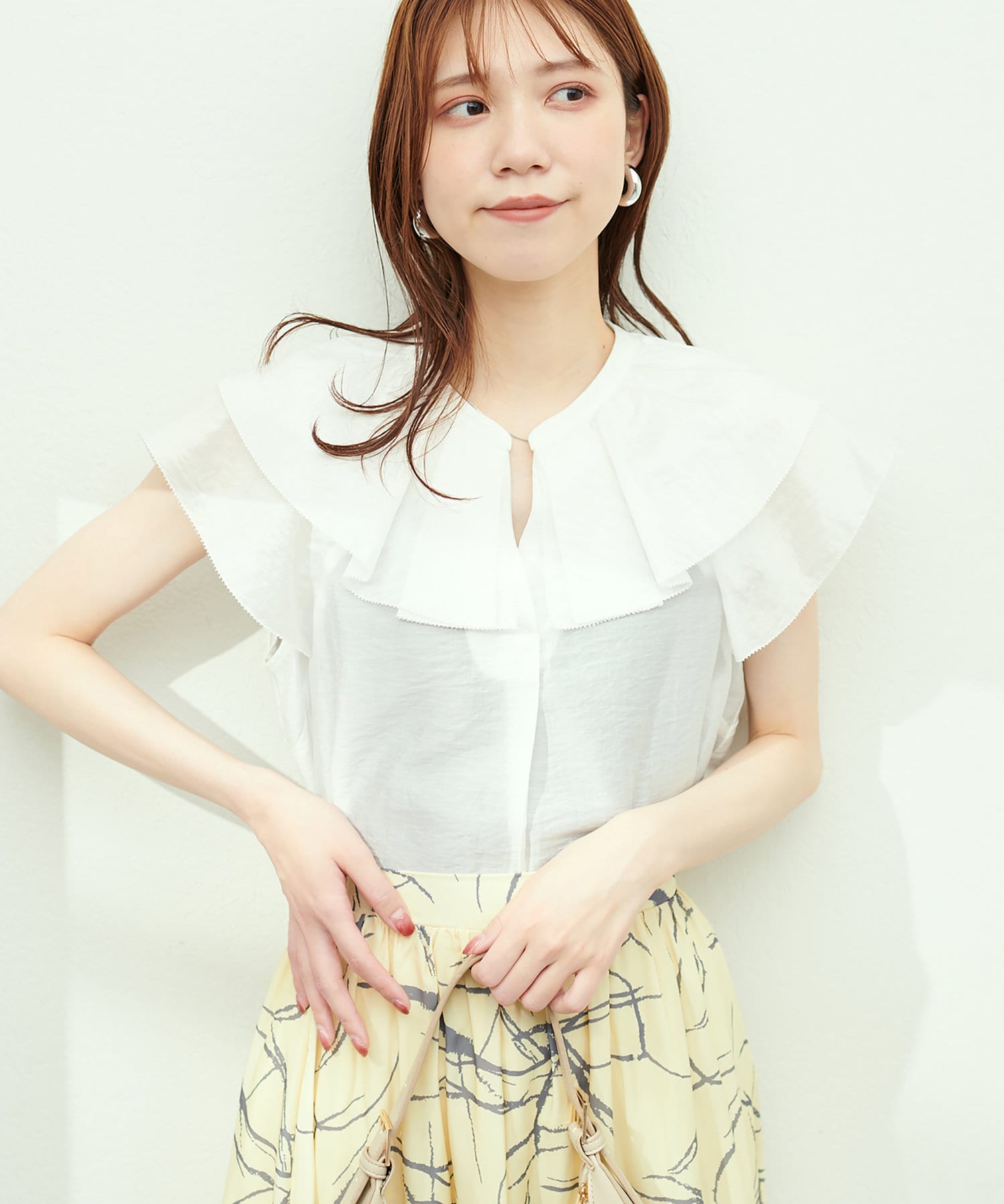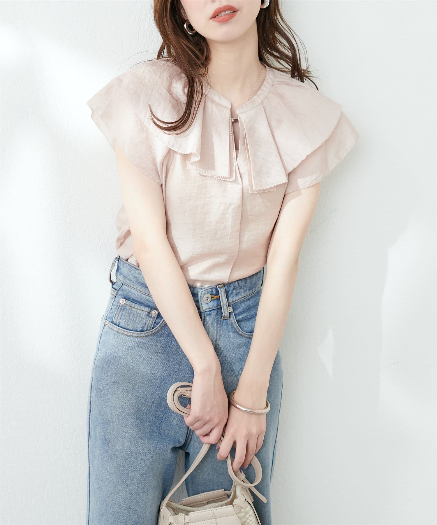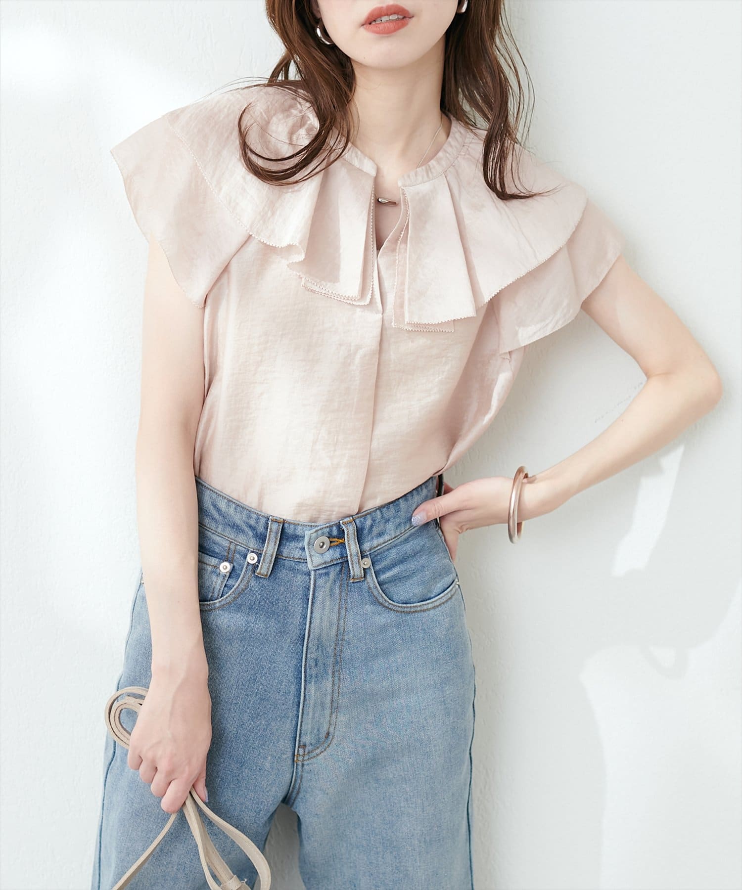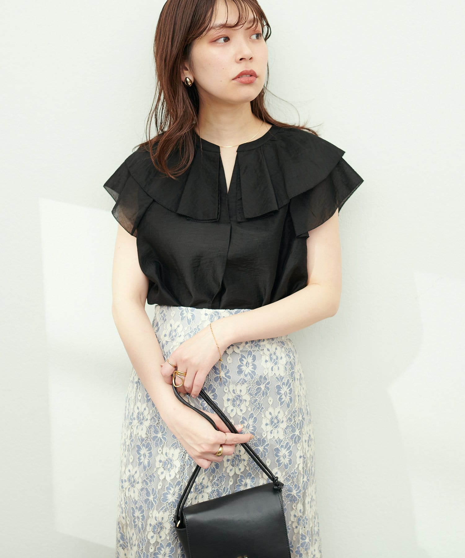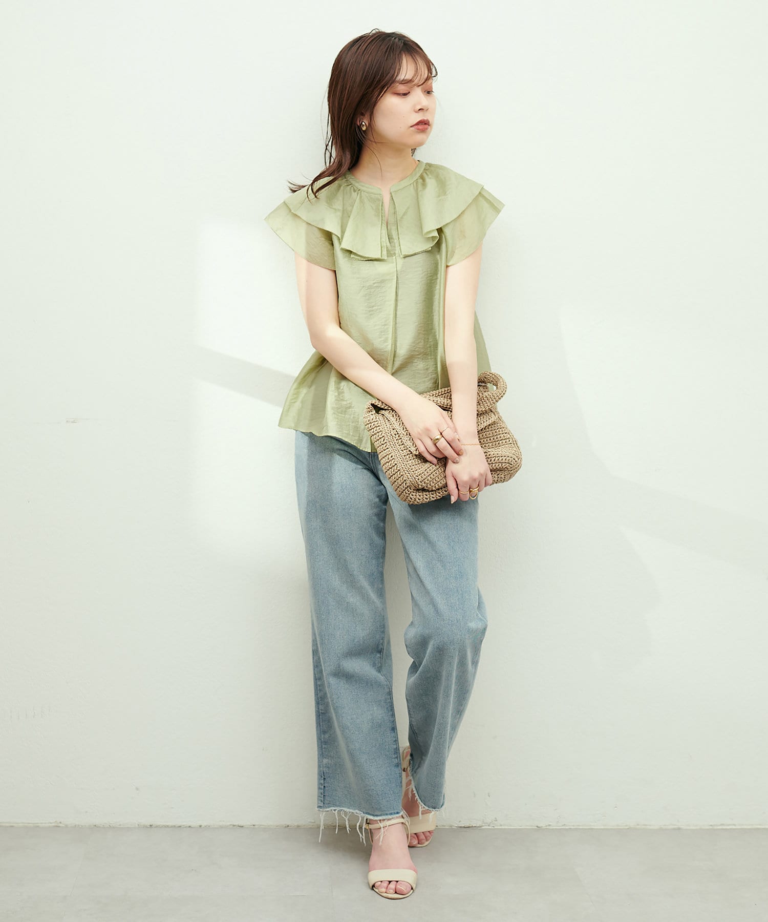甘すぎない柔らかなフリル使いが、コーデにさりげないポイントをプラスしてくれます。