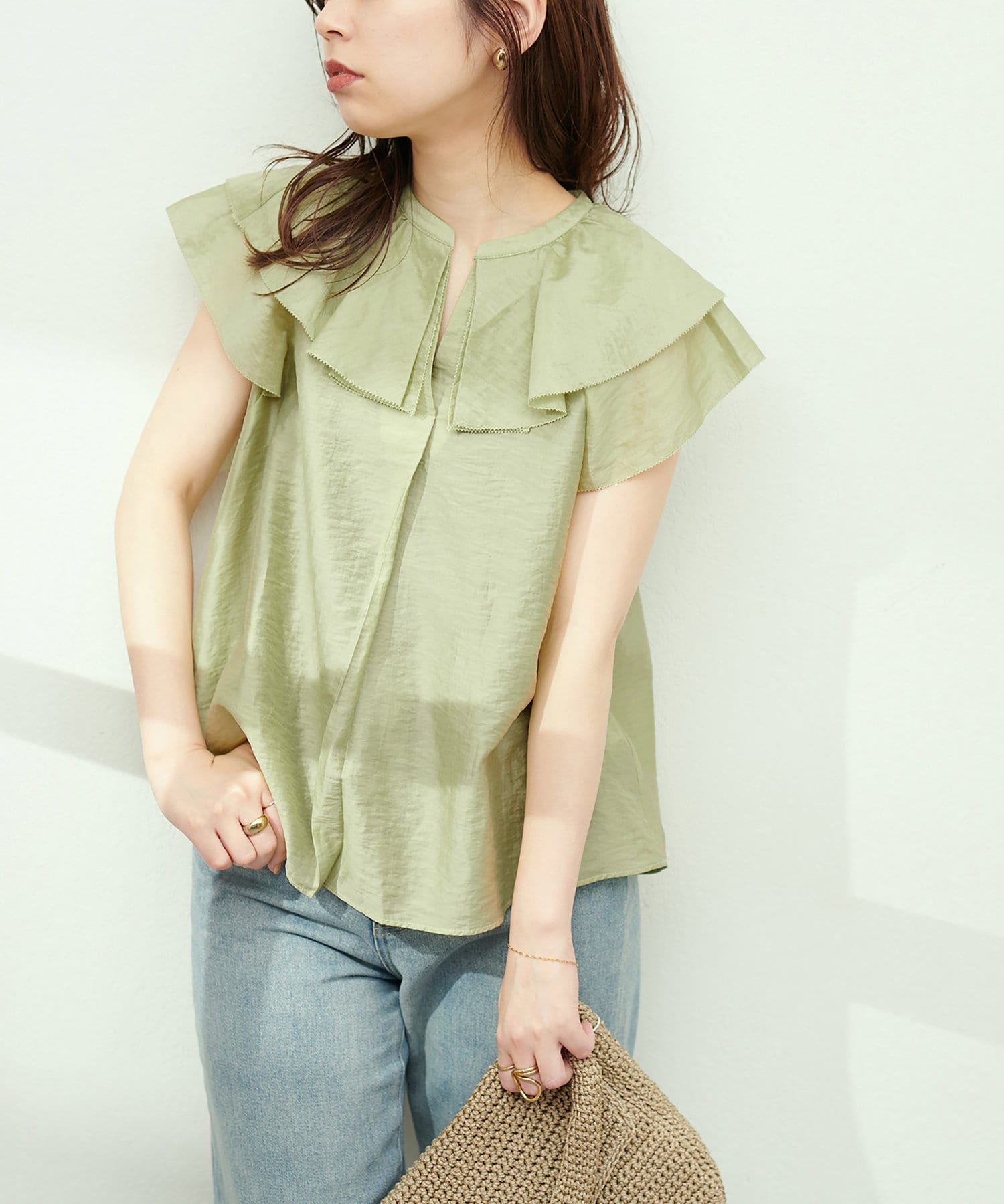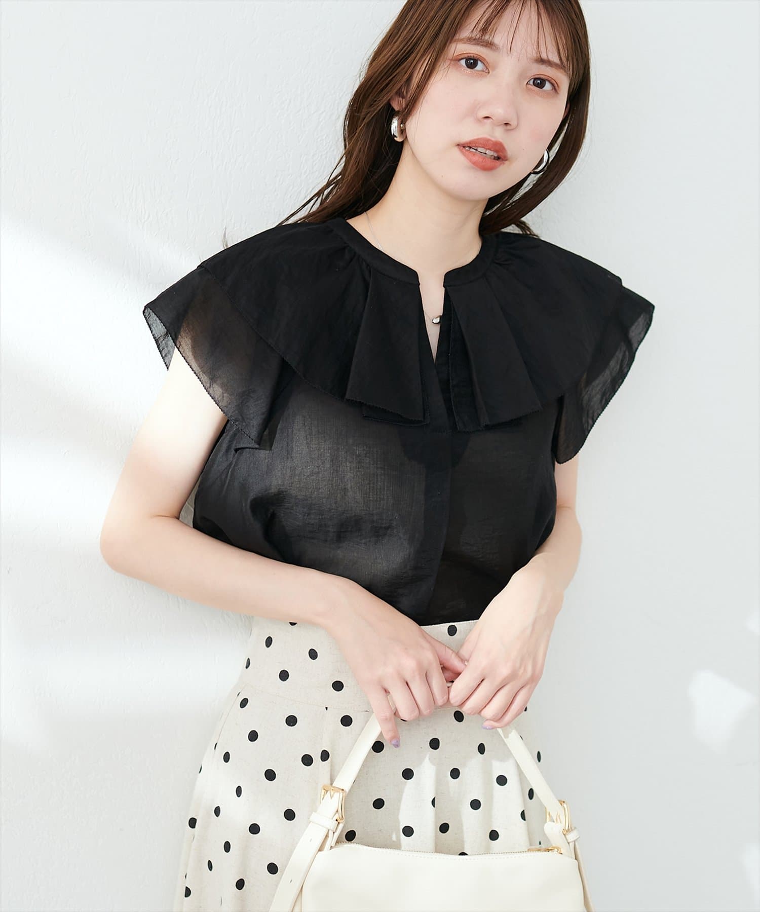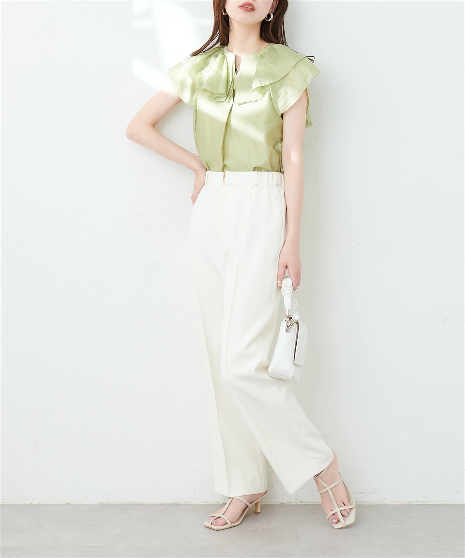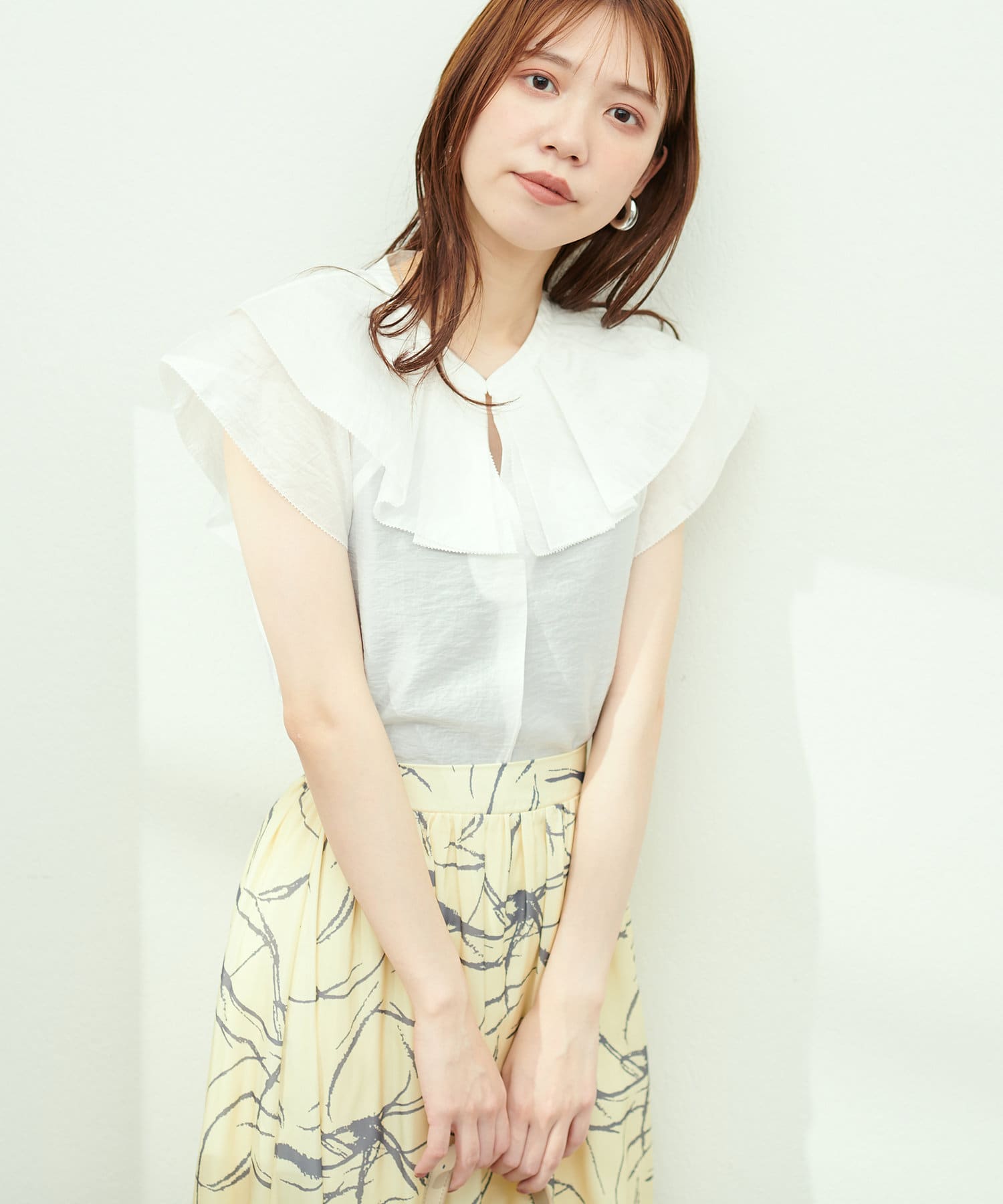 甘すぎない柔らかなフリル使いが、コーデにさりげないポイントをプラスしてくれます。