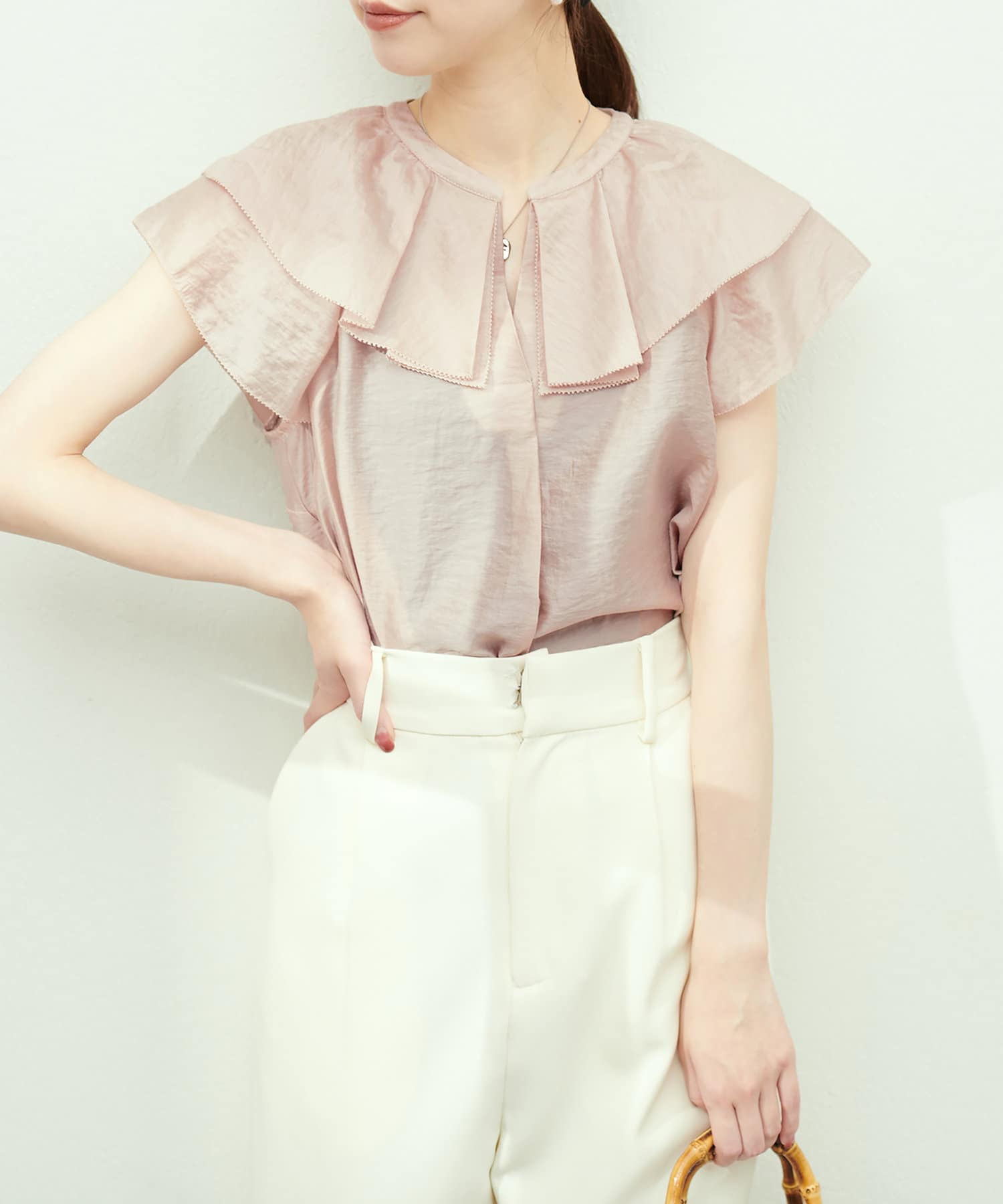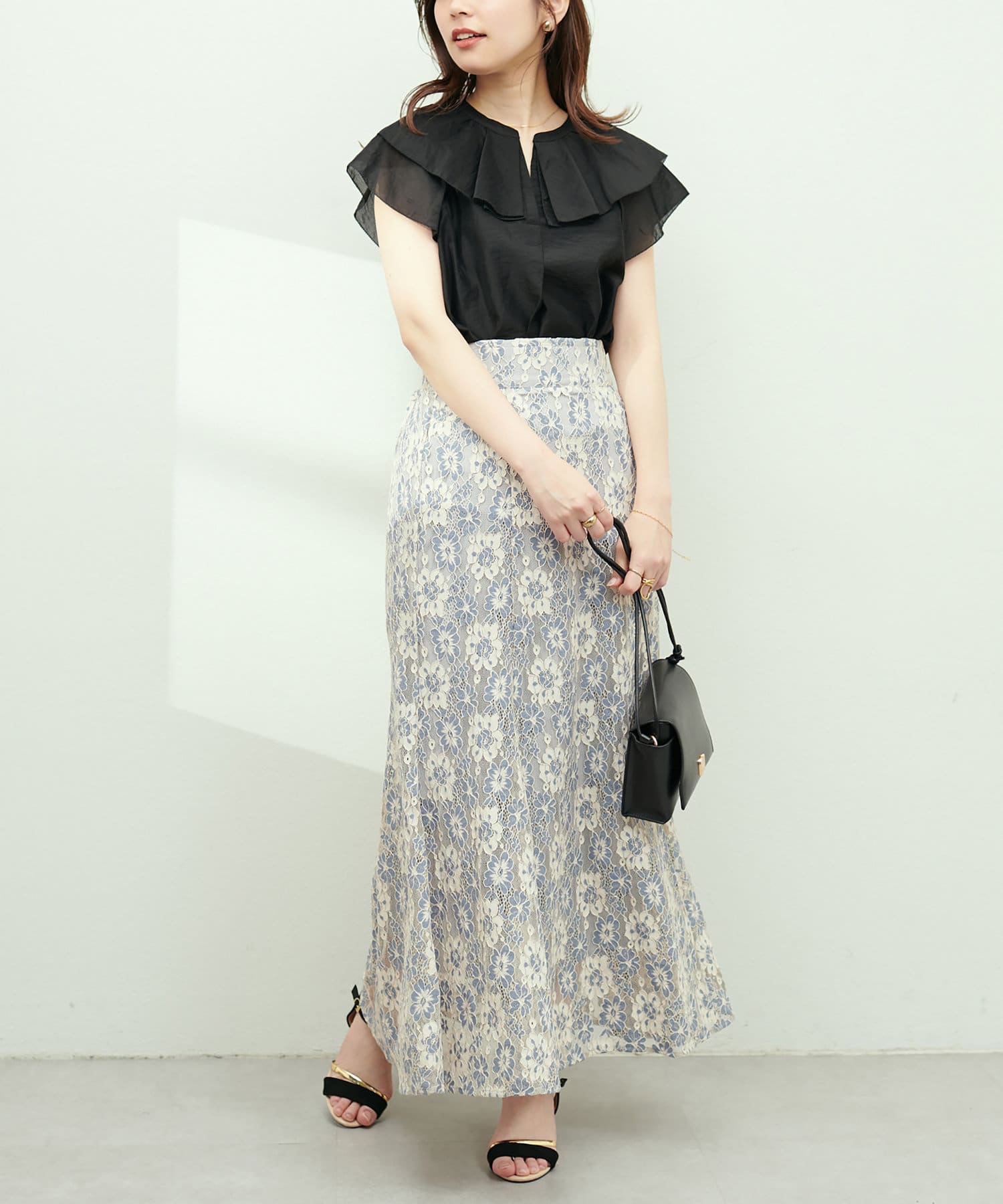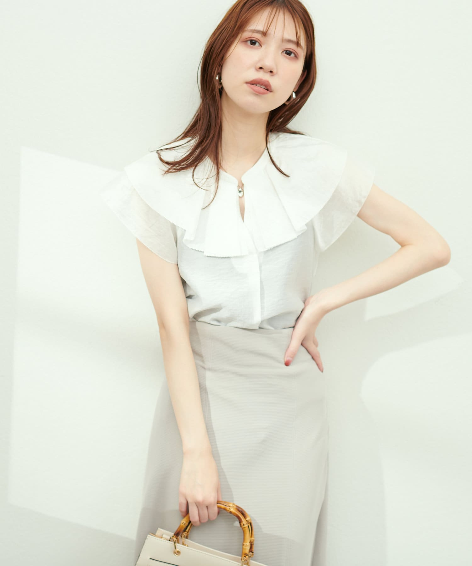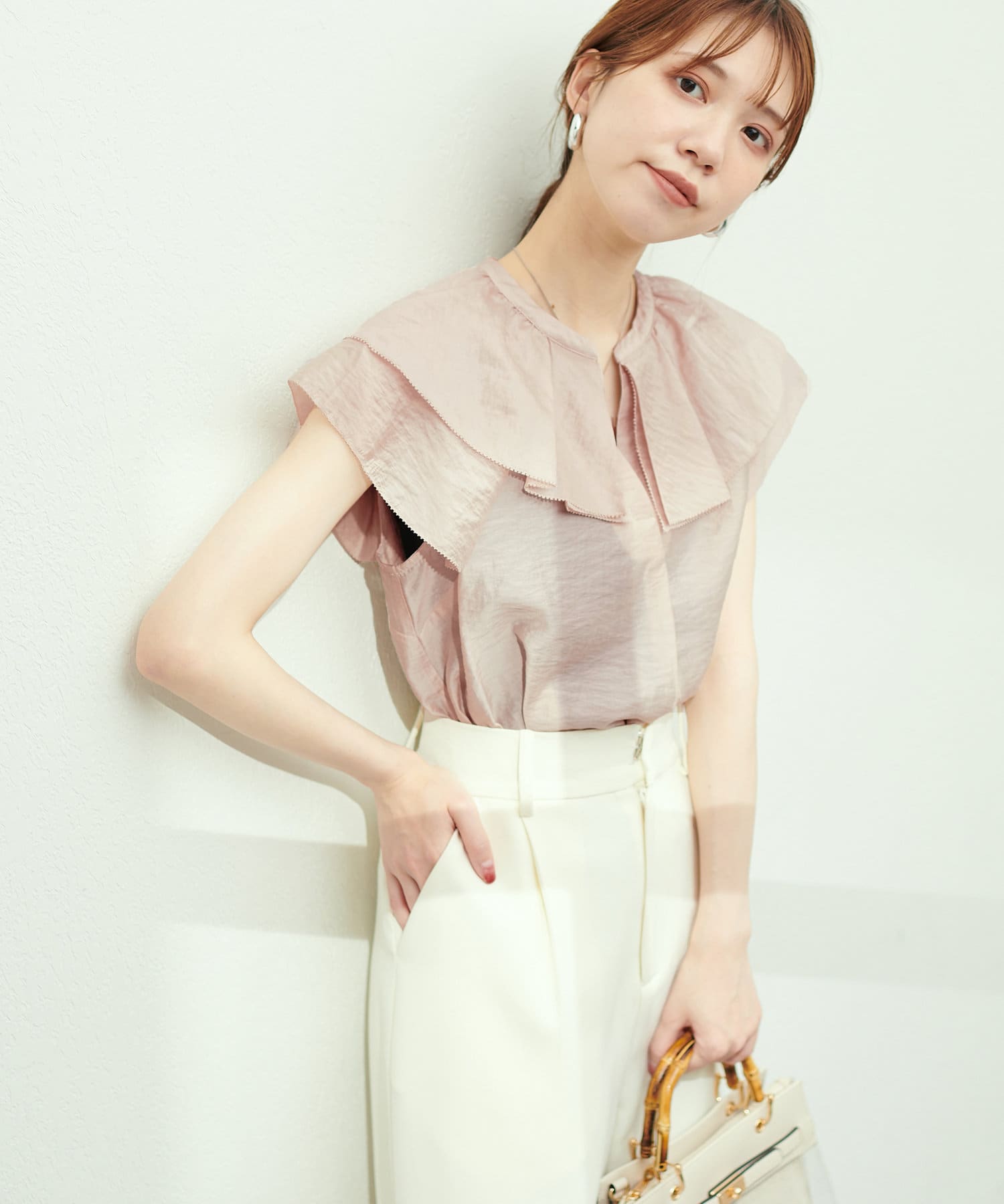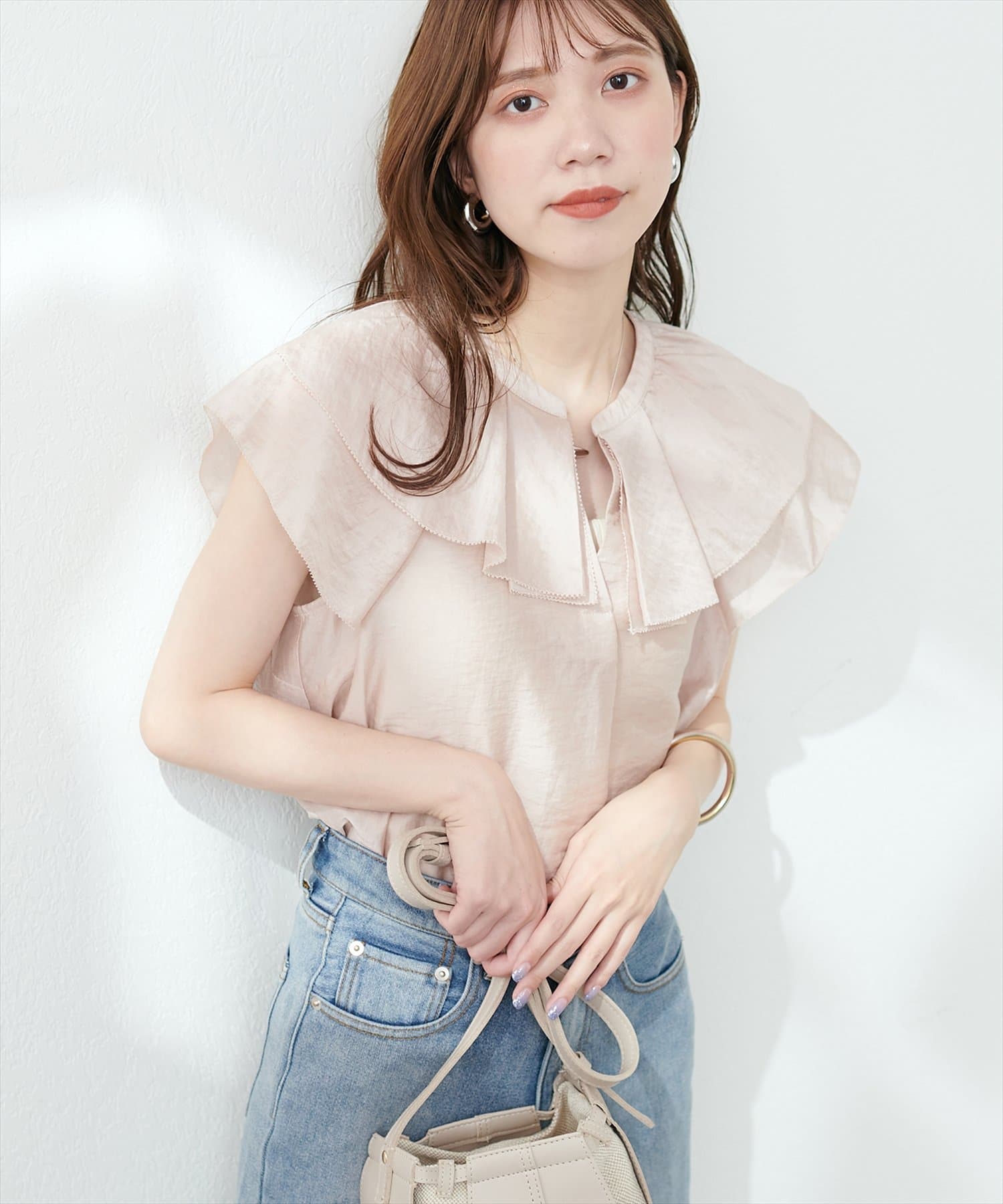 甘すぎない柔らかなフリル使いが、コーデにさりげないポイントをプラスしてくれます。
