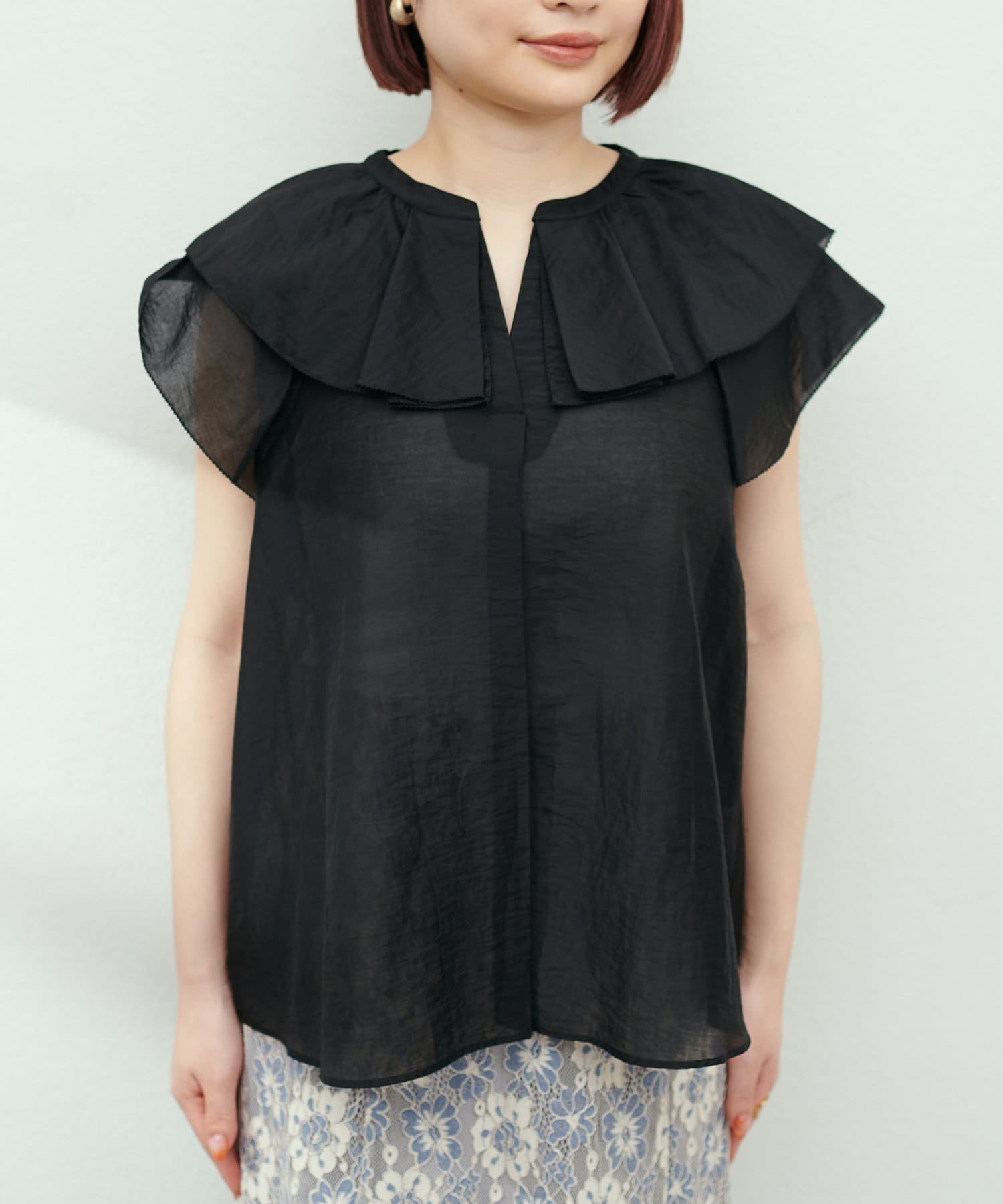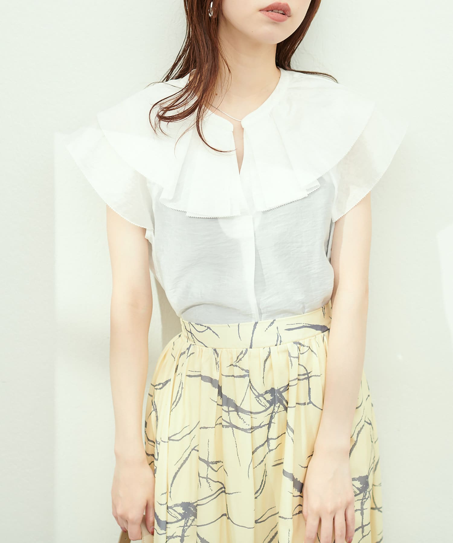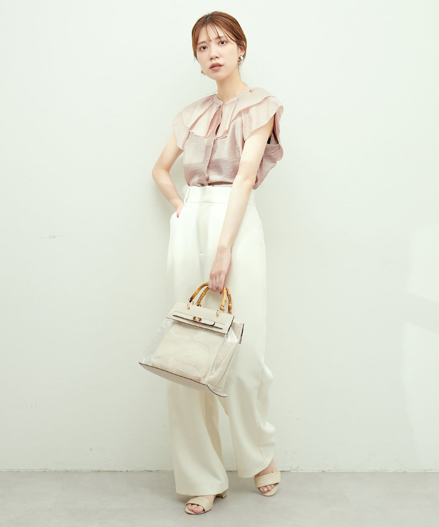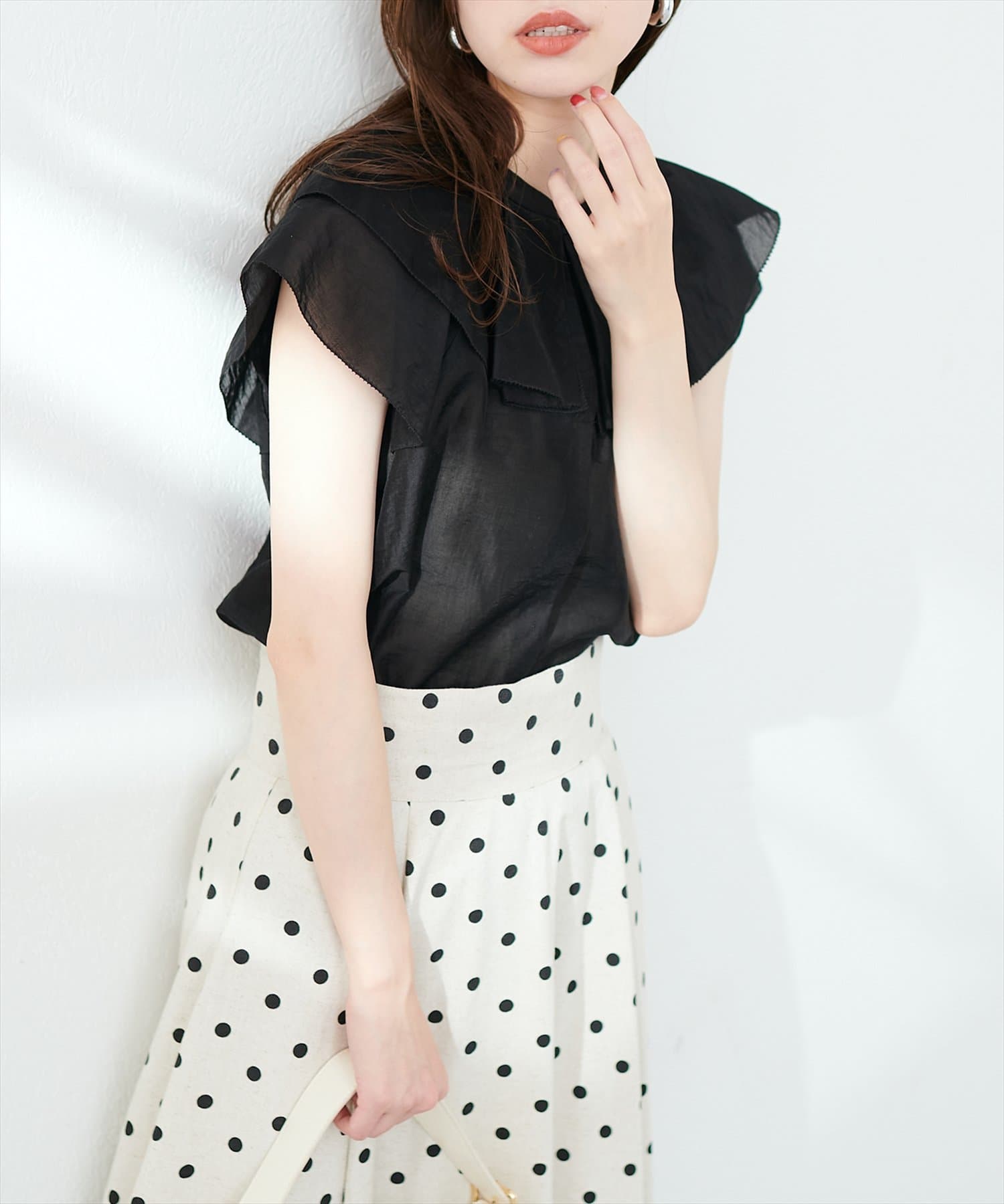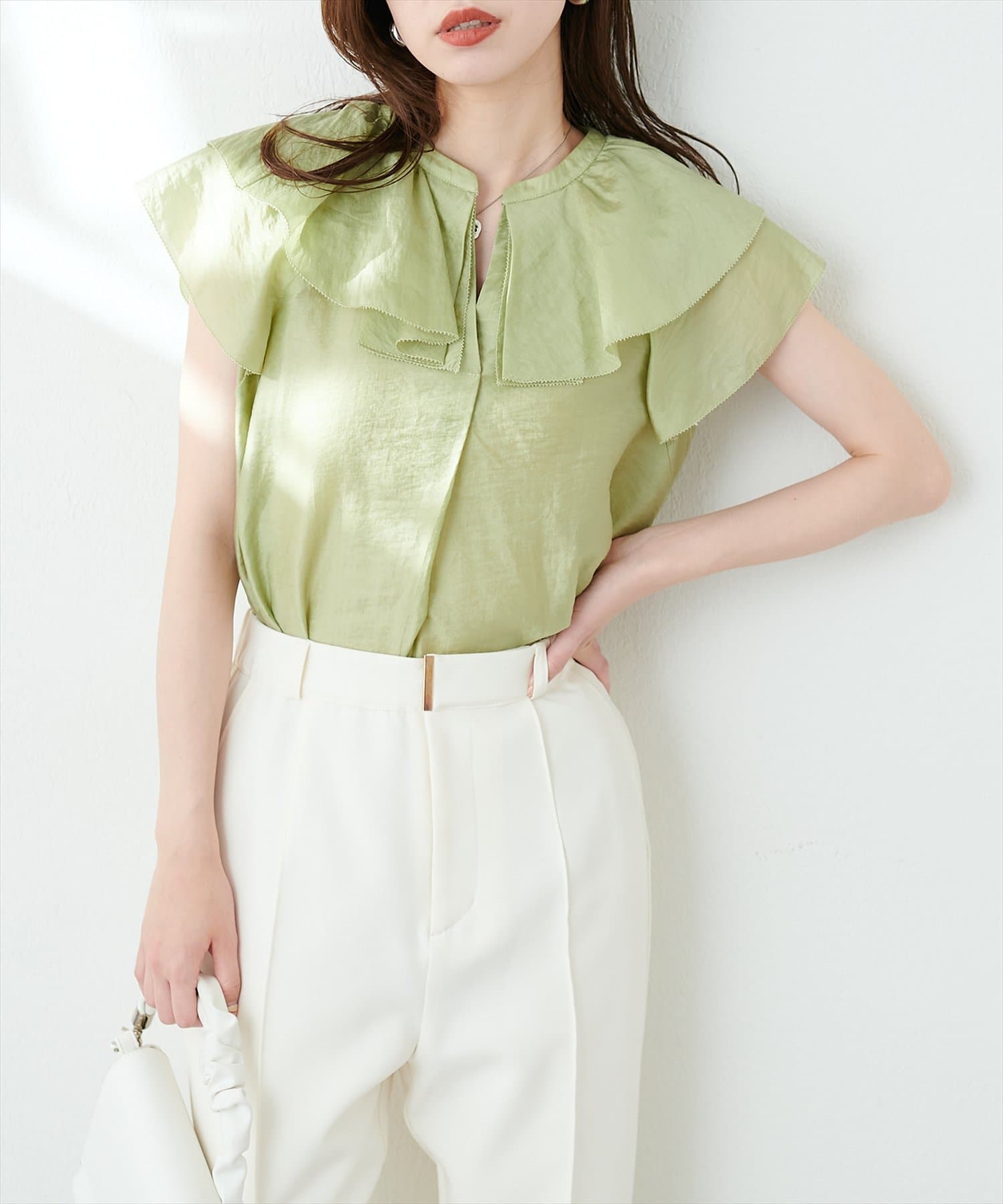 甘すぎない柔らかなフリル使いが、コーデにさりげないポイントをプラスしてくれます。