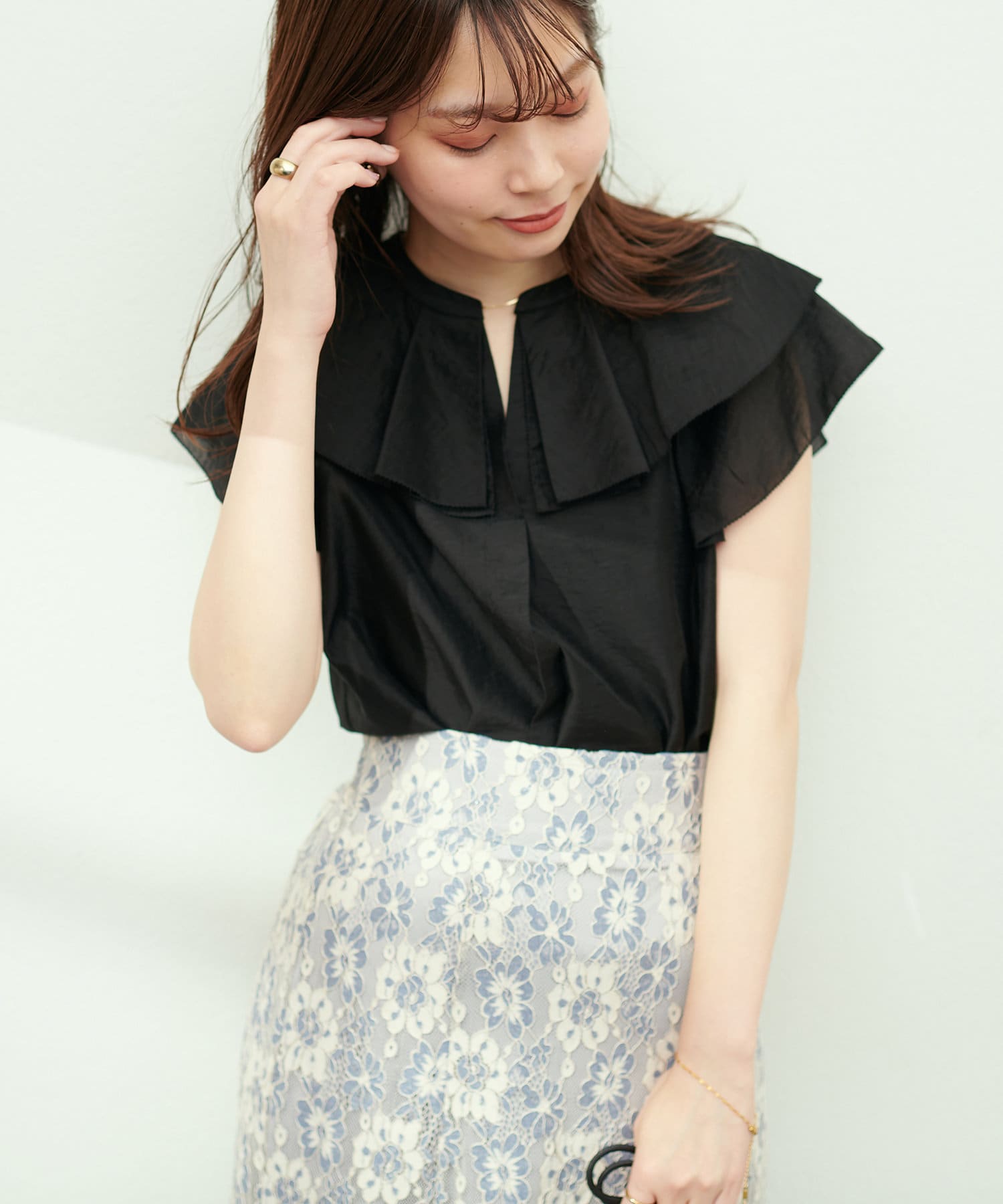 〈WEB限定アイテム〉上品な質感の生地に施した柔らかなフリル使いが魅力◎