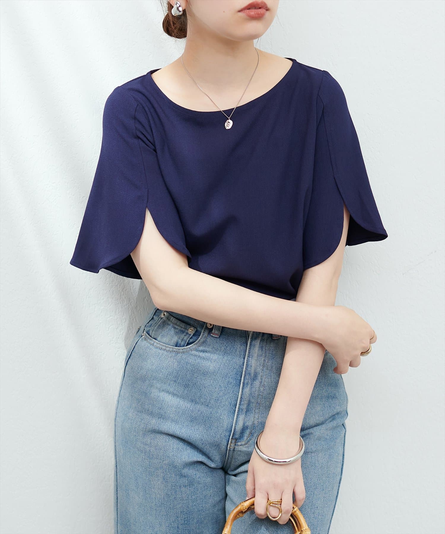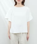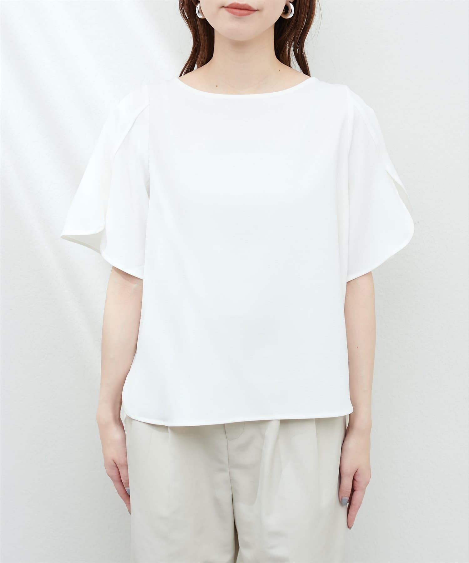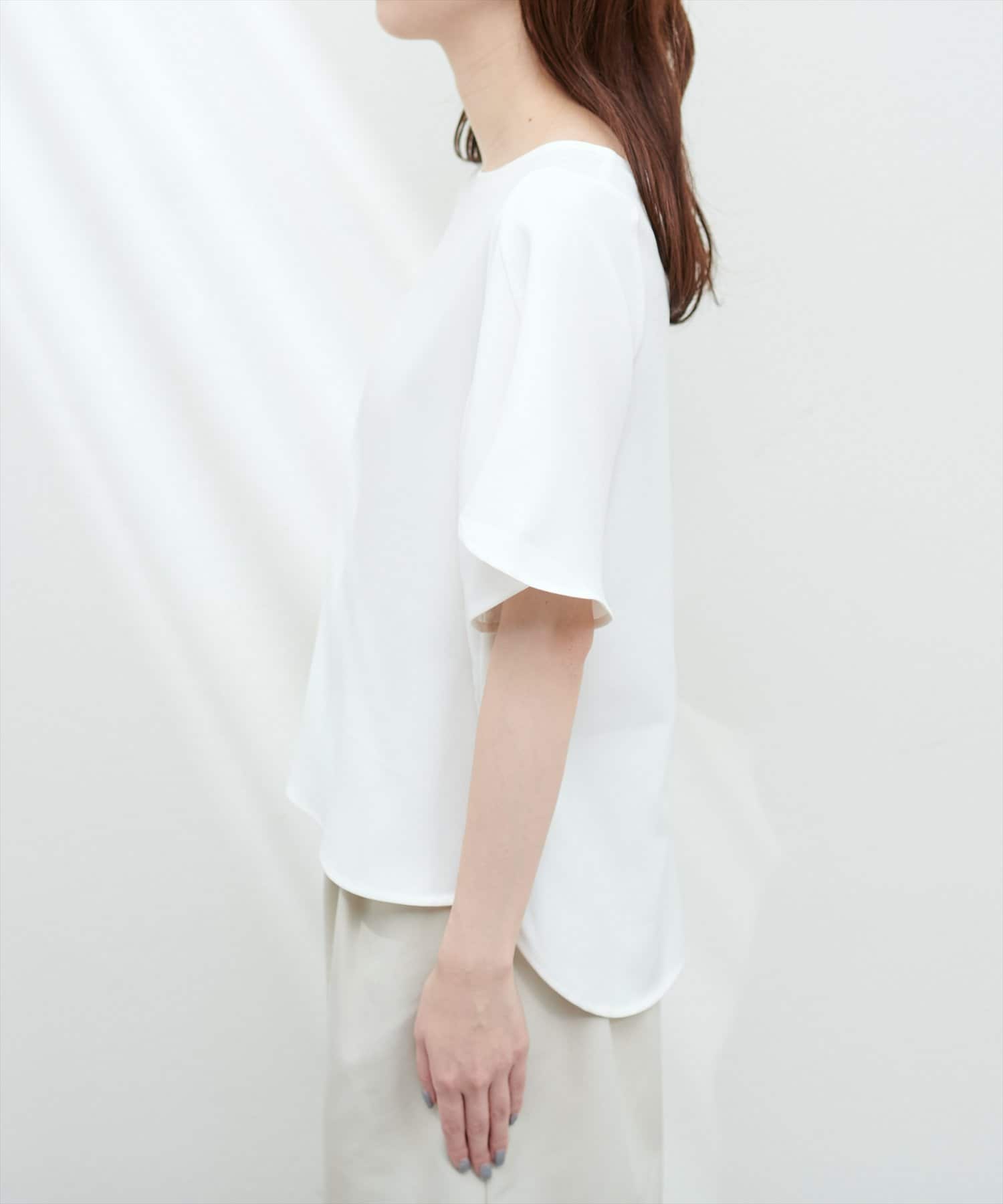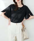 袖にハチワレのようなスリットを施した遊び心のある半袖ブラウス。