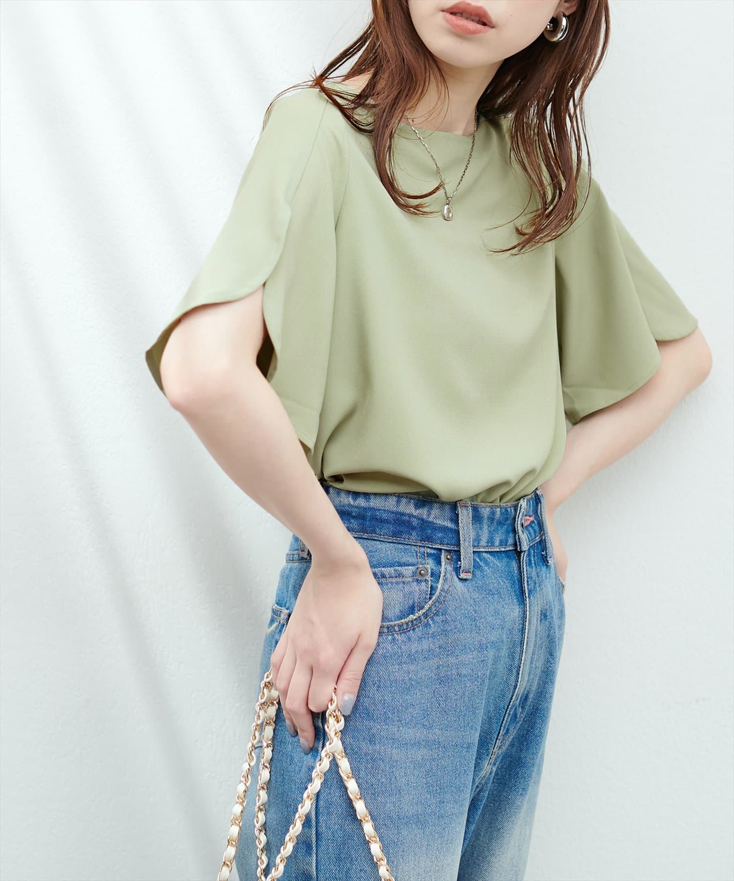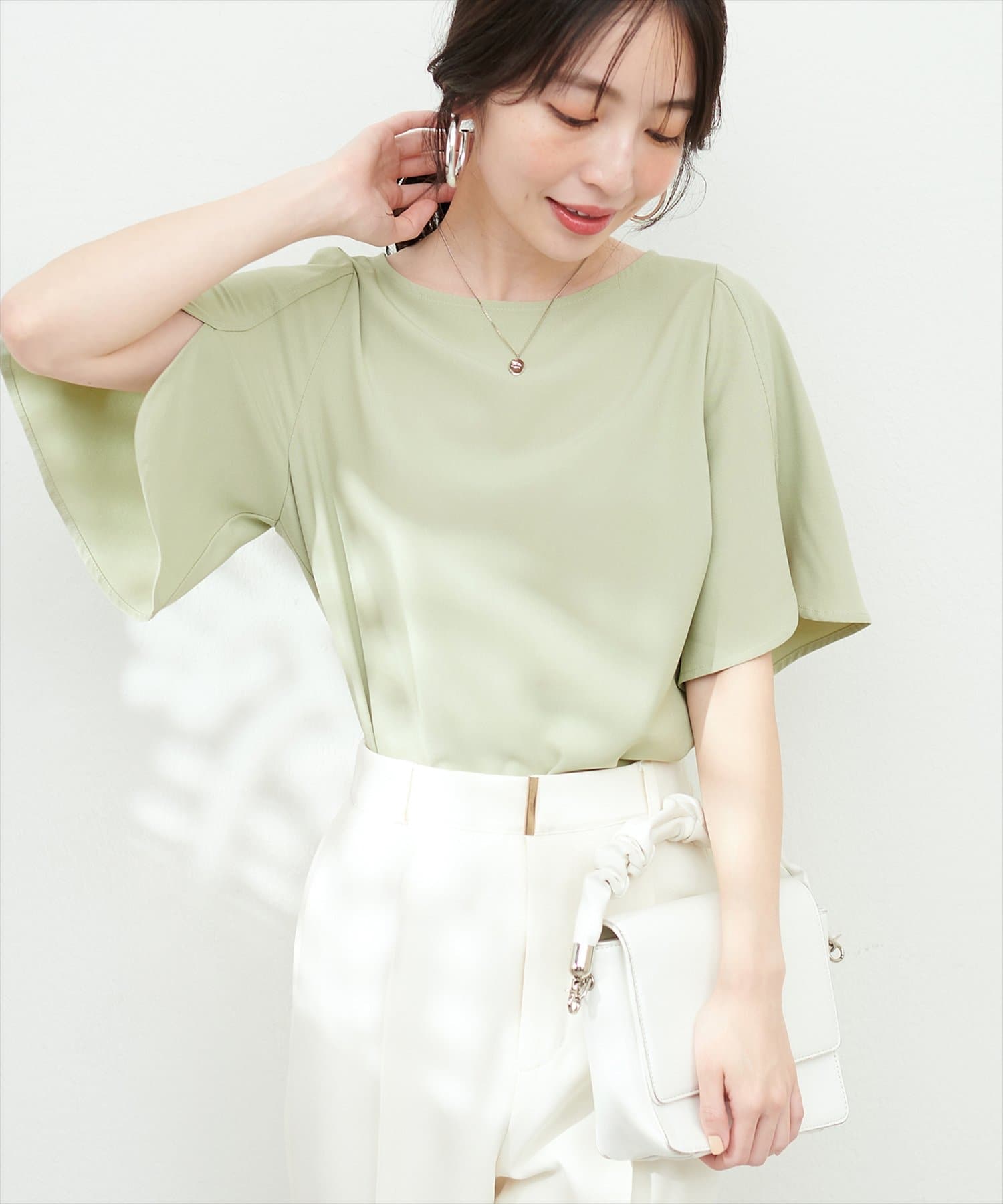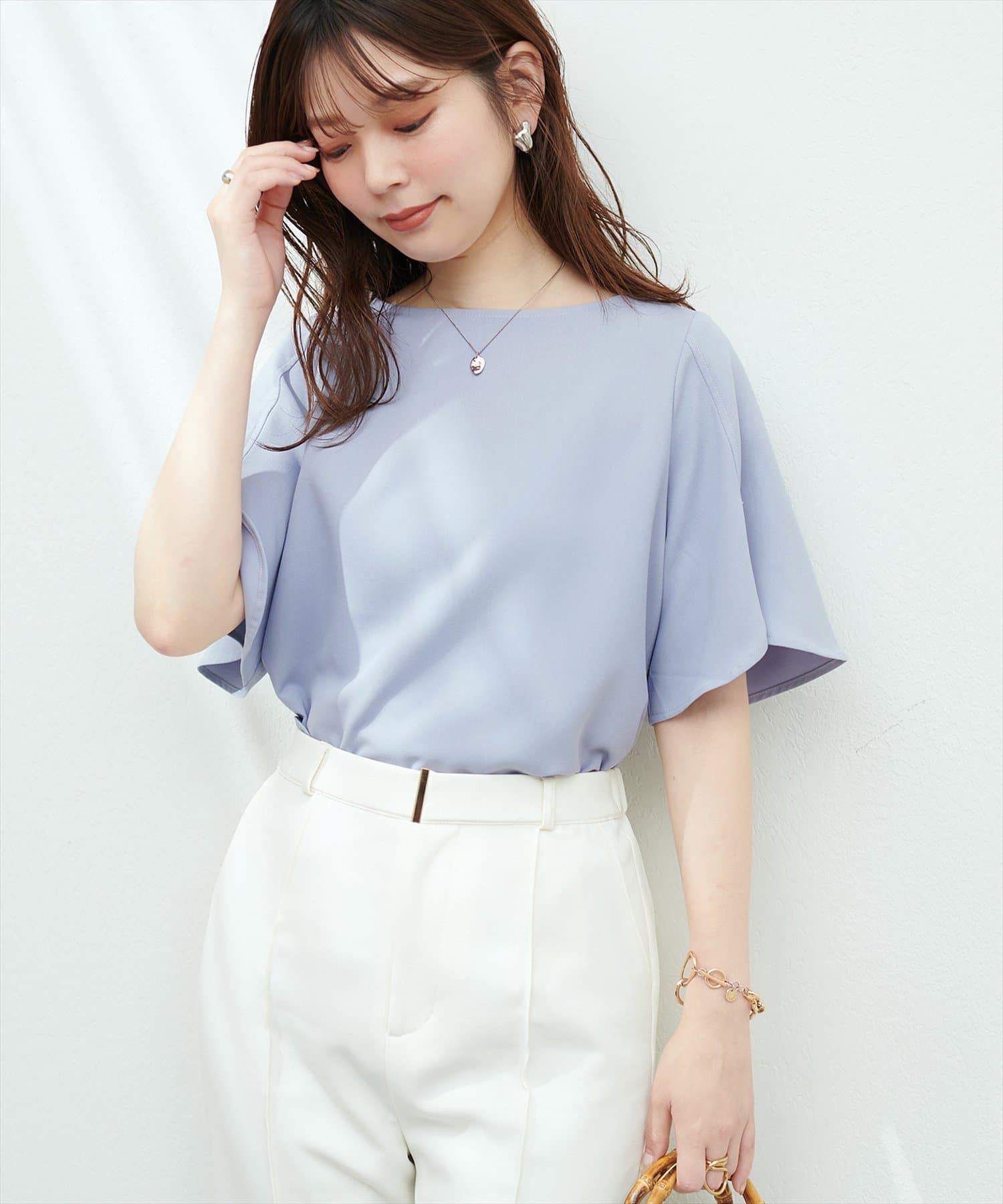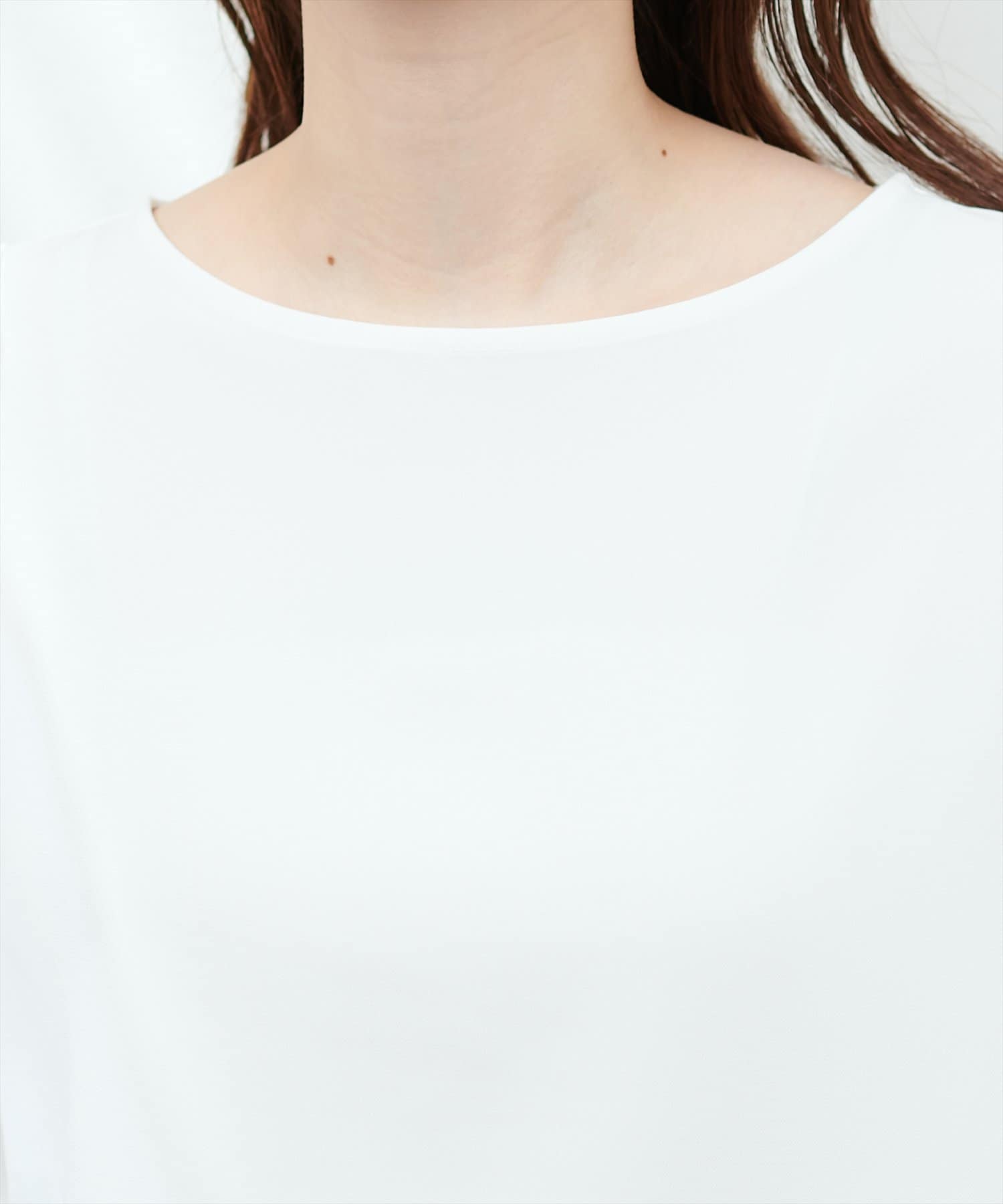 やや広めのネックラインは、お顔周りをすっきりと見せてくれます。