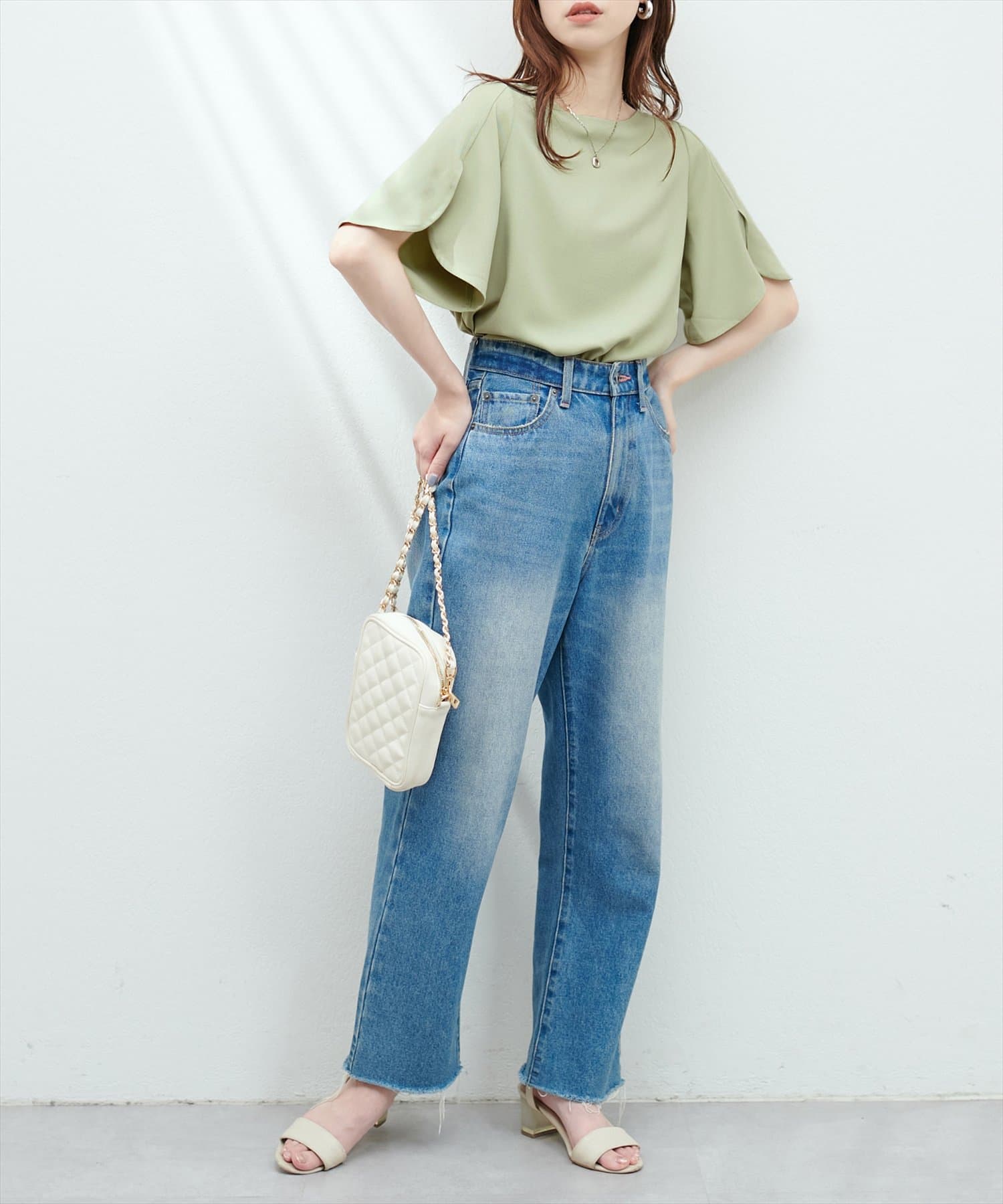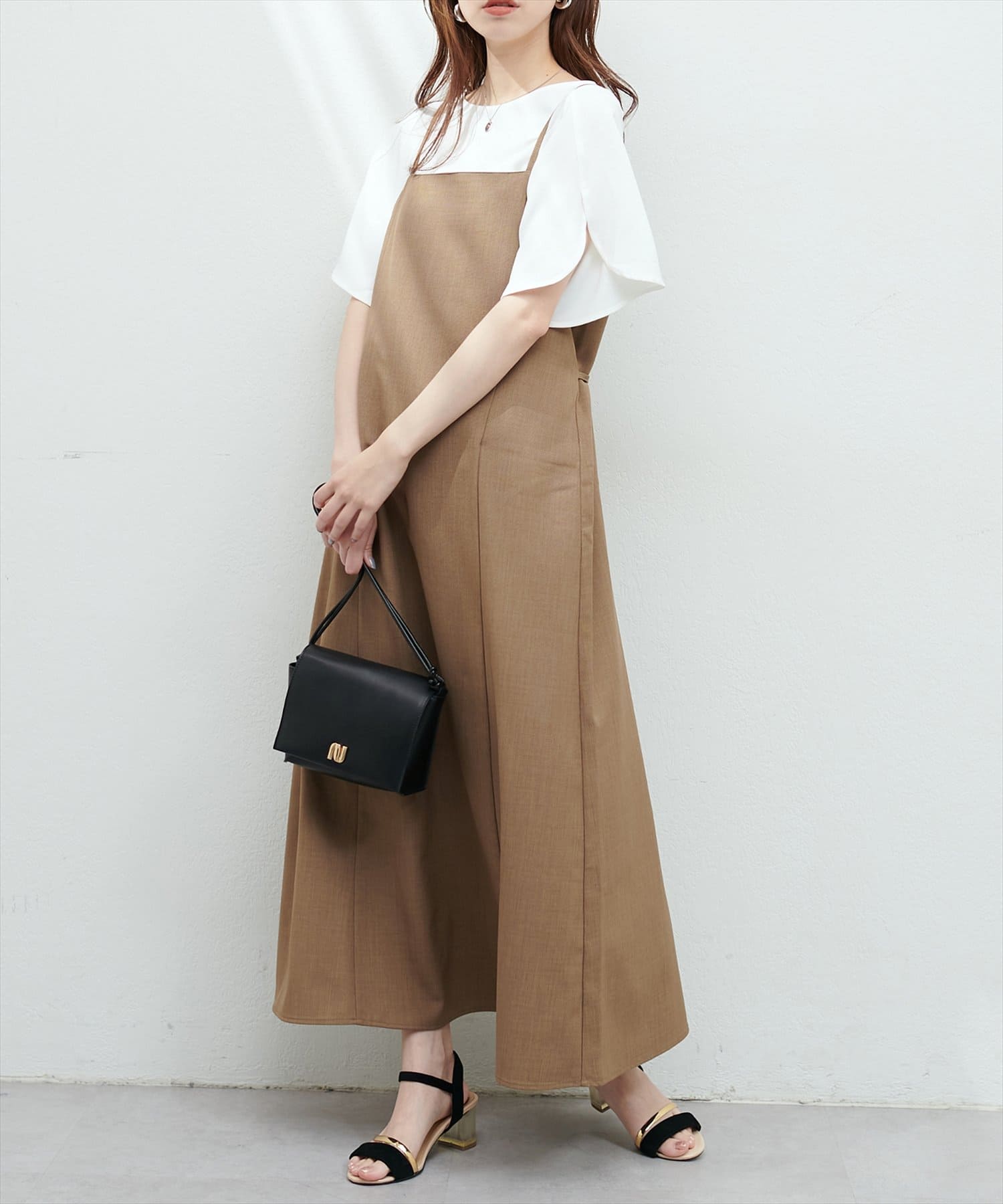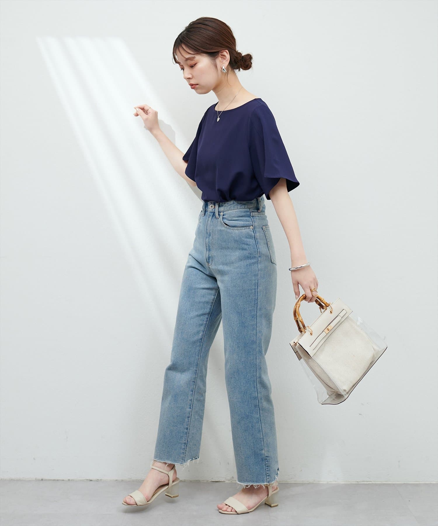 Aラインシルエットのスカートや、ナロースカーにウエストインしてすっきり上品に合わせて頂くのはもちろん、テーパードパンツやシンプルなデニムにウエストアウトでさらっと合わせてもきまります。