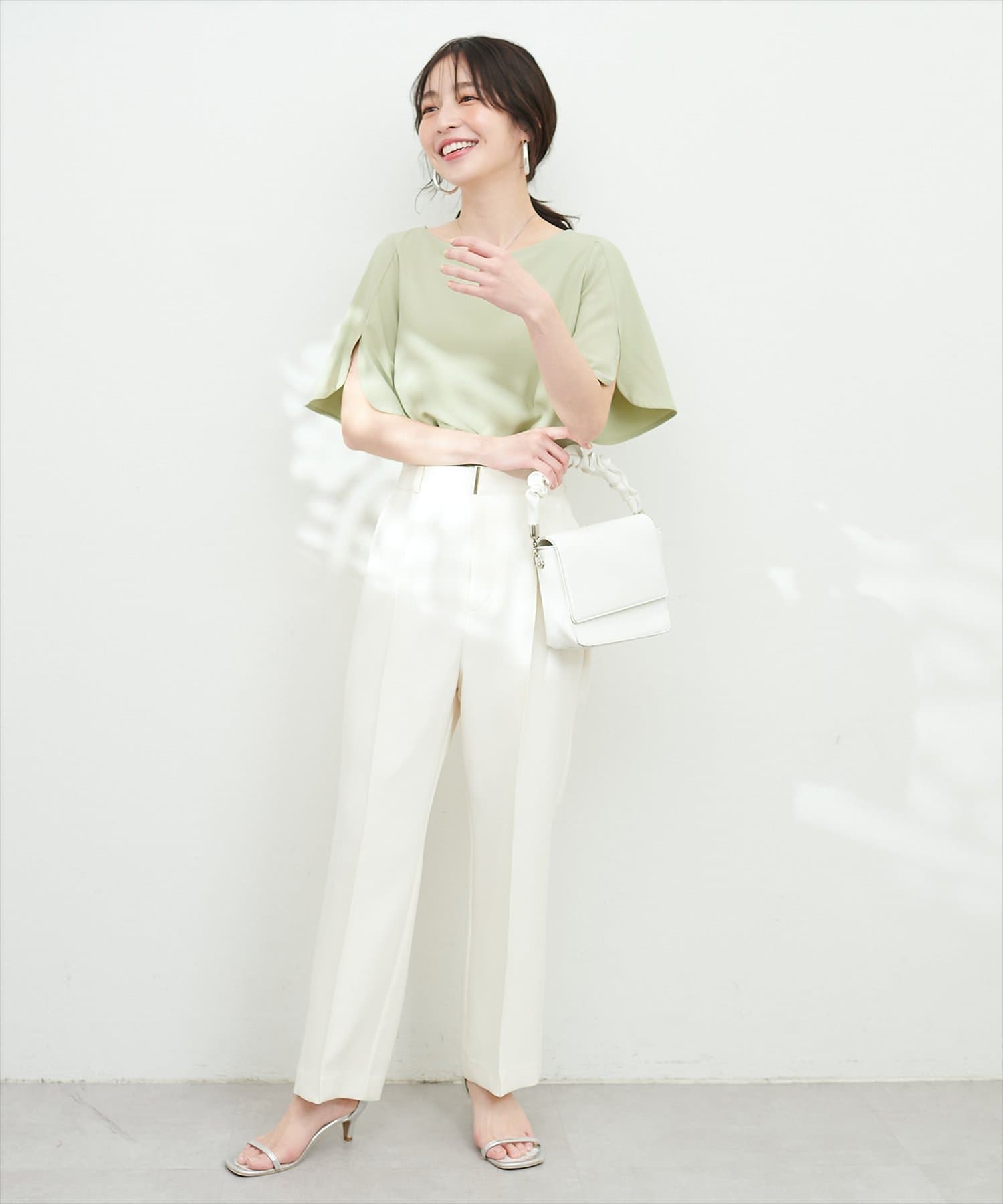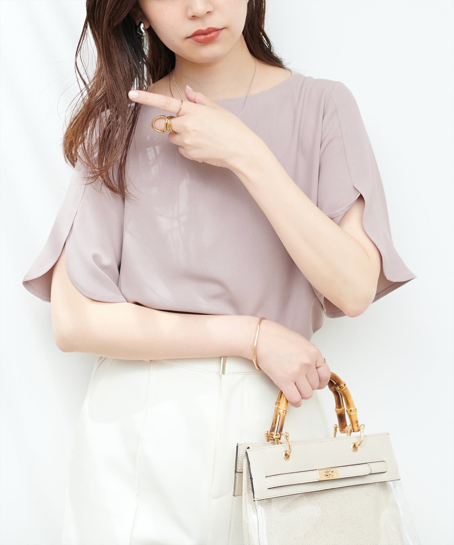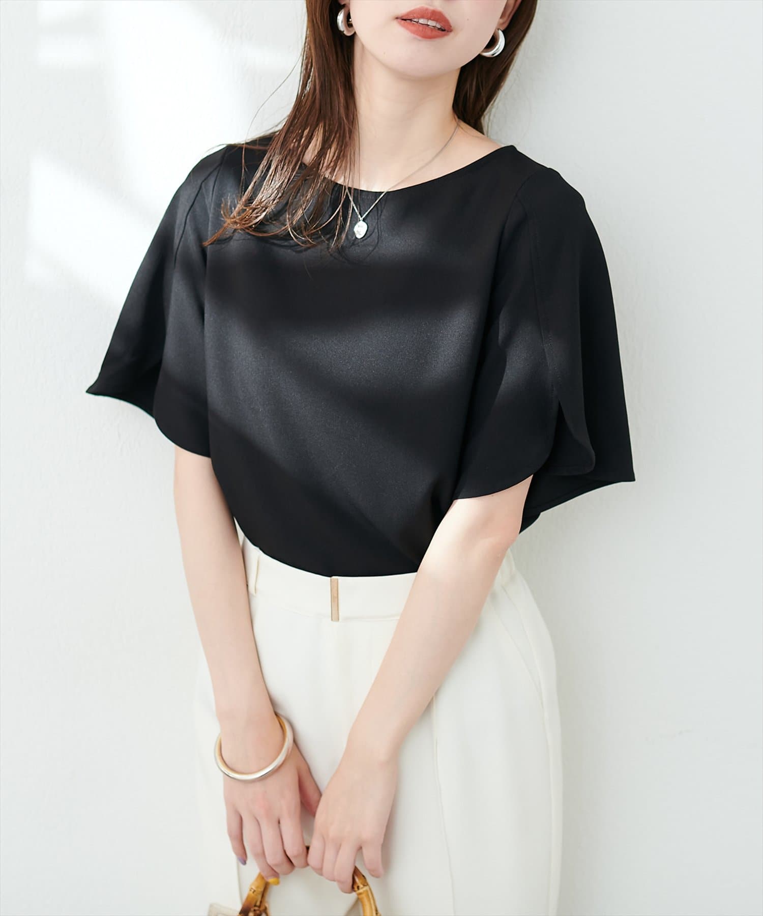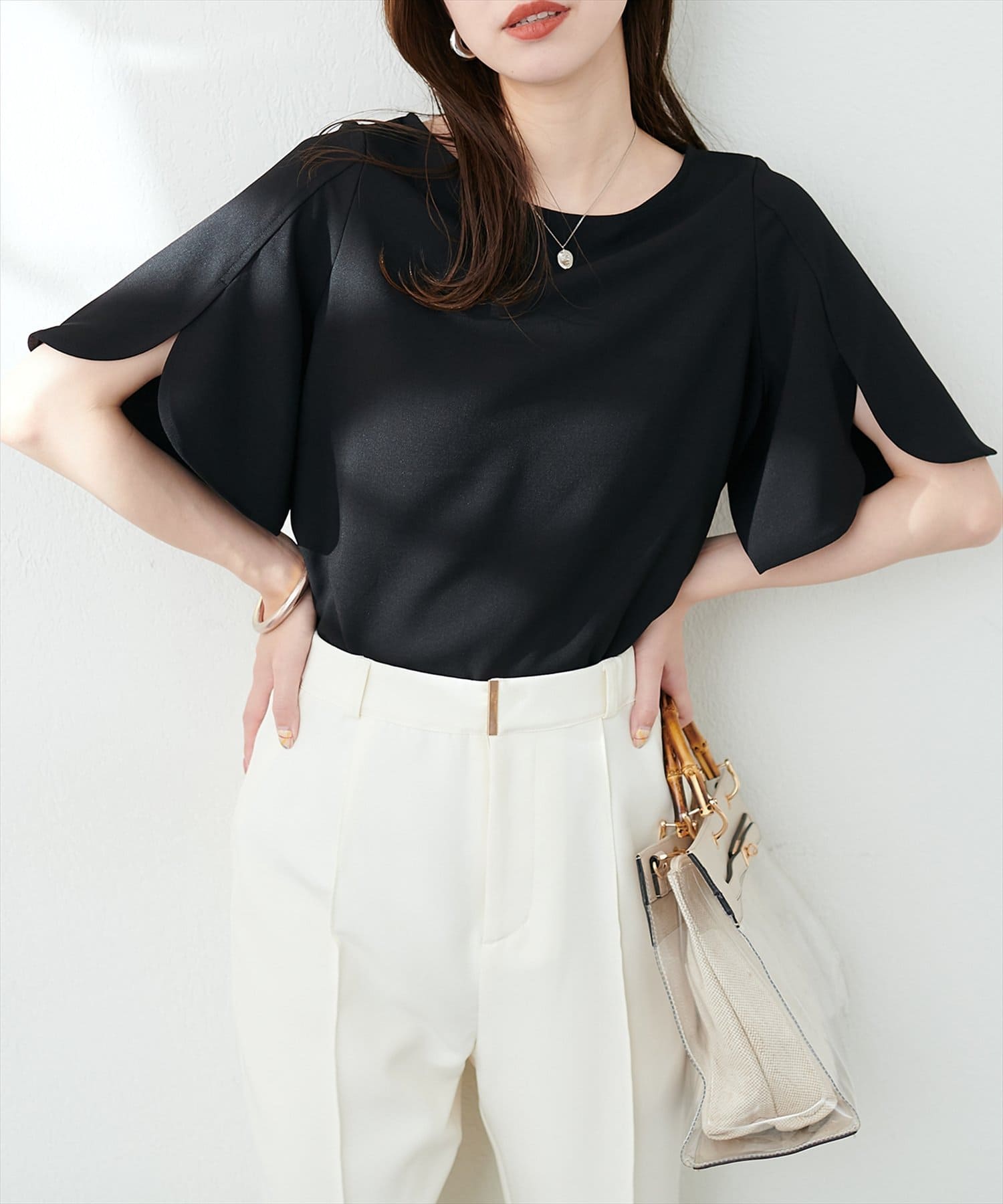 袖スリットとバックパールで細部までこだわった1枚