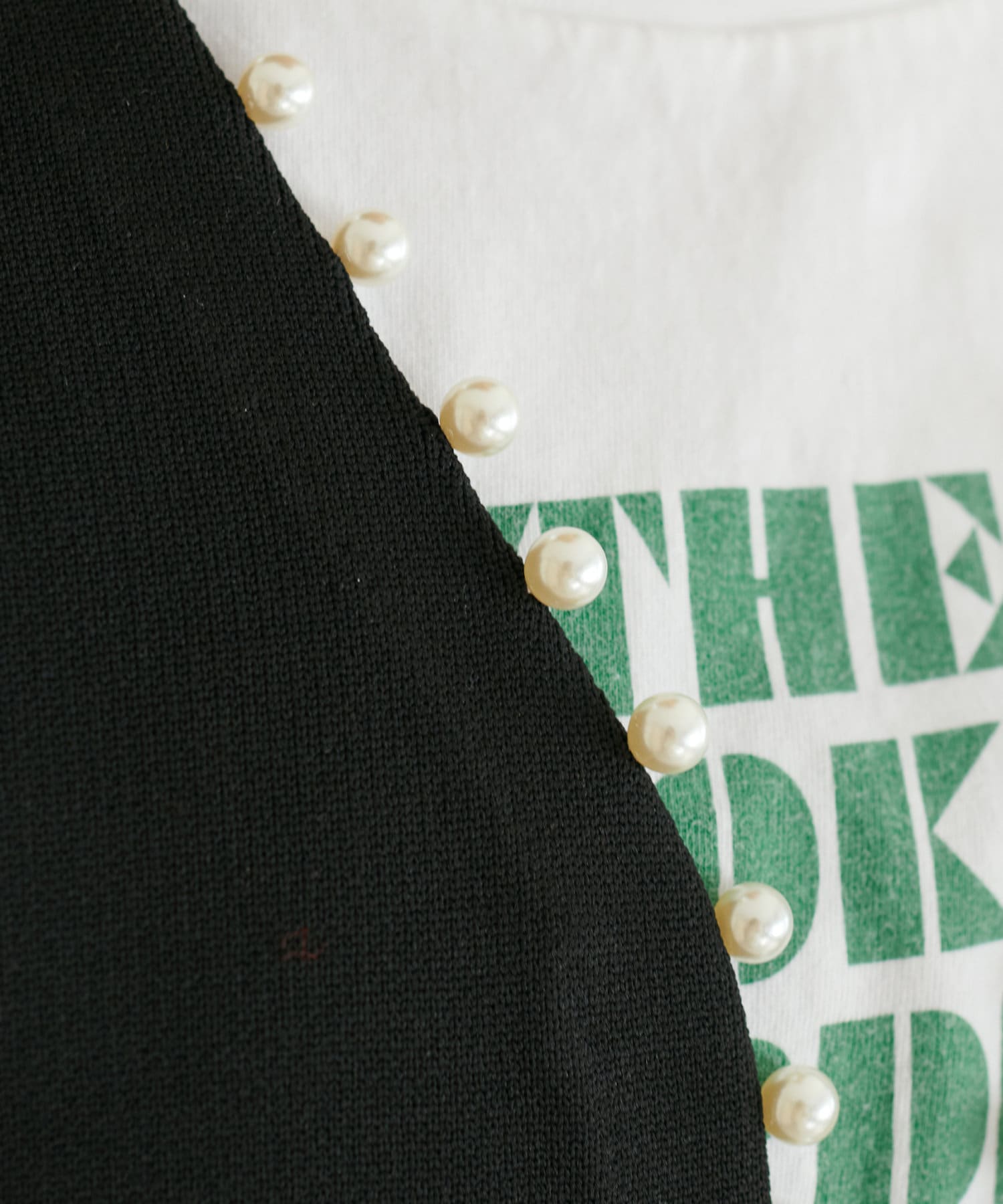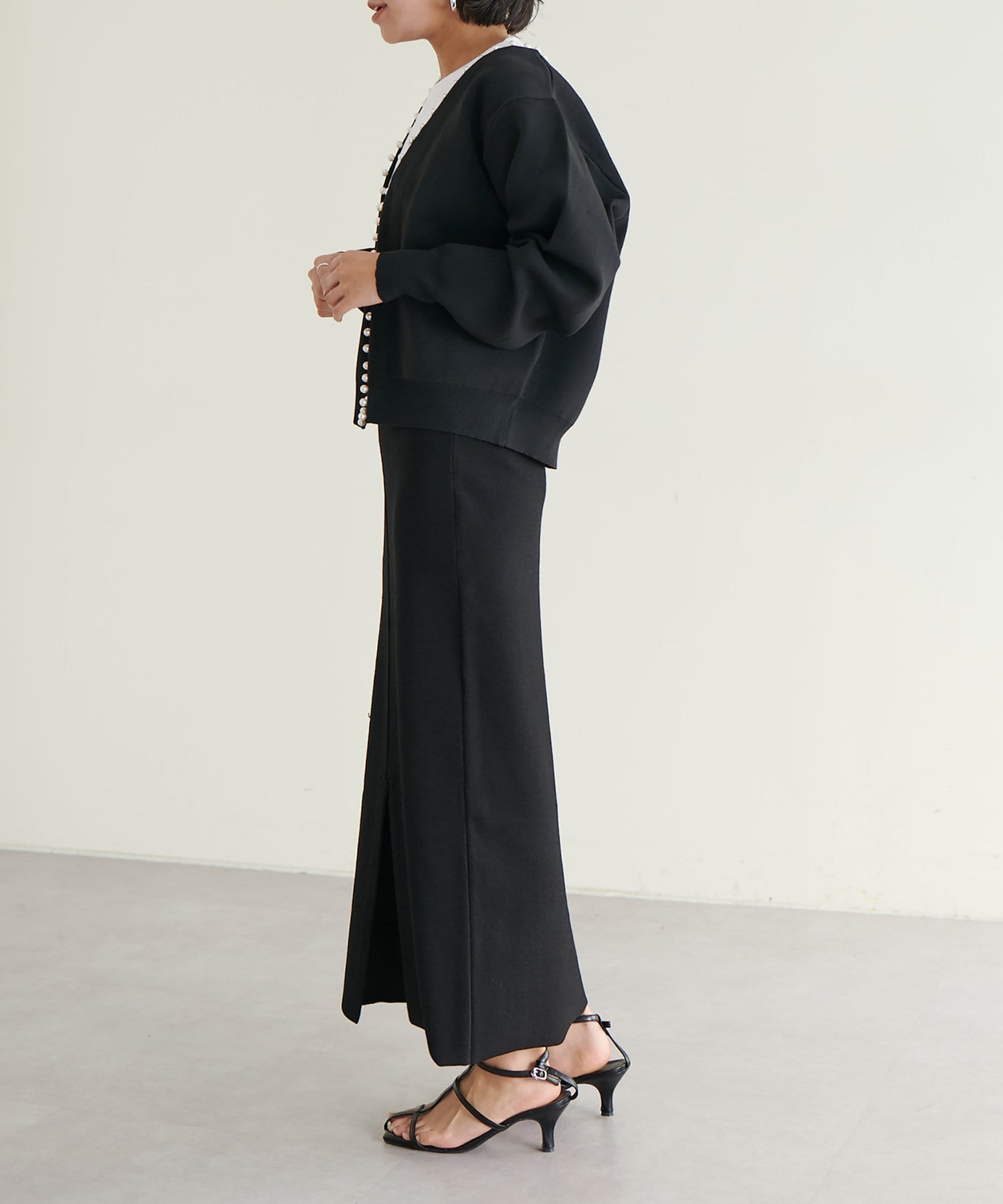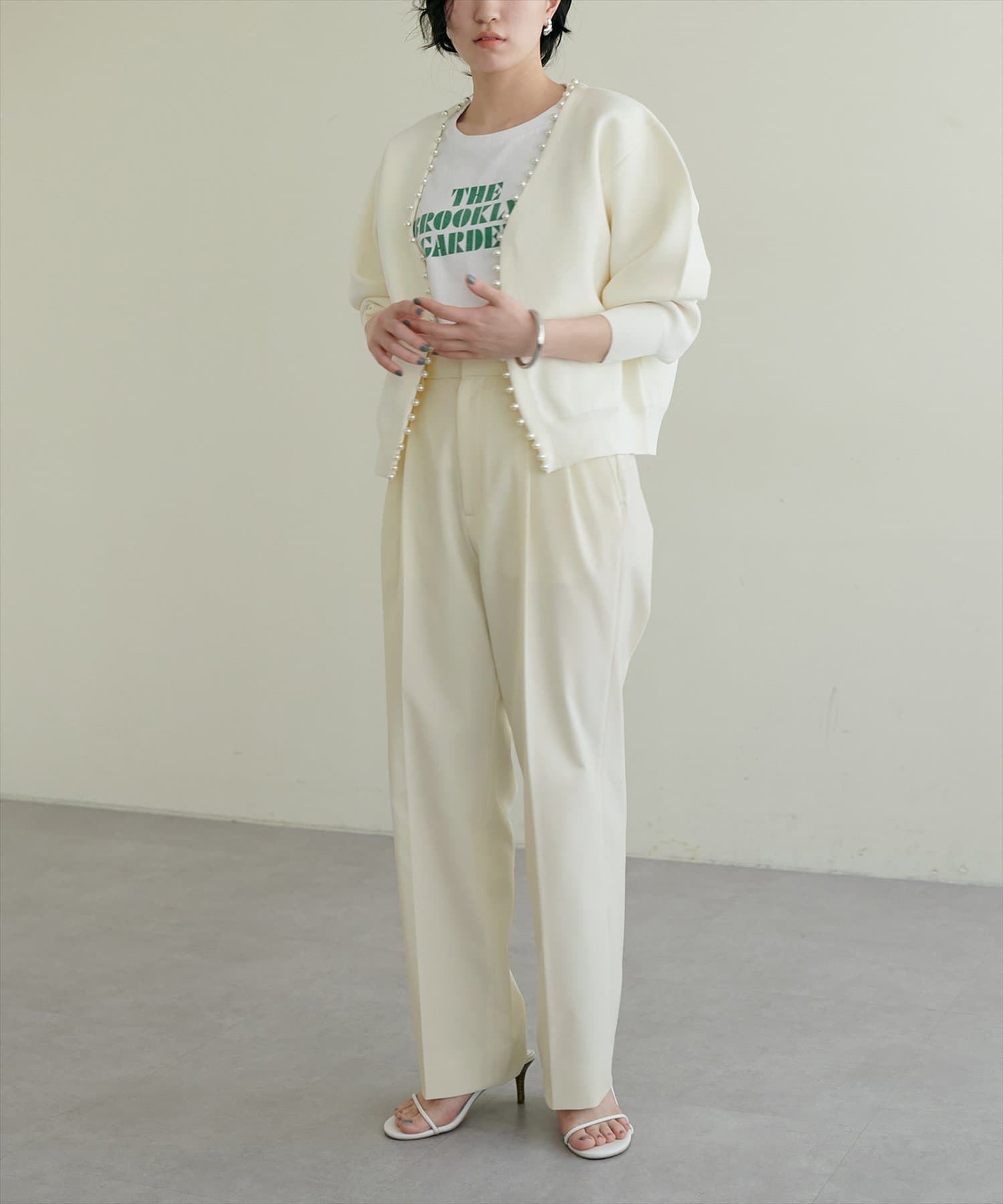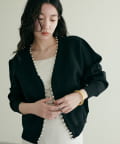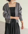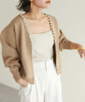 【LARUTA】BIGパールトリムポリニットカーディガン