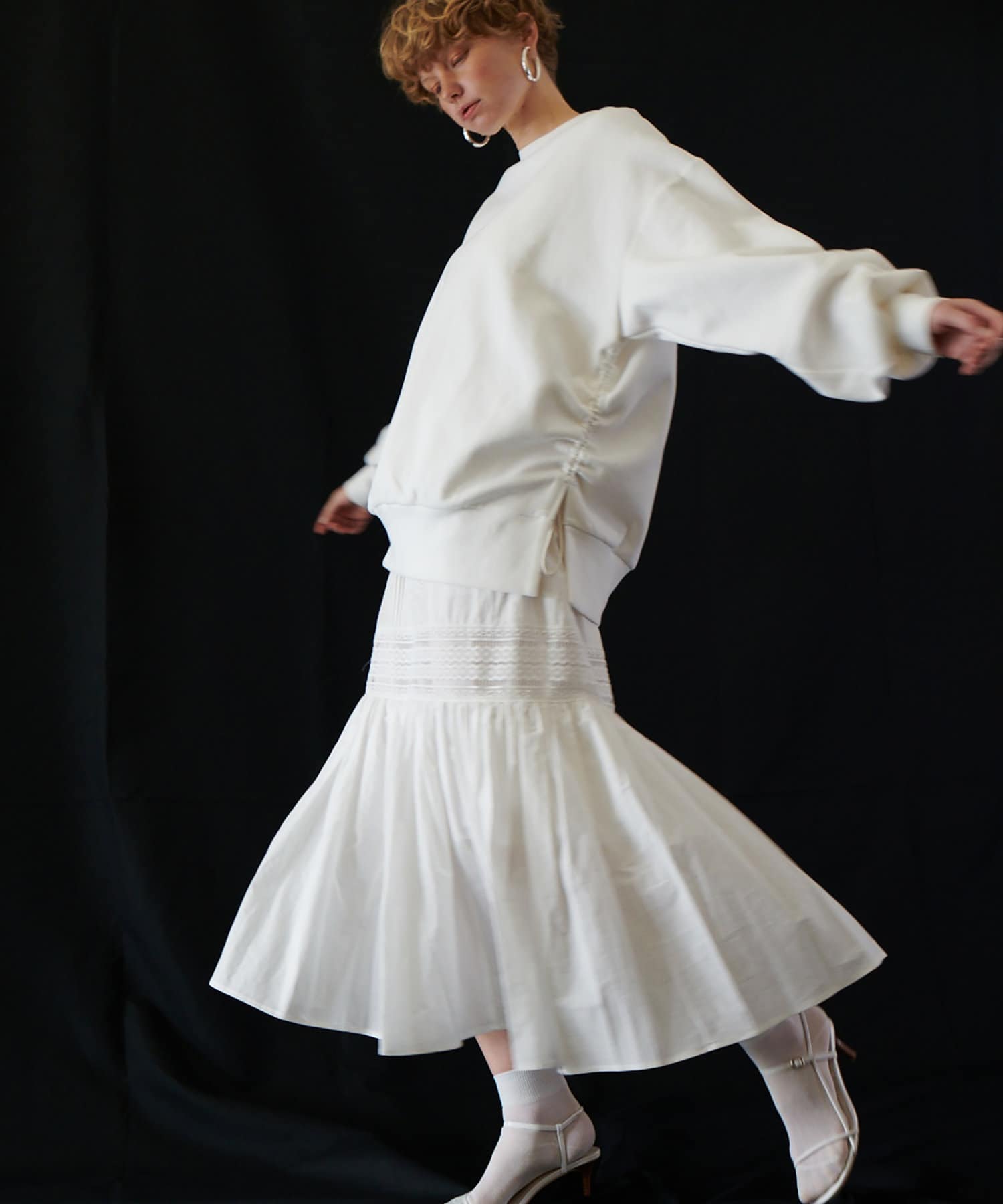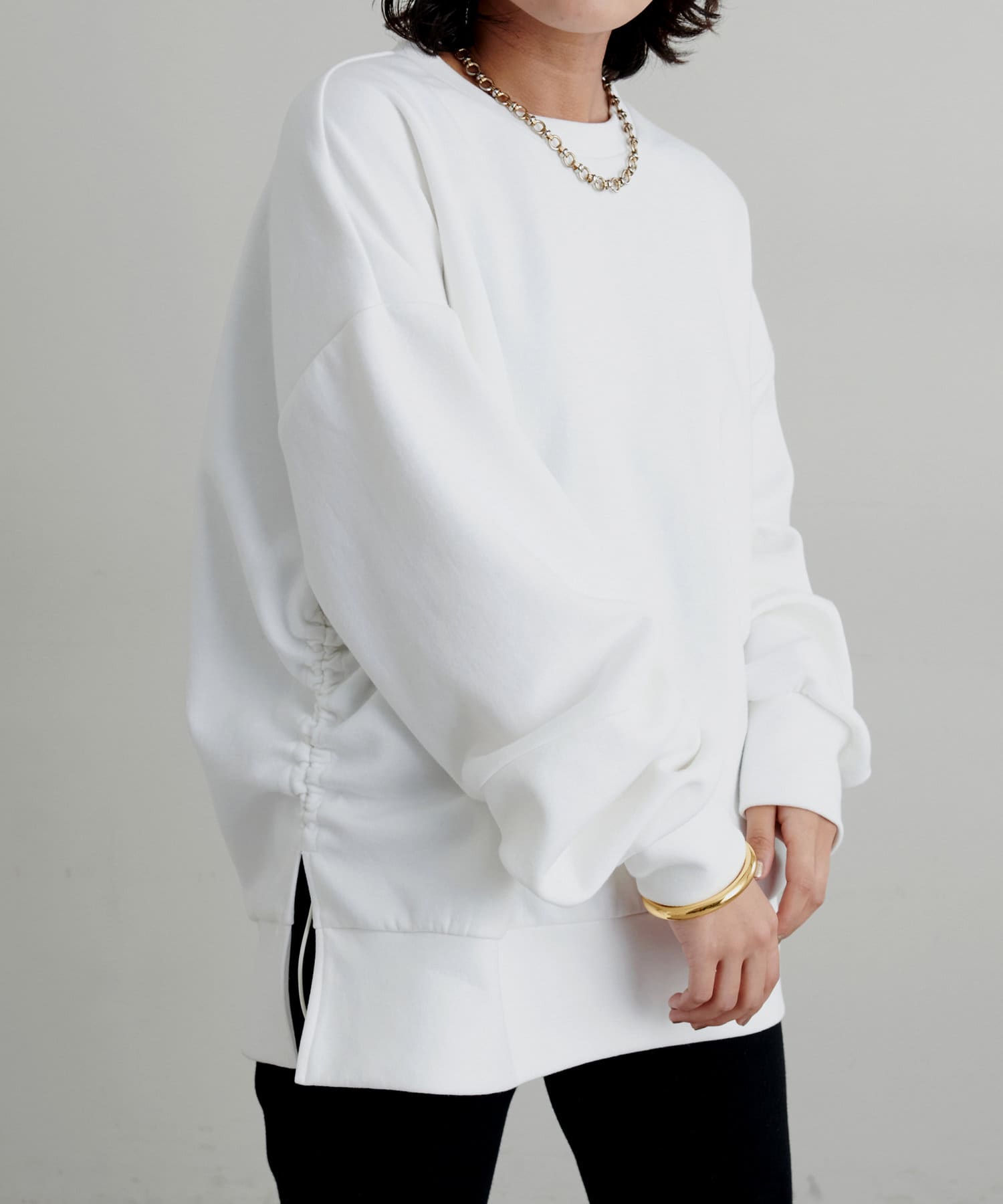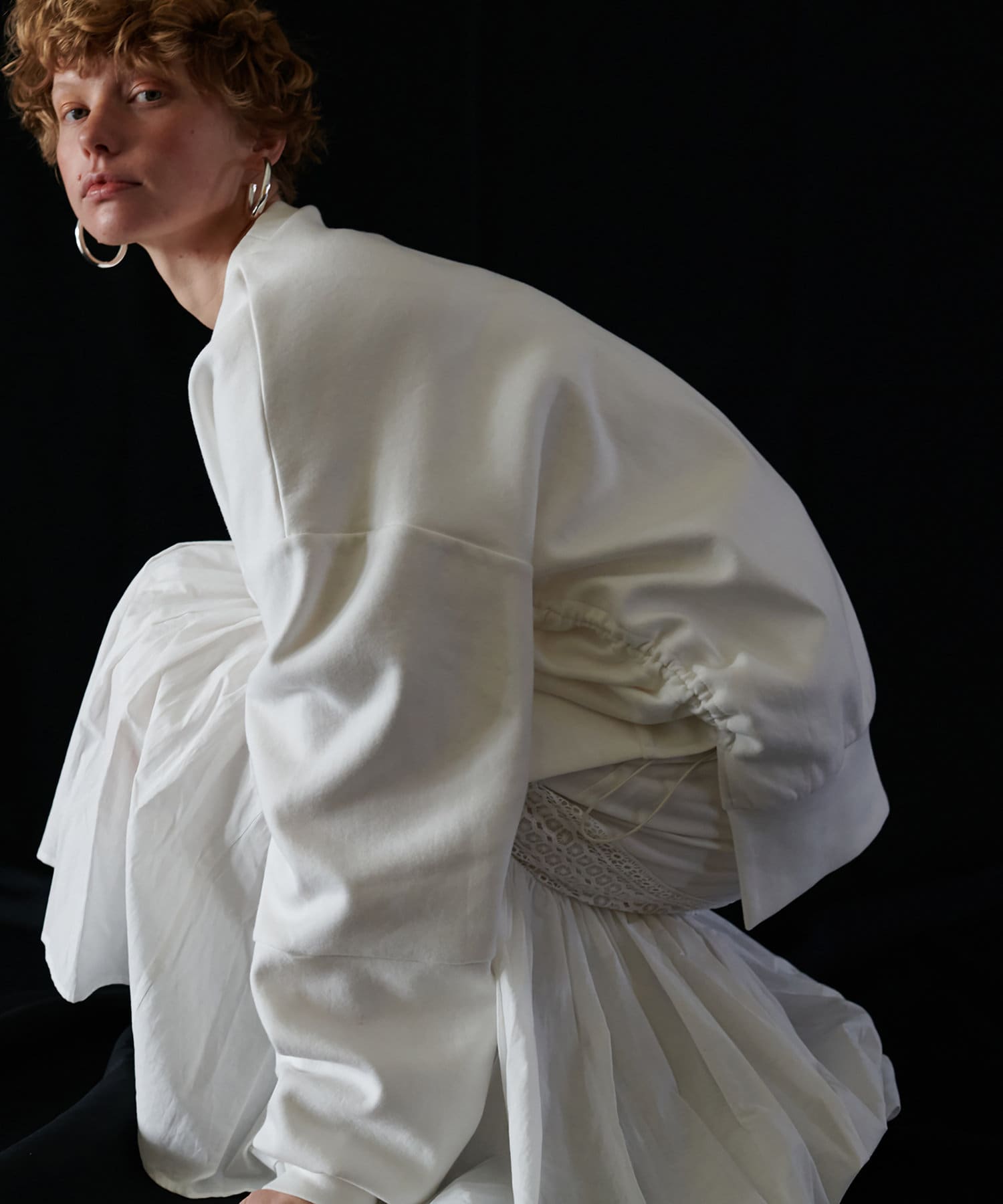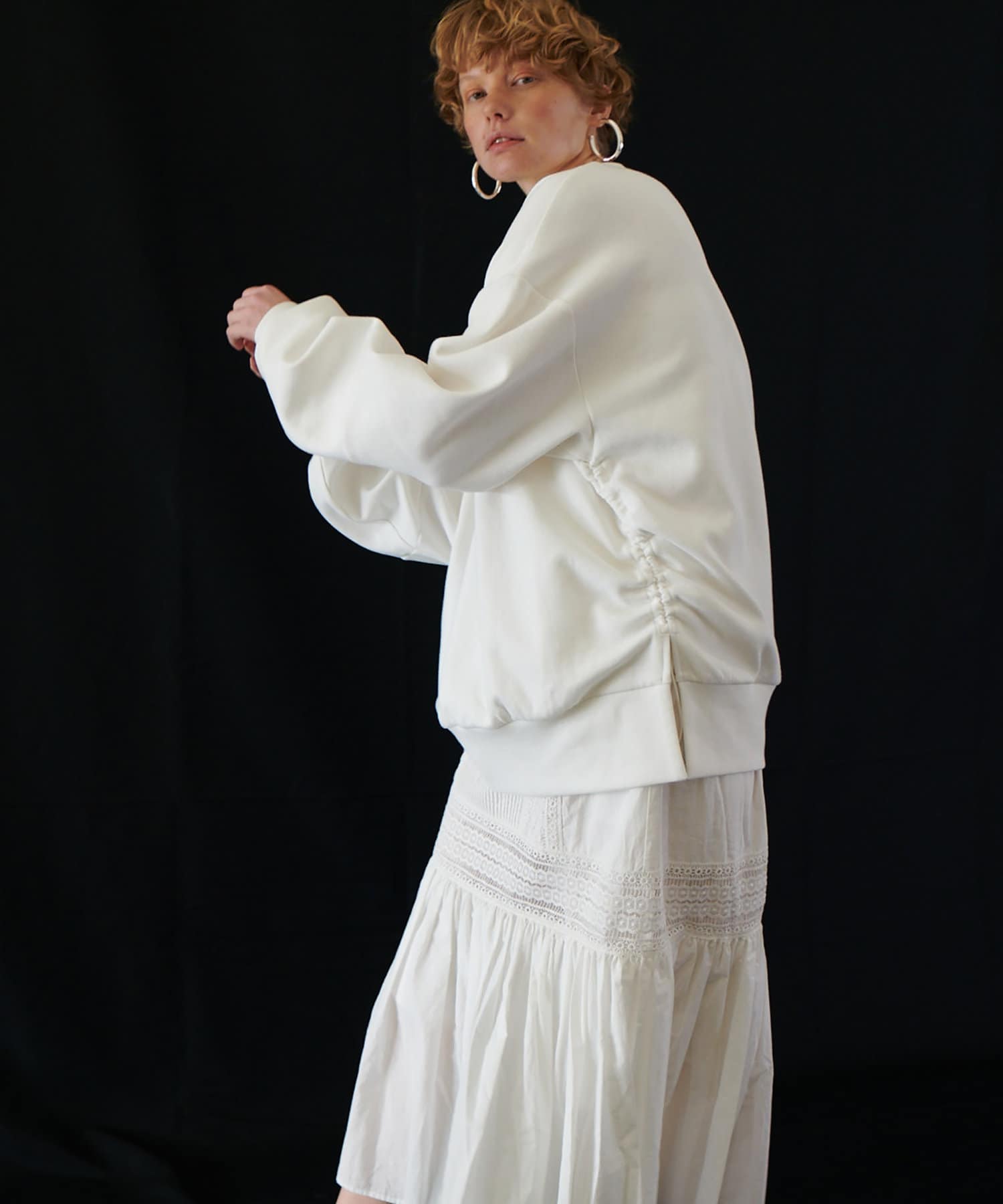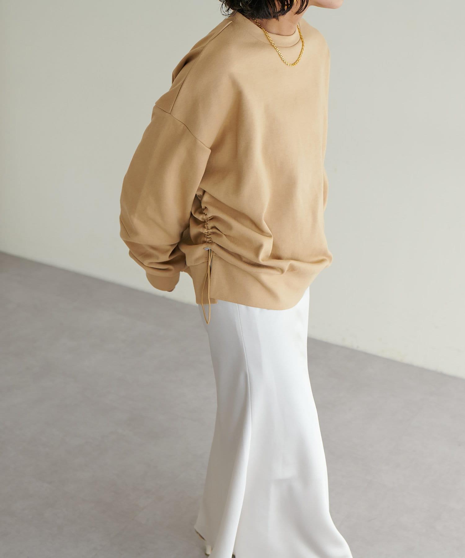 程よい厚みのある素材と脇のドロストで立体感のあるシルエットに。