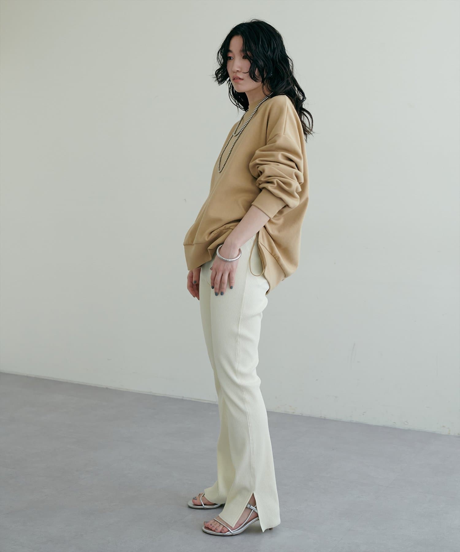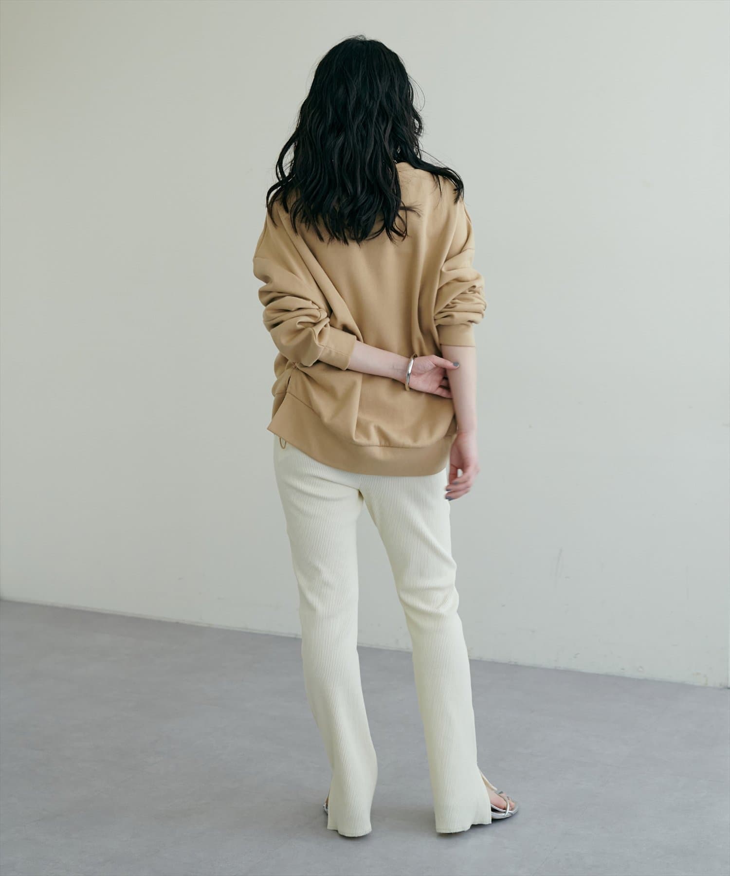 リラックスしたい時にはリブパンツを合わせても程よくこなれ感が出て◎
