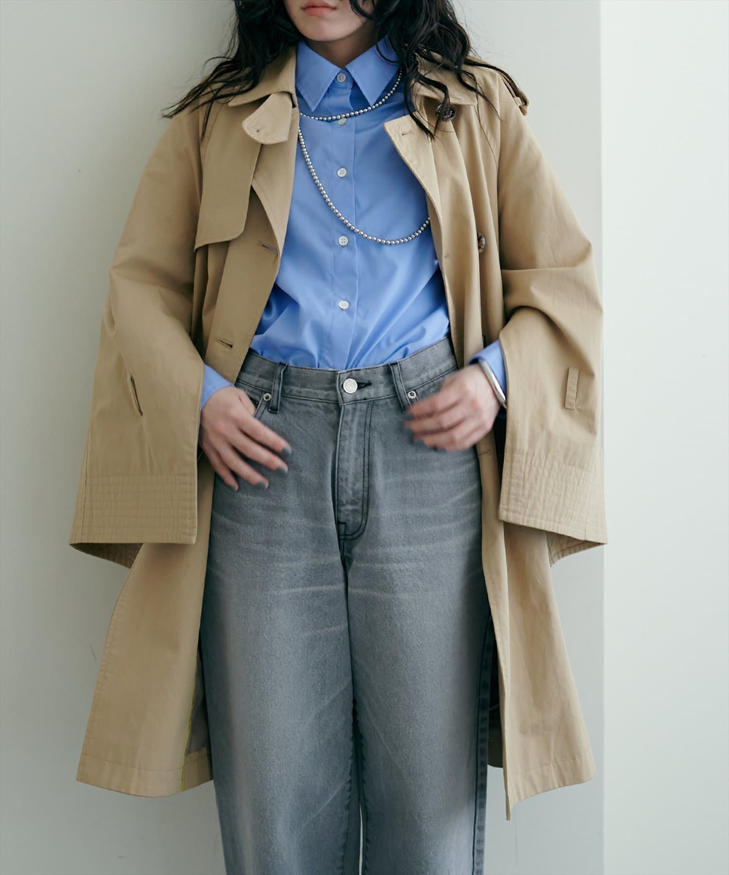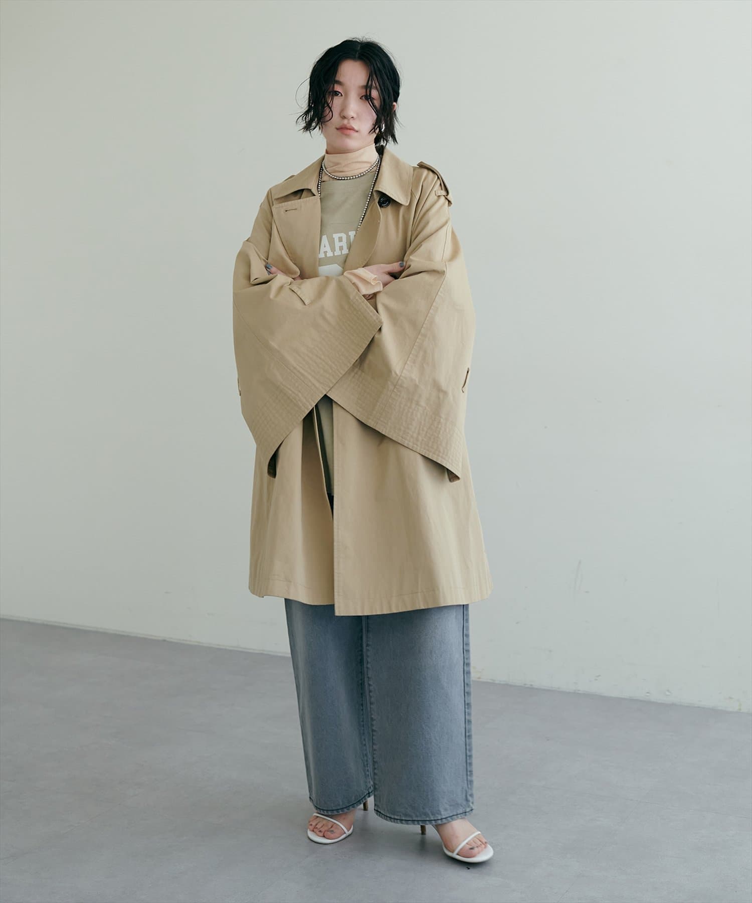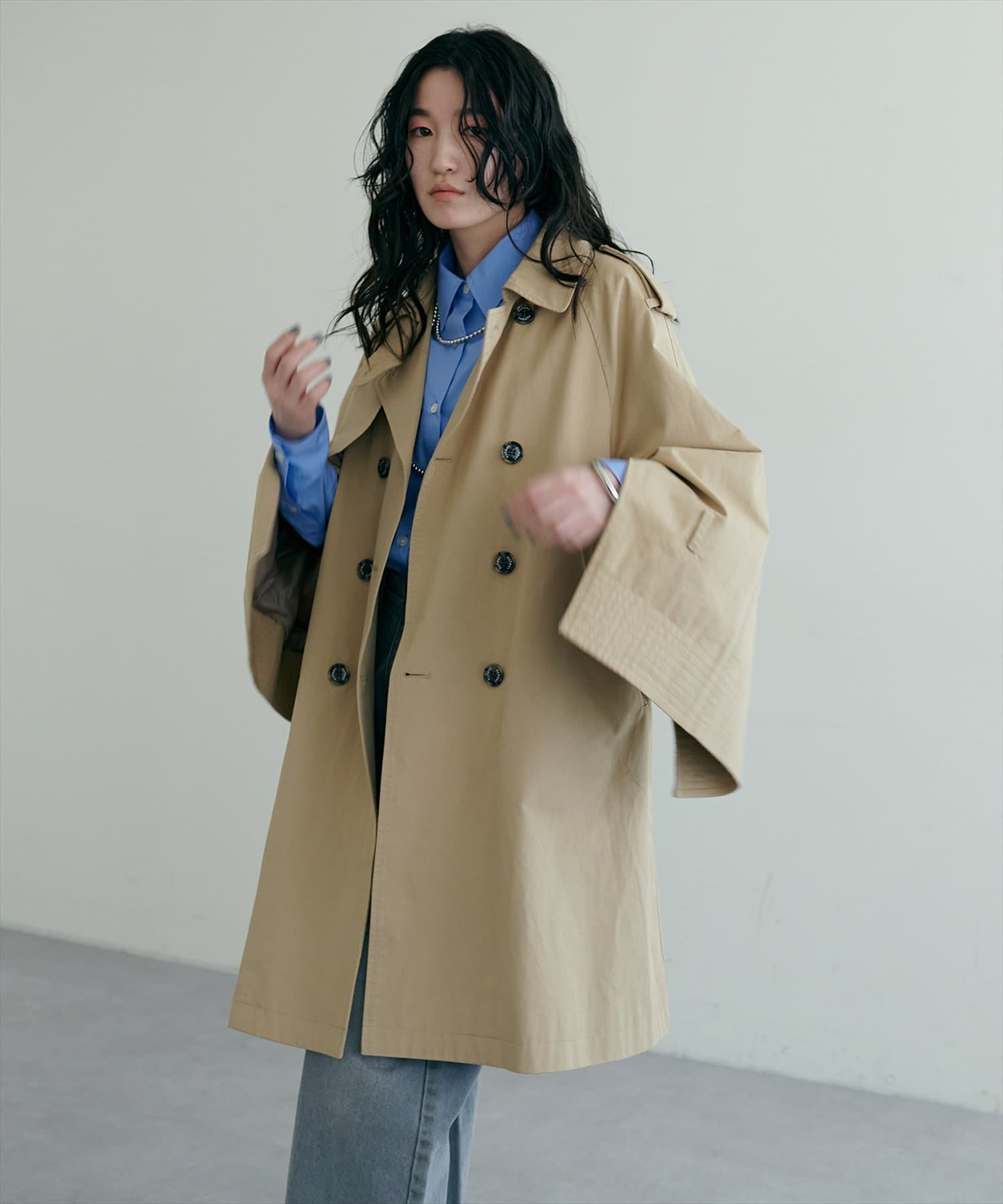 スリットスリーブミドルケープトレンチコート