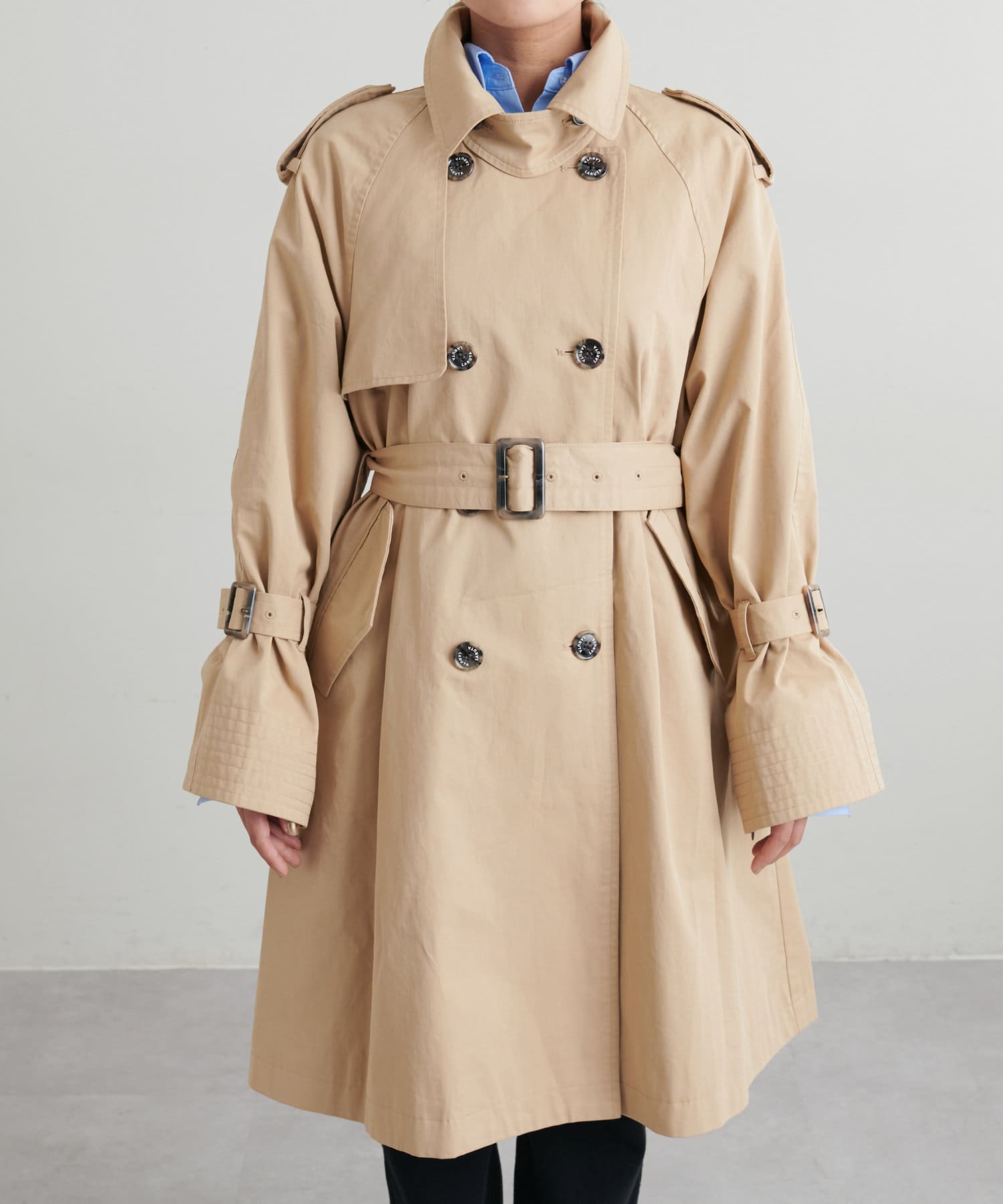 【LARUTA】スリットスリーブミドルケープトレンチコート