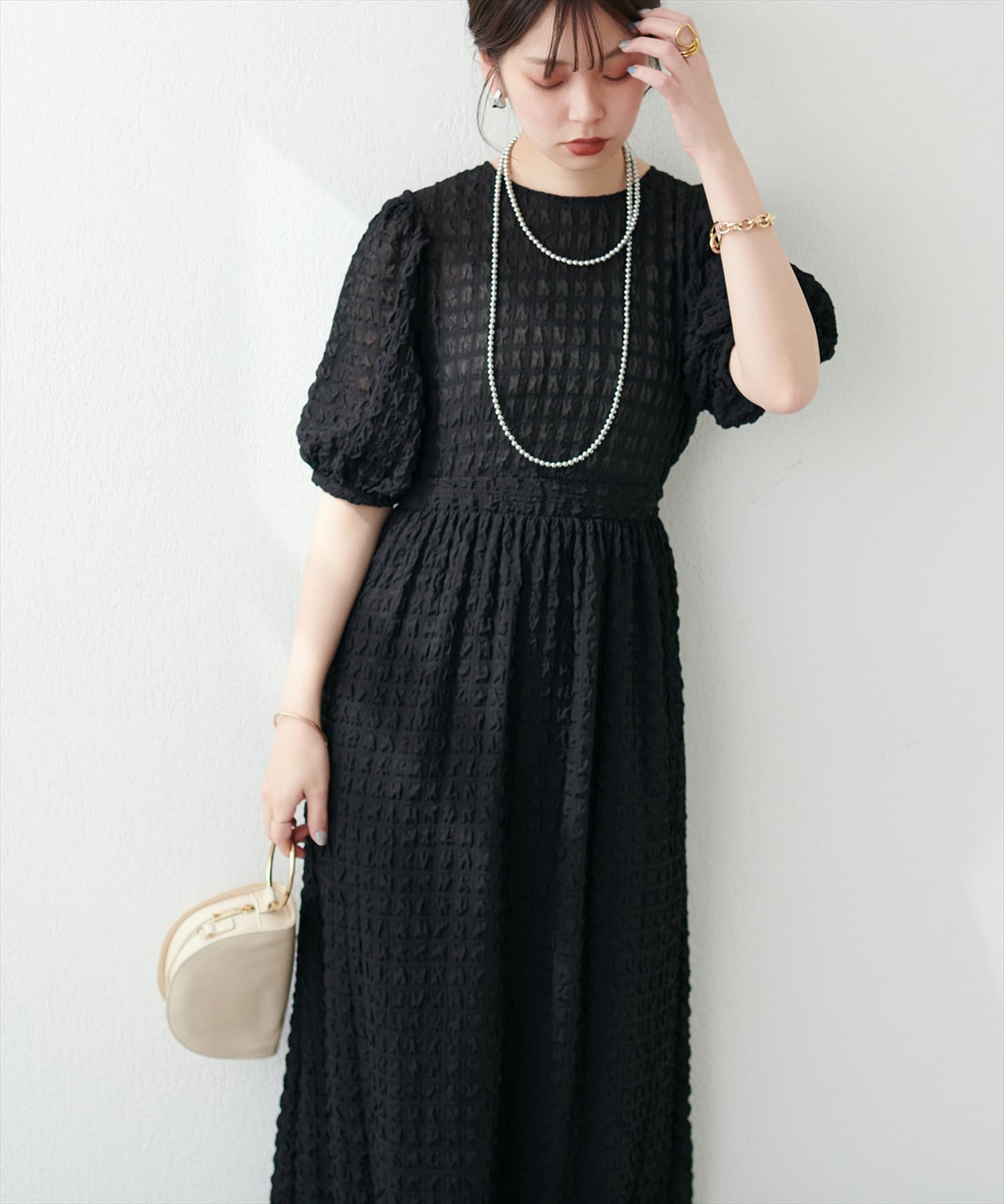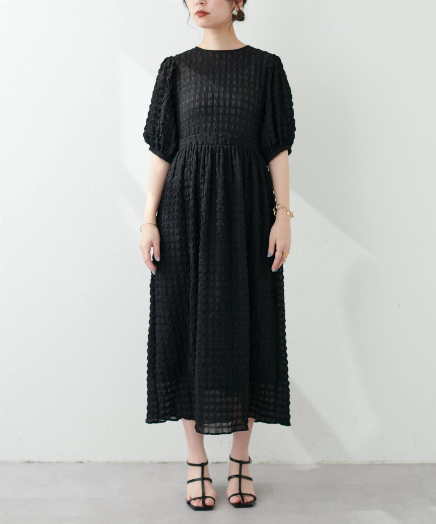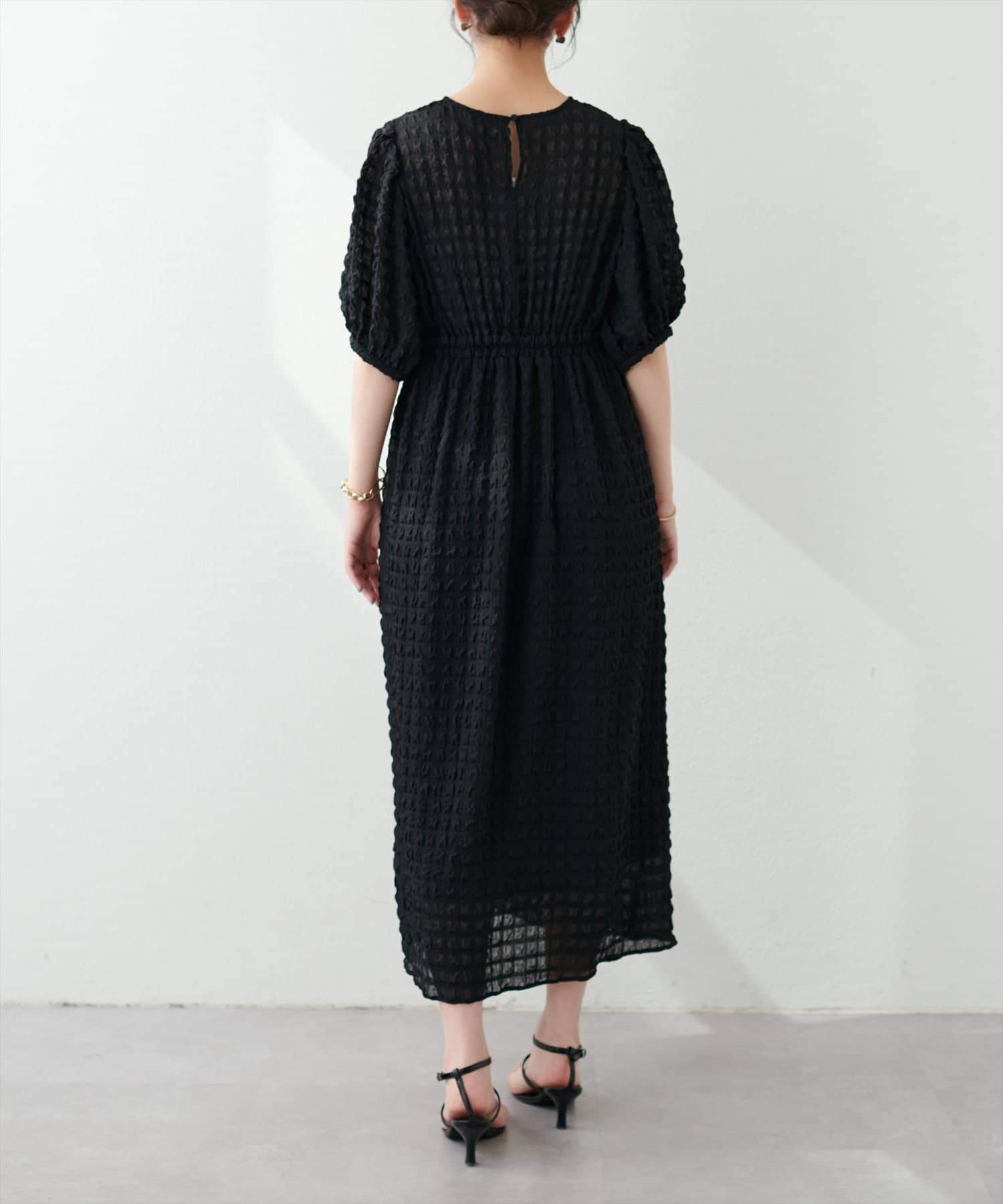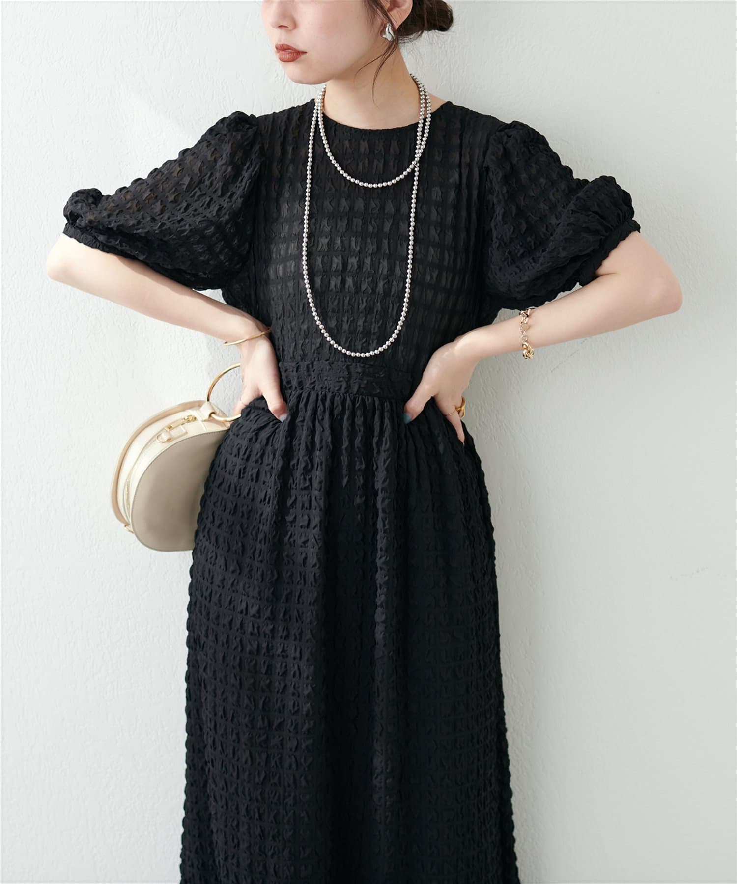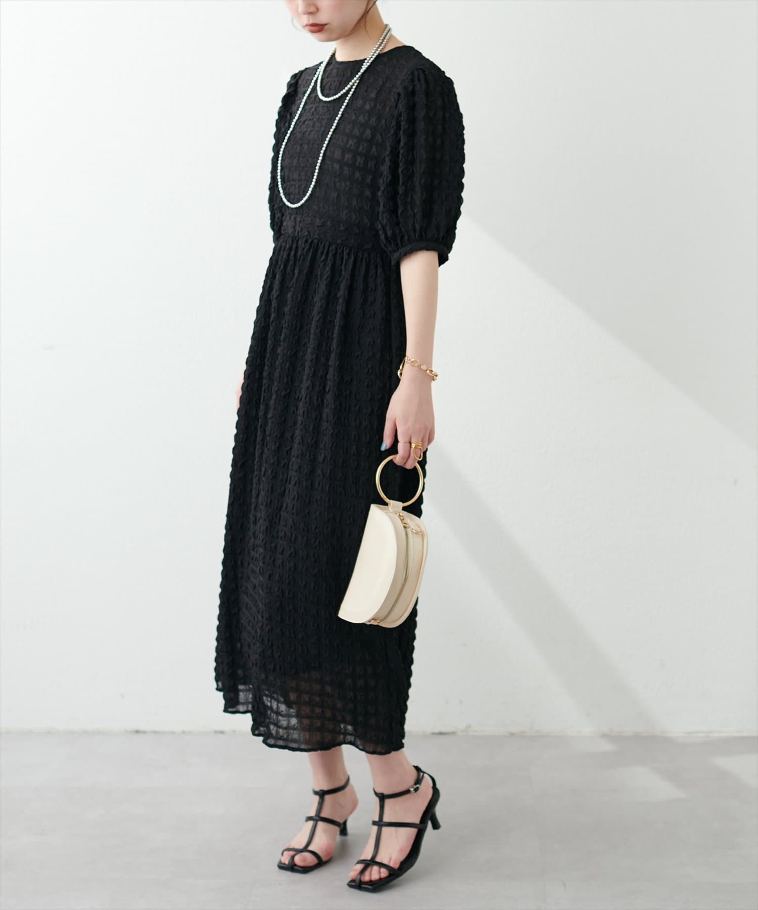 ほんのりシアー感のあるぽこぽこデザインが可愛いワンピース。