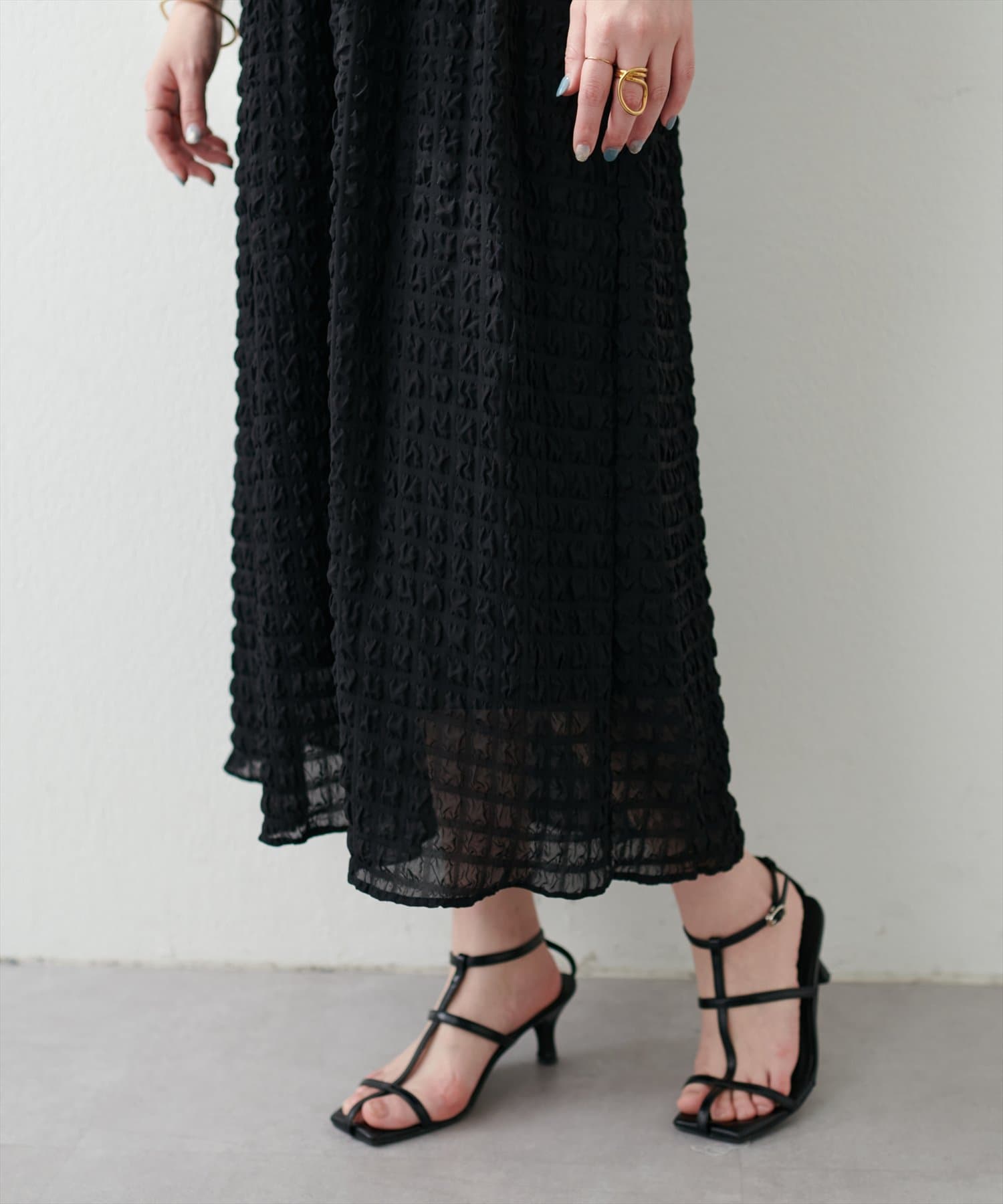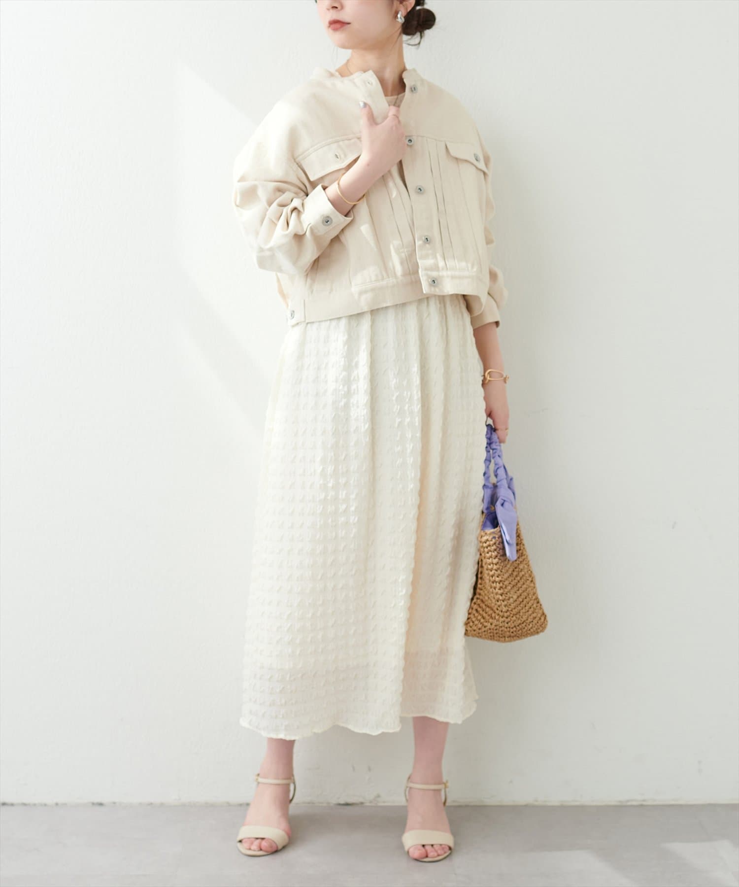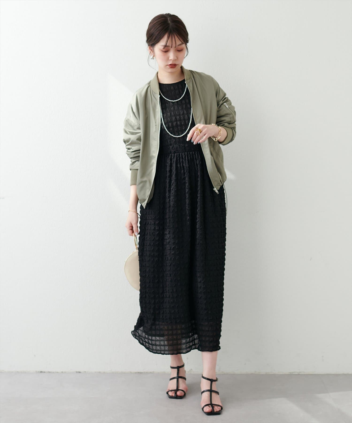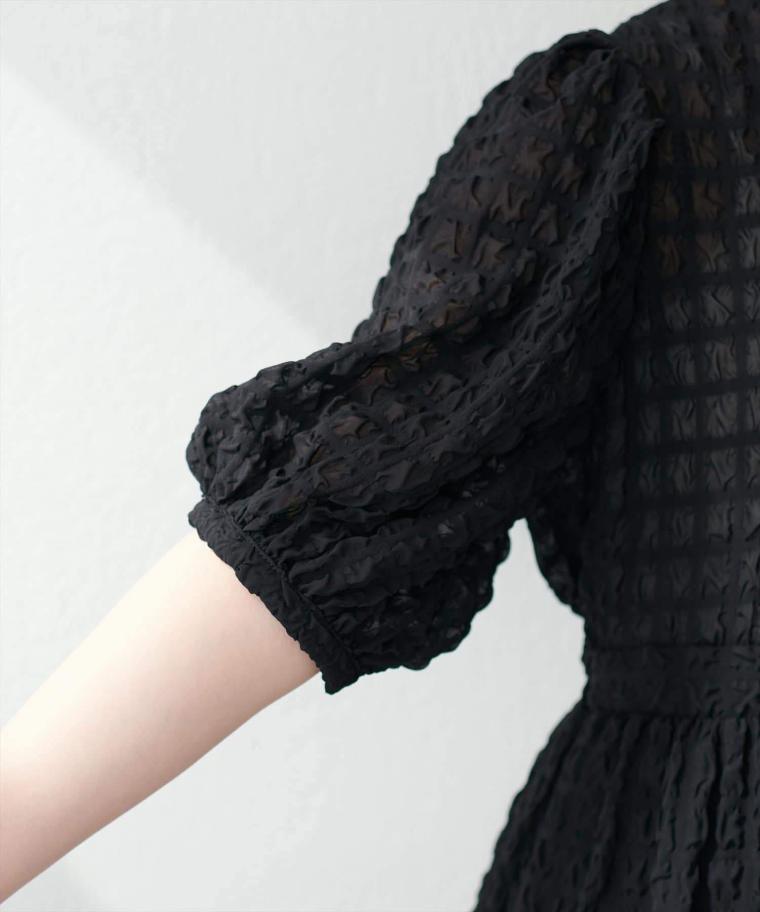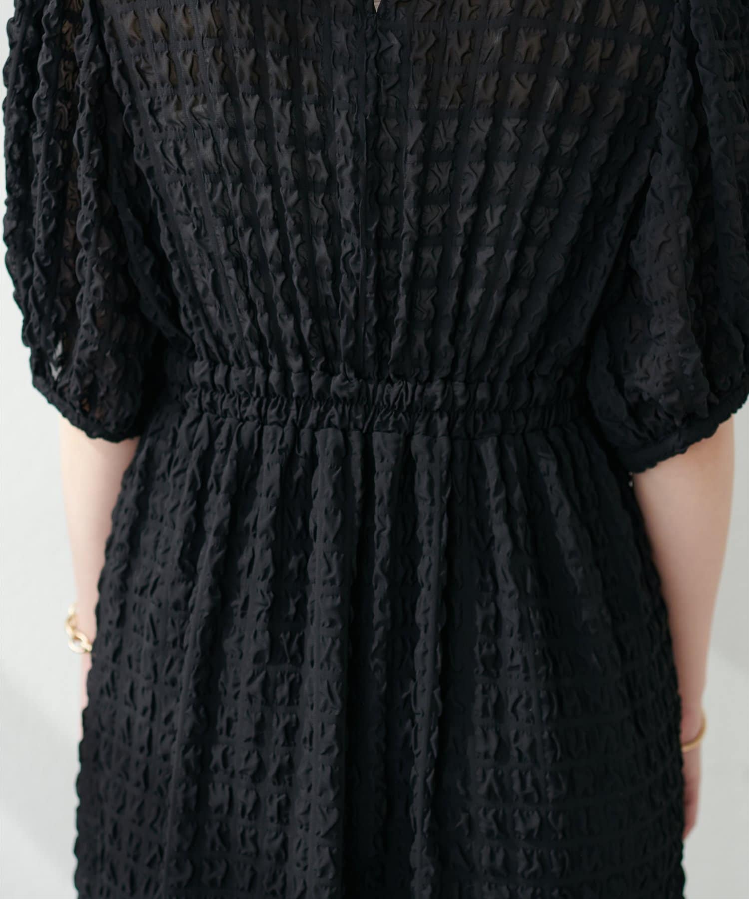 ほんのりシアー感のあるぽこぽこデザインが可愛いワンピース。