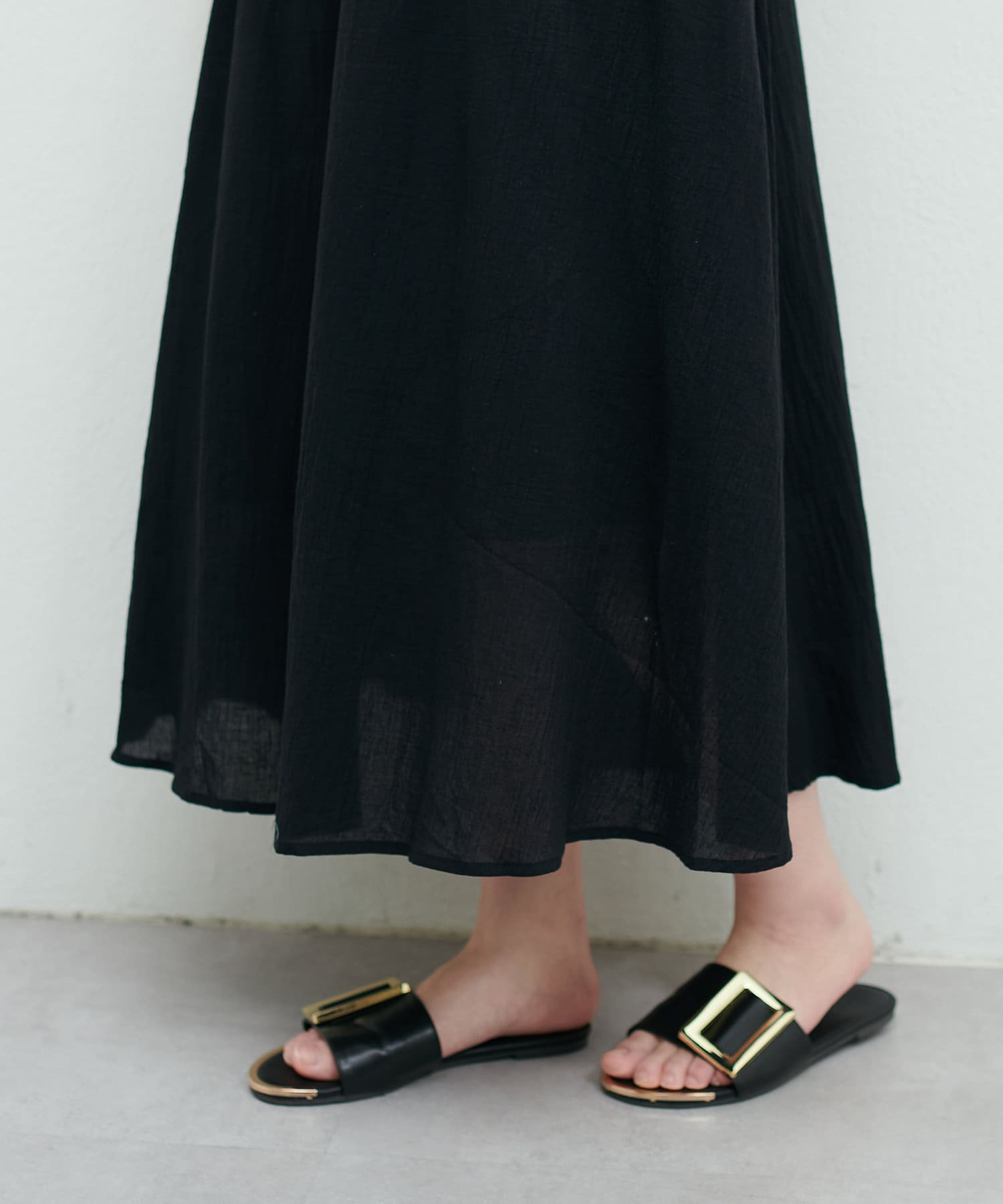 足元は華奢なサンダルや雑材のミュールを合わせるのはもちろん、スニーカー合わせで外しても◎