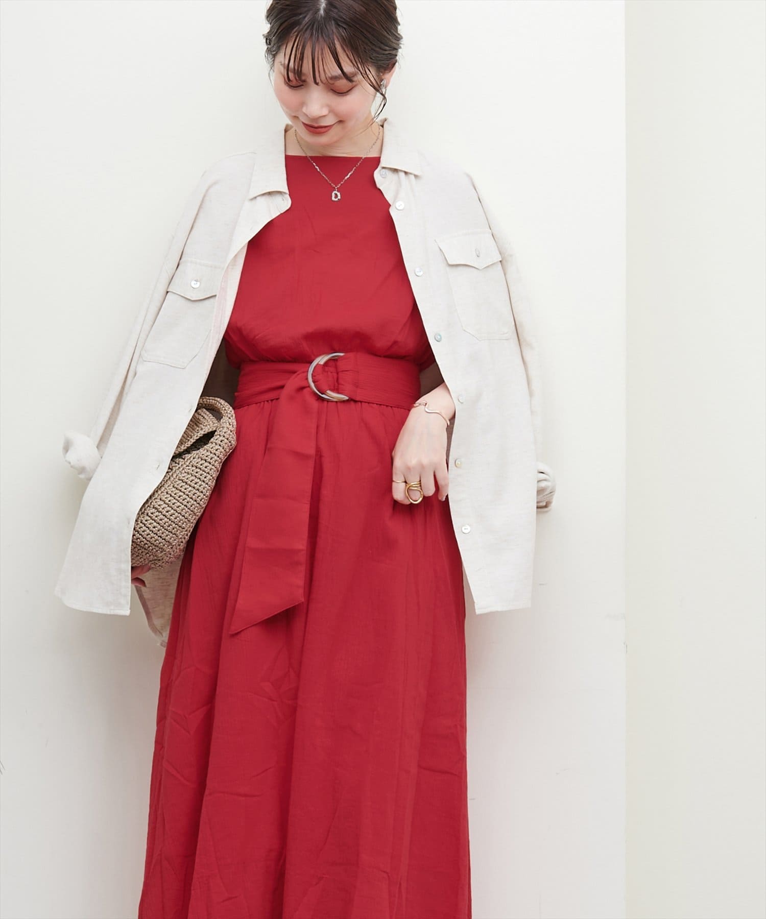 お好みで付属のベルトでウエストマークして頂くと、程良いメリハリが生まれ、スタイルアップ効果も期待できます。
