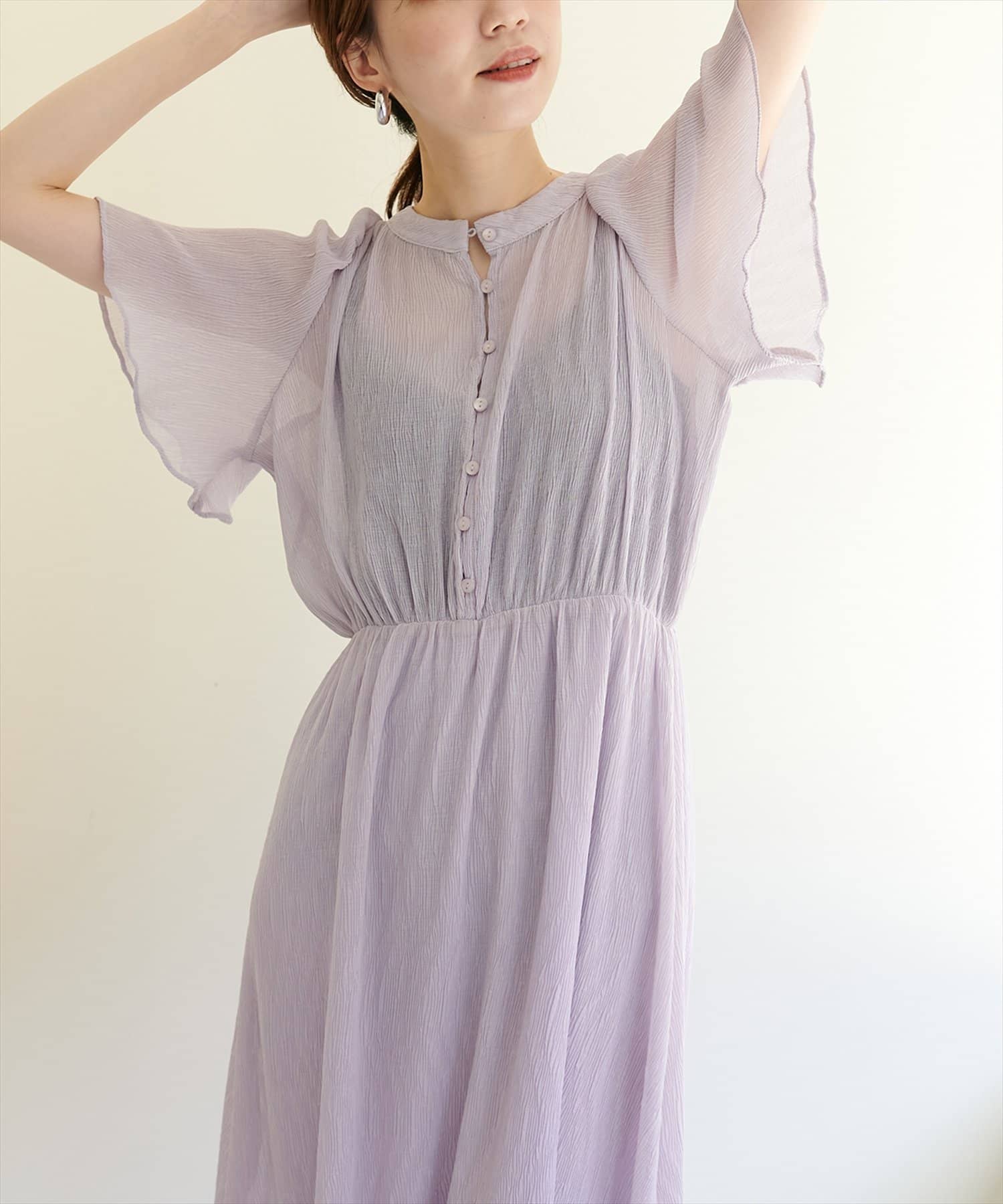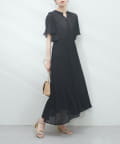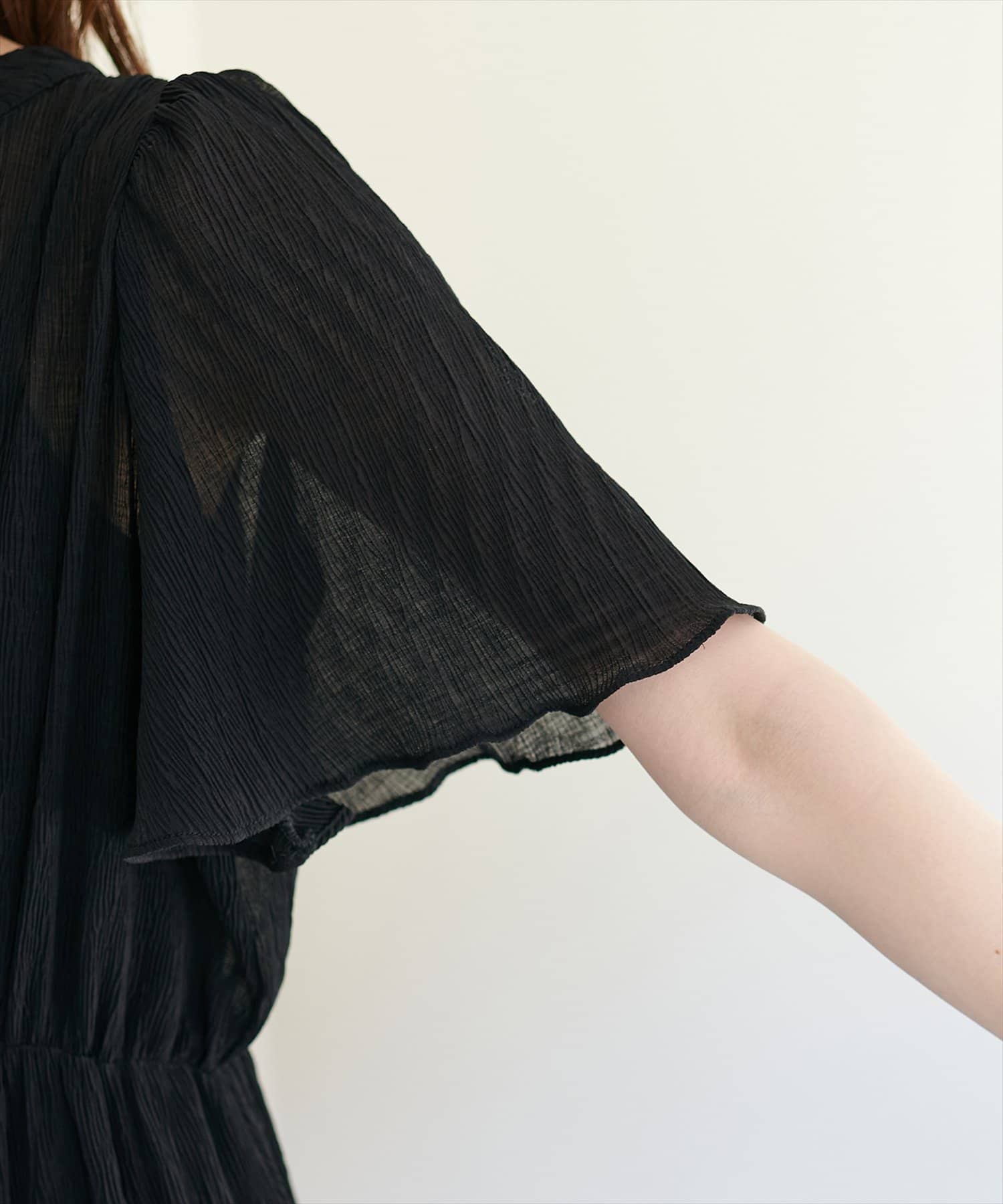 裾にかけて緩やかなフレアラインと、腕周りを華奢に見せてくれるゆとりの袖丈が魅力。