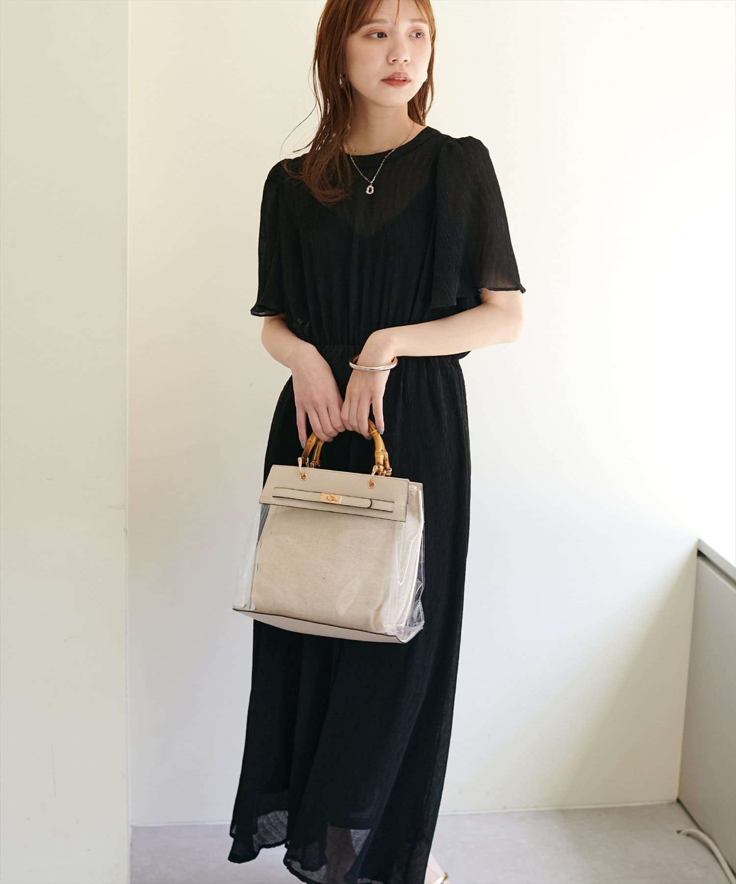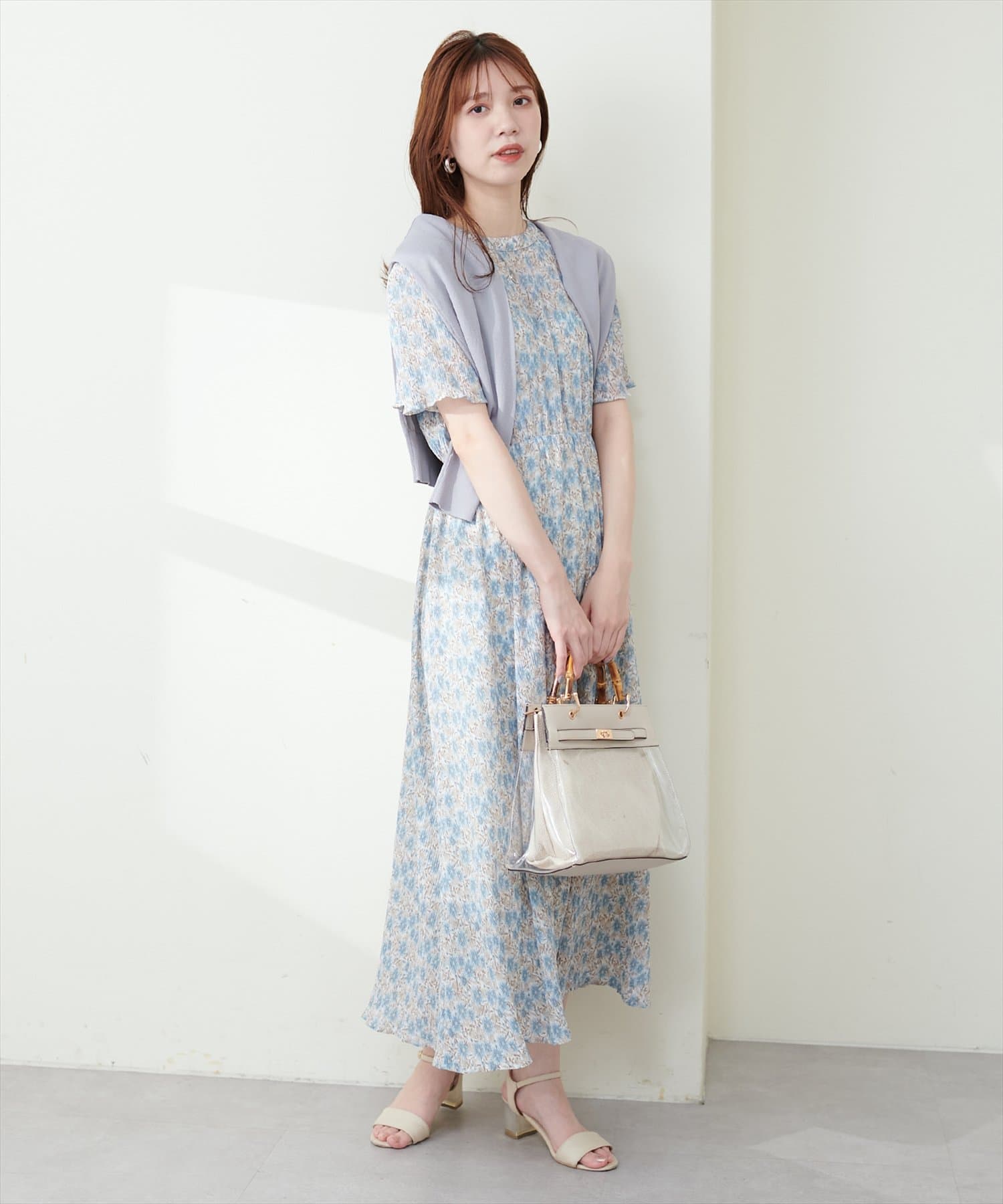 気温に応じて、シアー素材のニットカーデや、麻素材のジャケットなどを羽織って頂いても◎