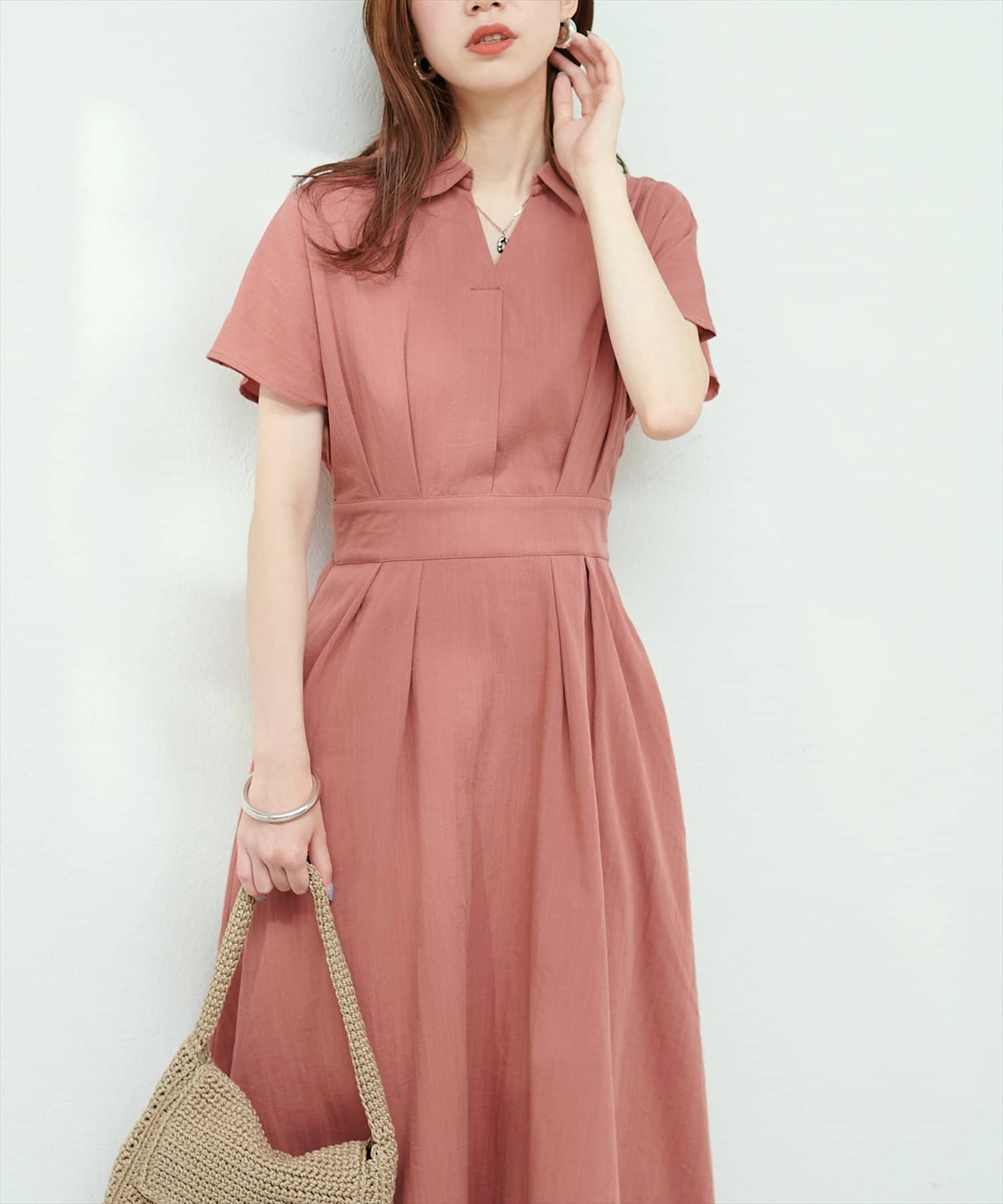 新色追加 / 涼しげスキッパー衿お上品ワンピース