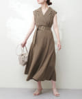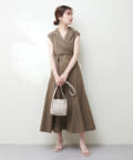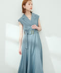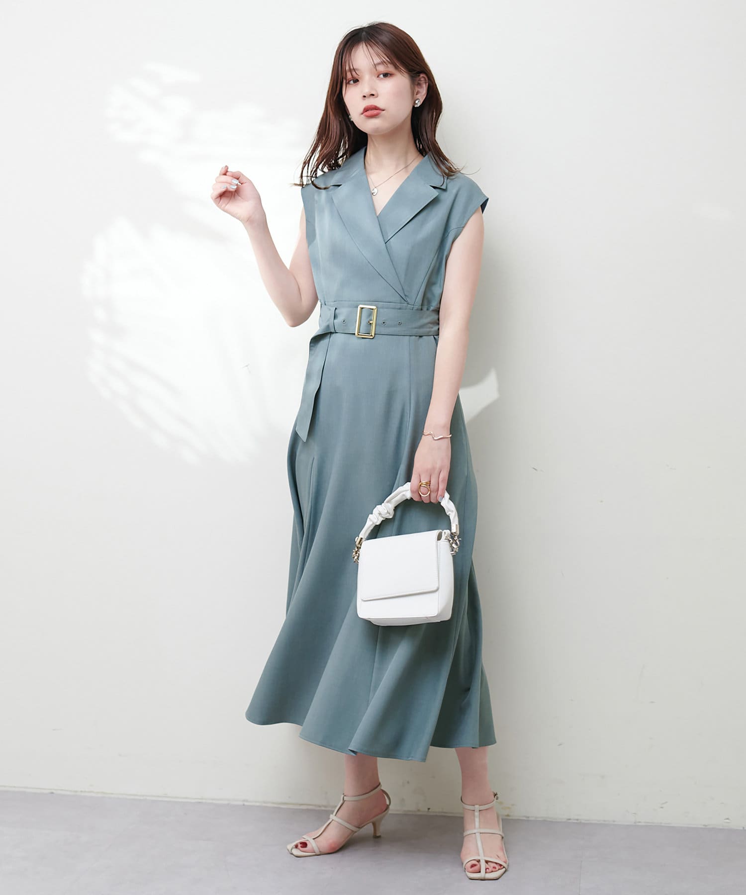 まるでテーラードジャケットのようなオープンカラーが大人の余裕を漂わせるレディワンピース。