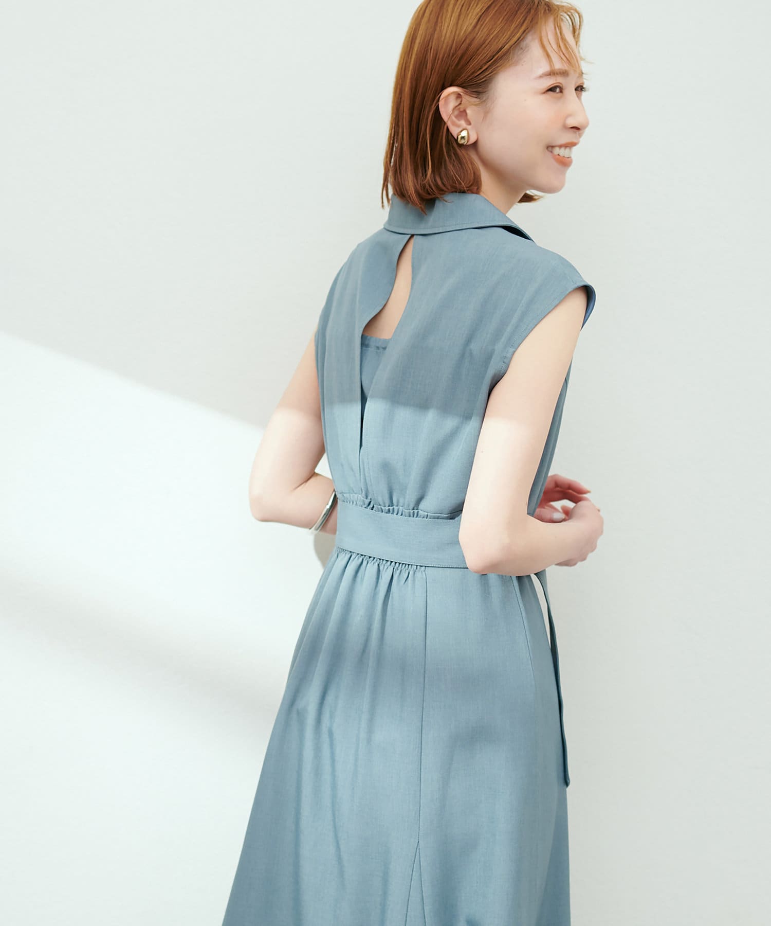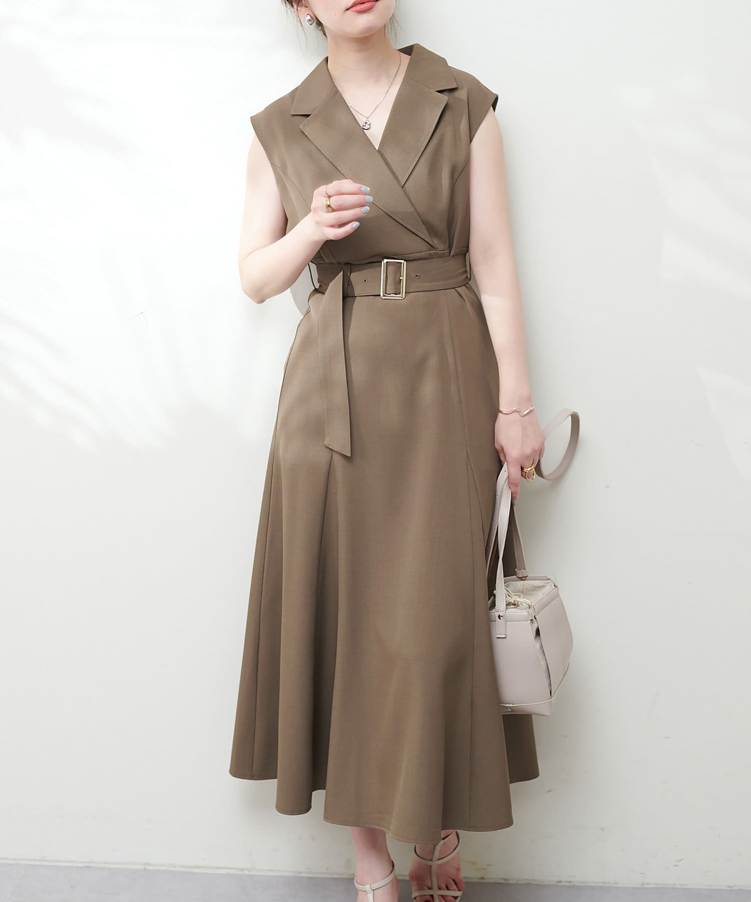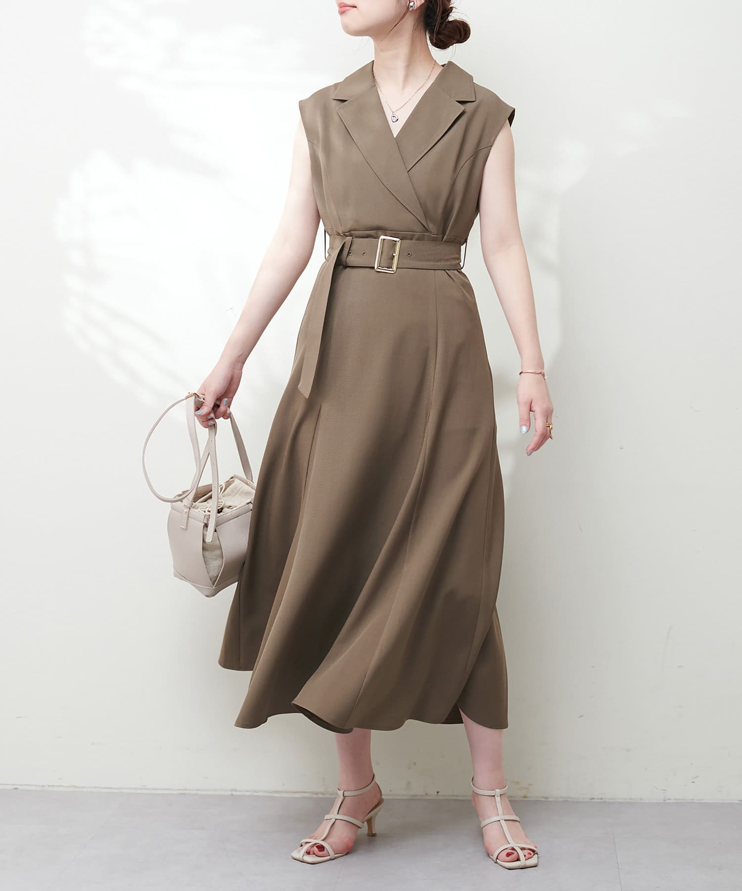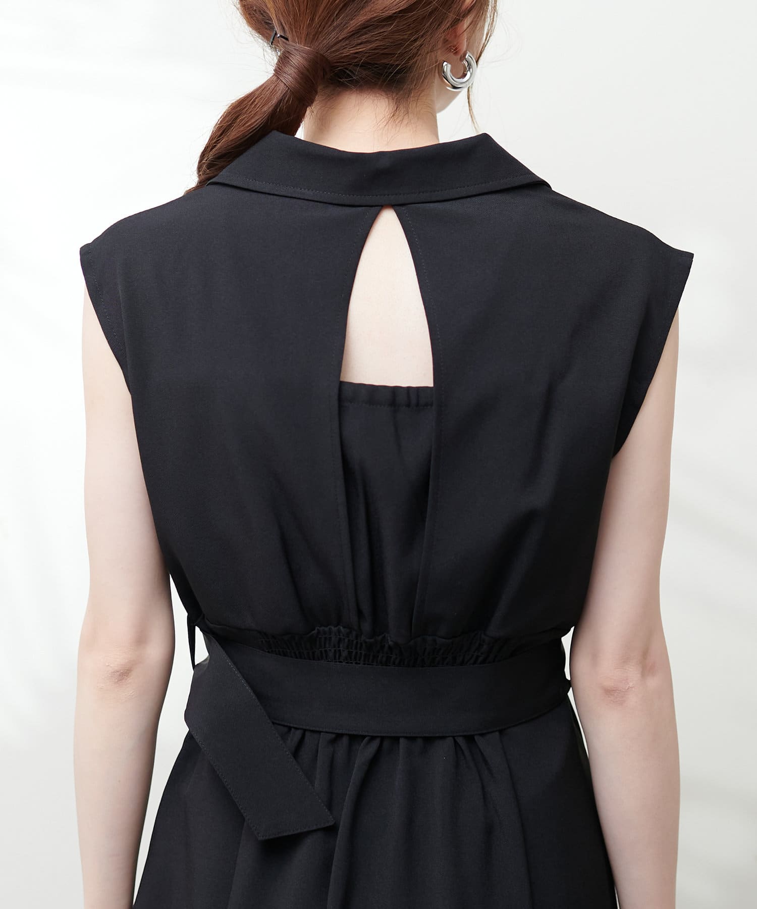WEB限定カラーあり / テーラードカラーノースリワンピース