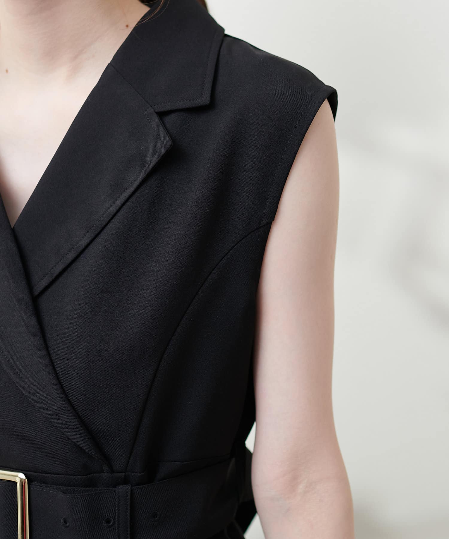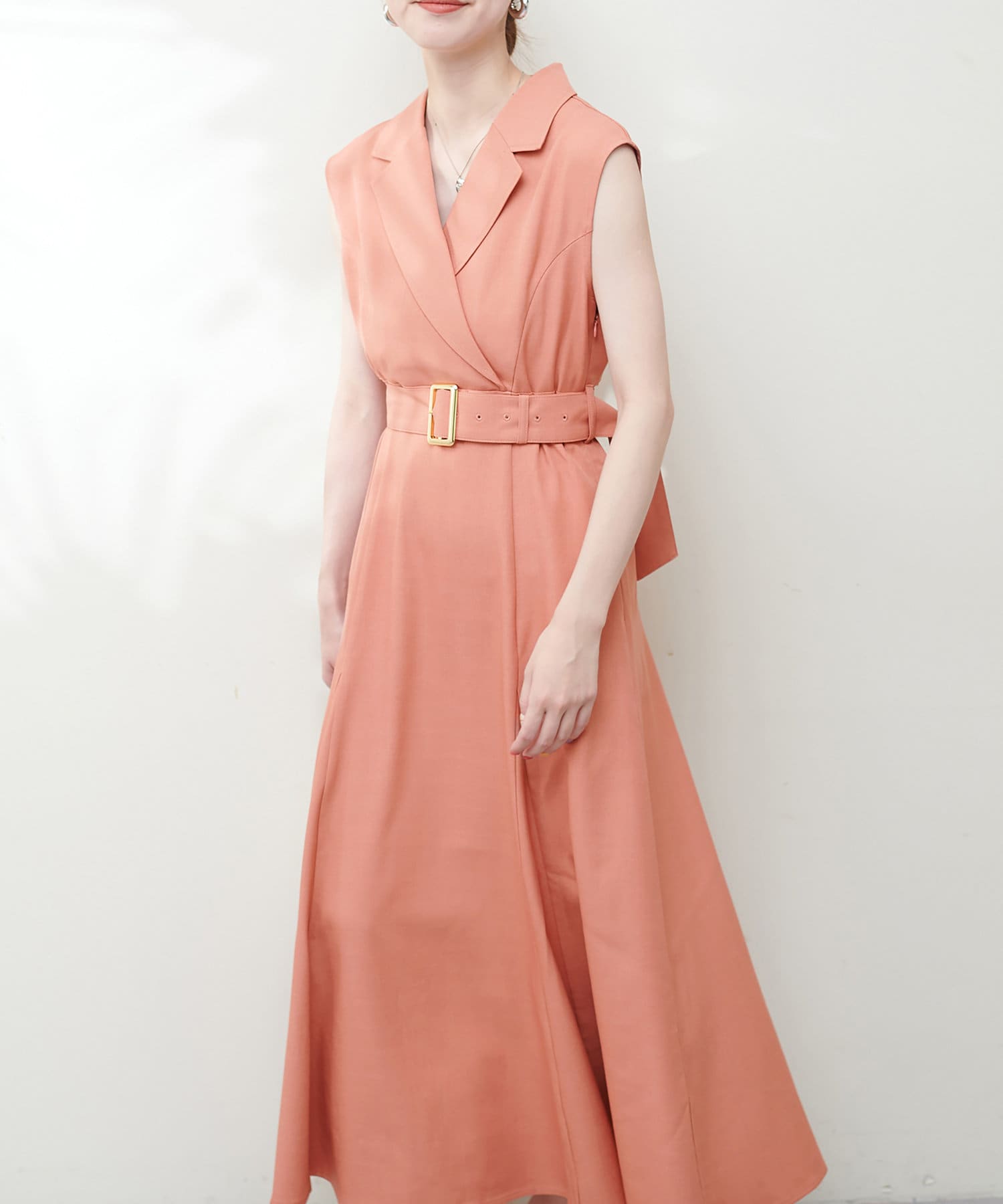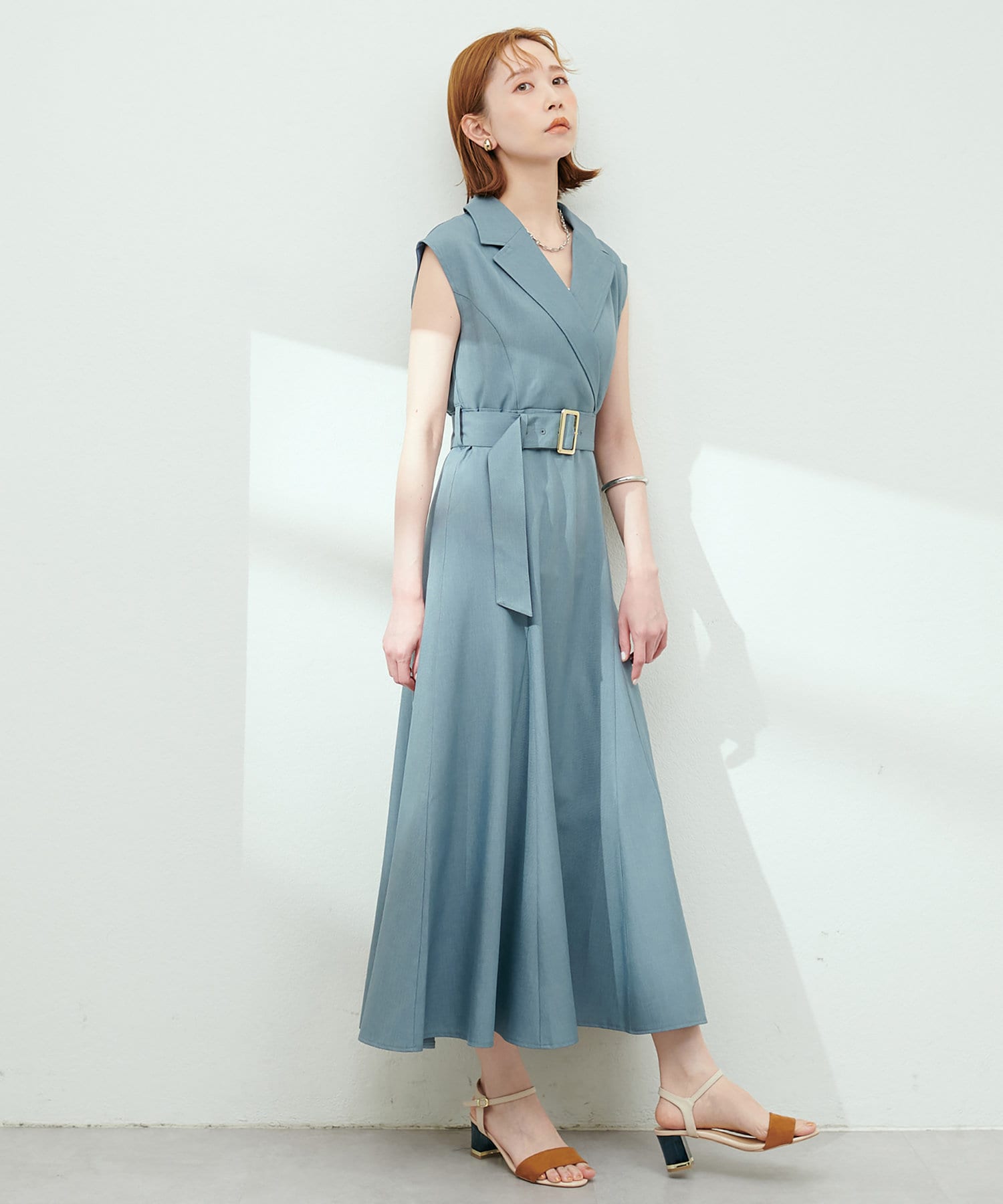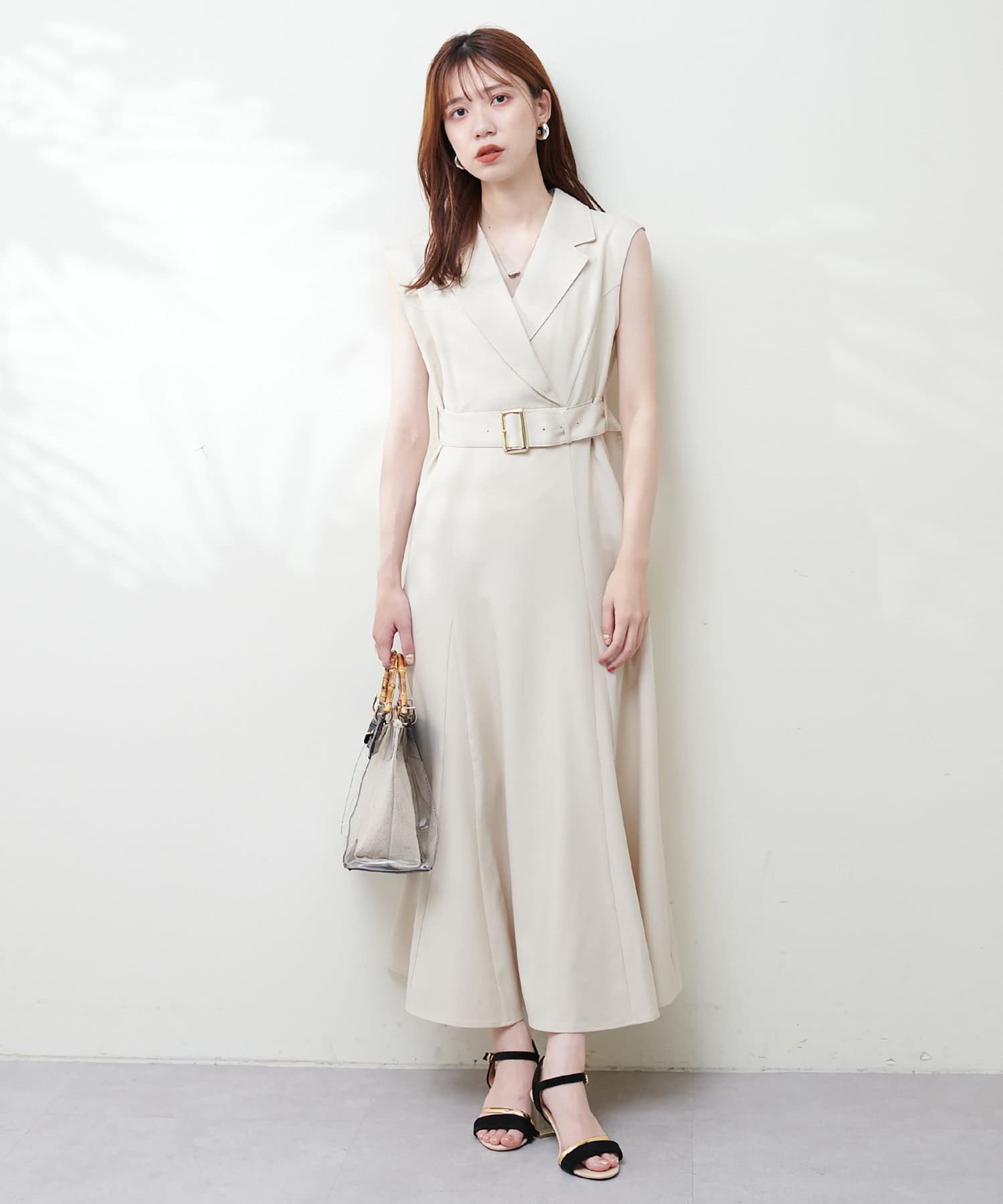 WEB限定カラーあり / テーラードカラーノースリワンピース