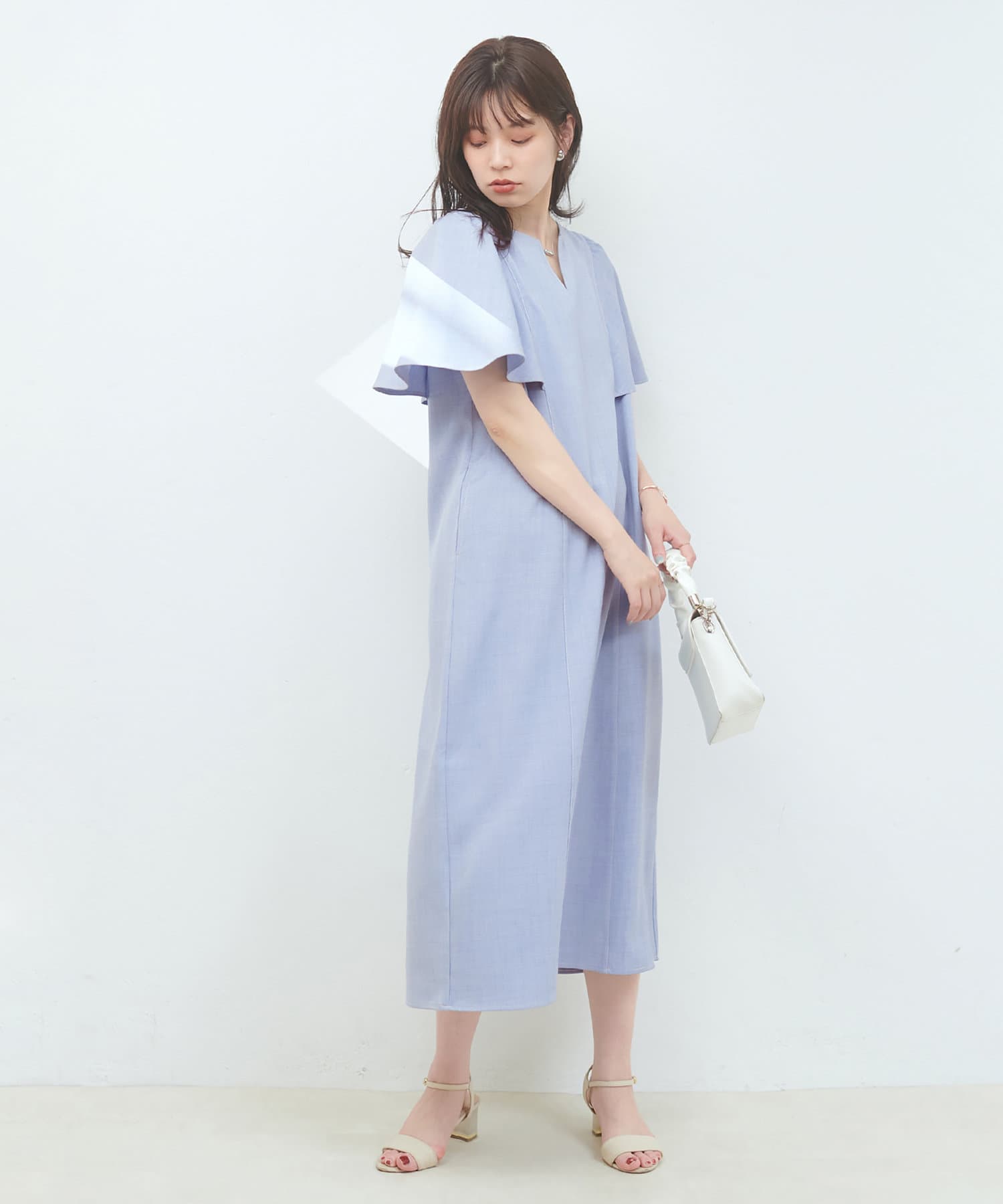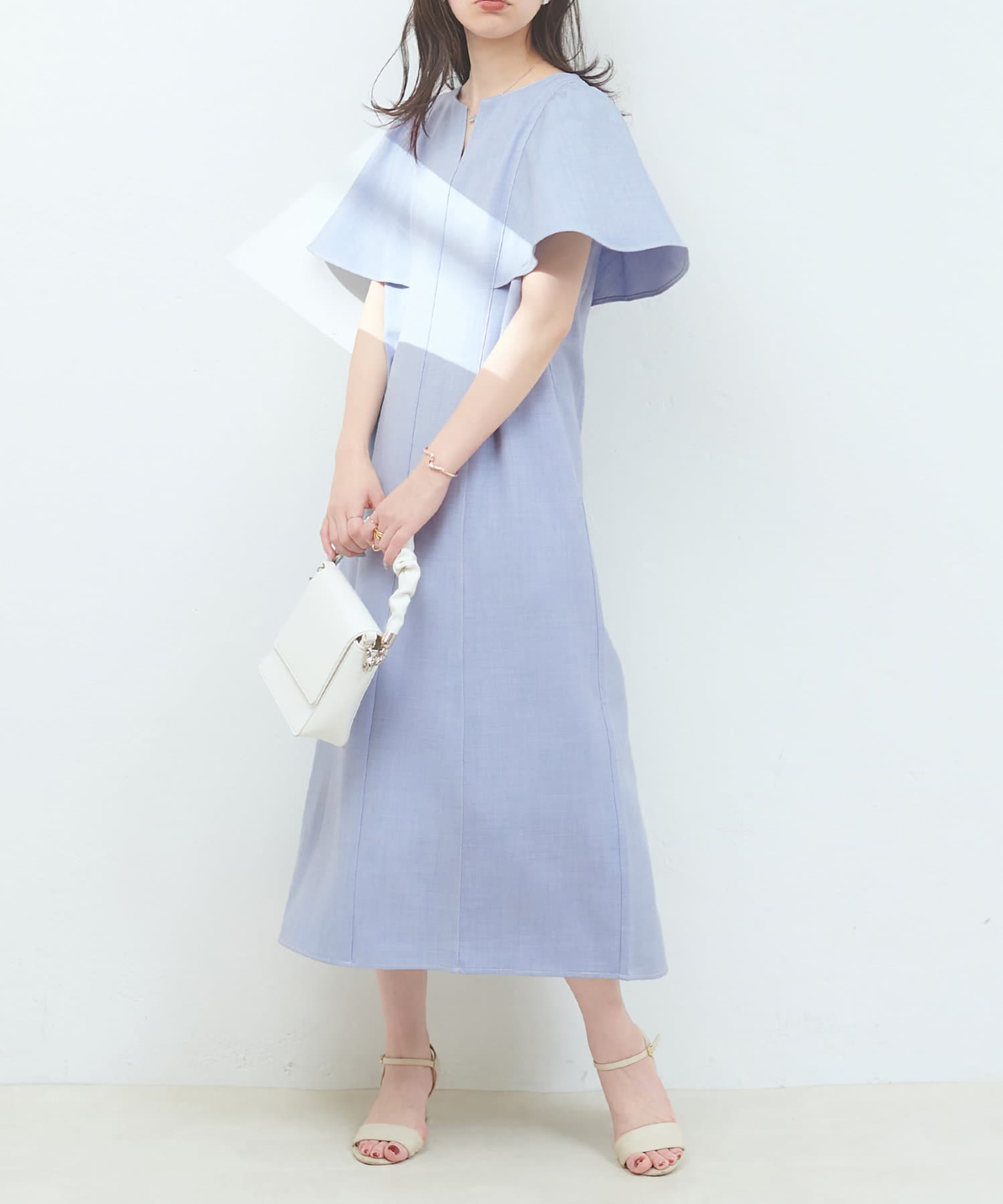 お袖のふわっとしたケープ感が可愛いワンピース。