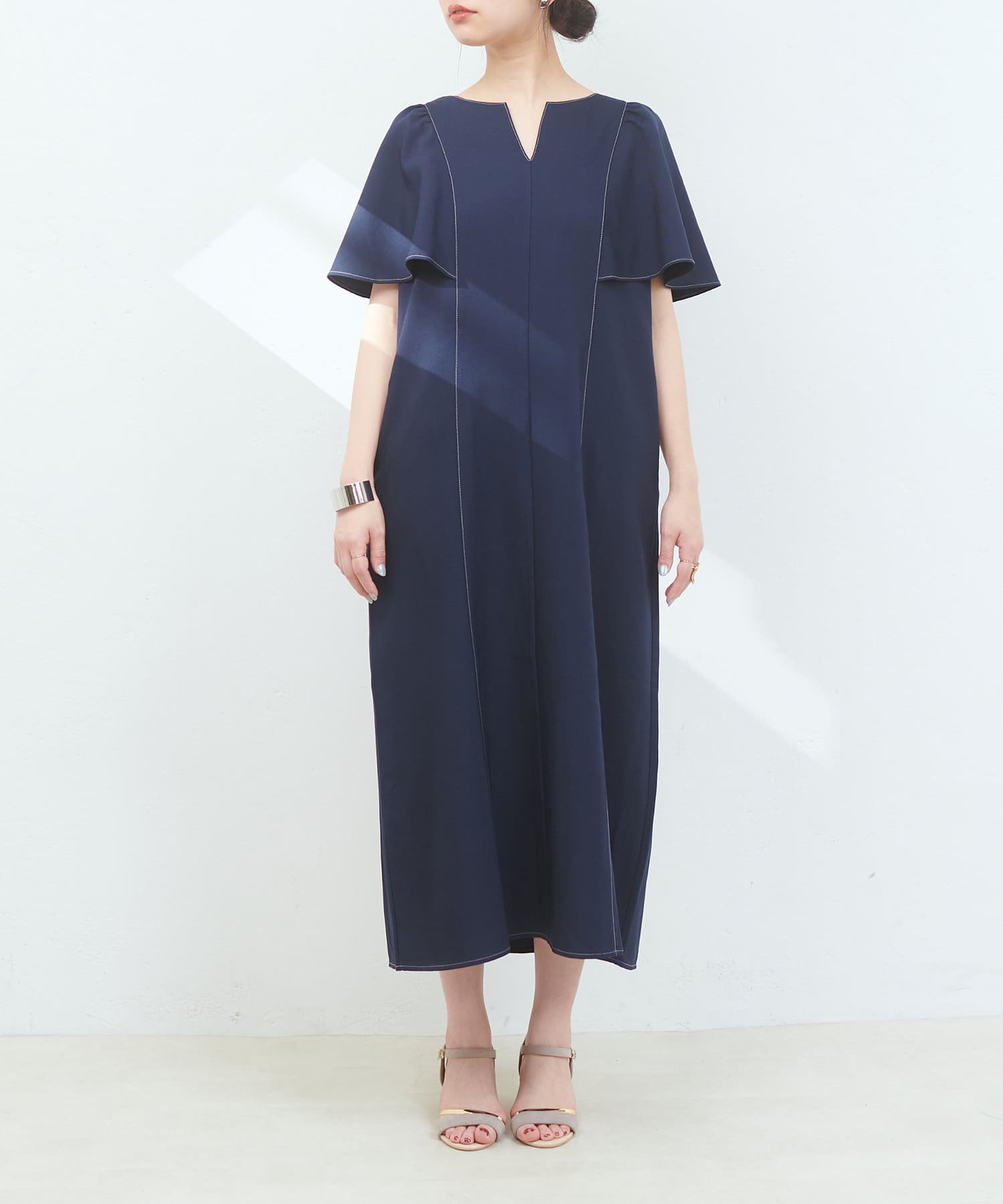 WEB限定アイテム / ケープフレアキーネックワンピース