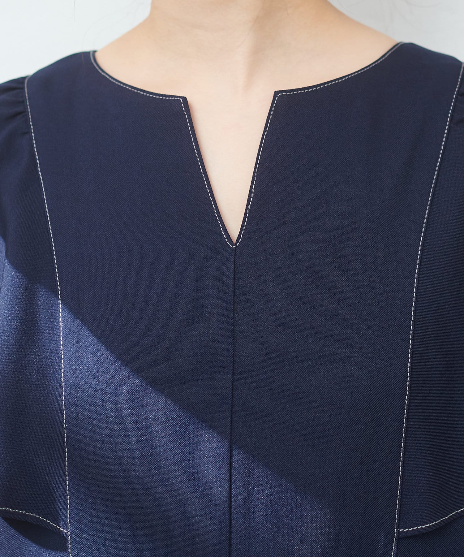 身頃は裾にかけてストンと落ちた形で、内側に縦ラインの切替とステッチが入っているので、縦ラインのきれいなシルエットに。