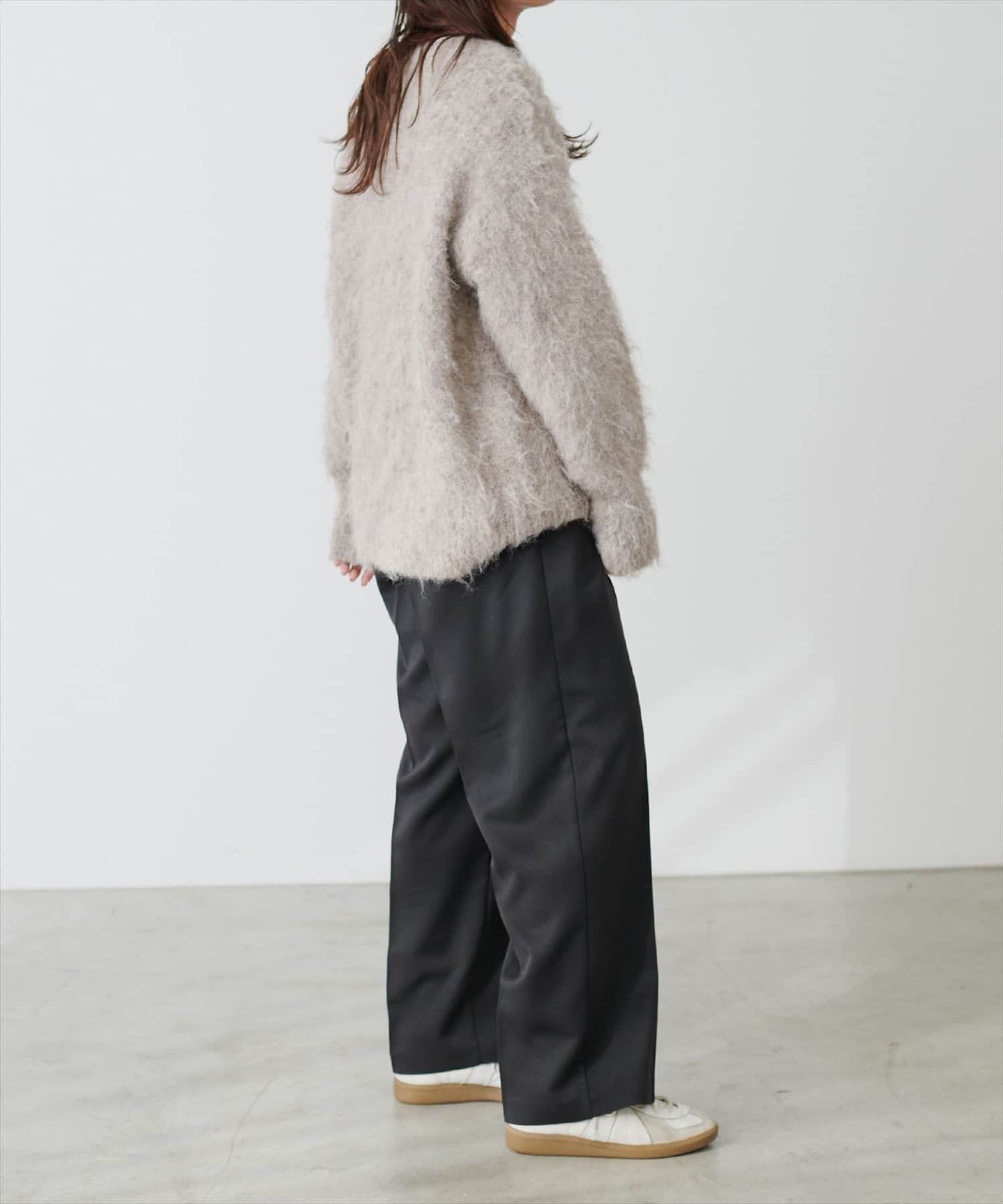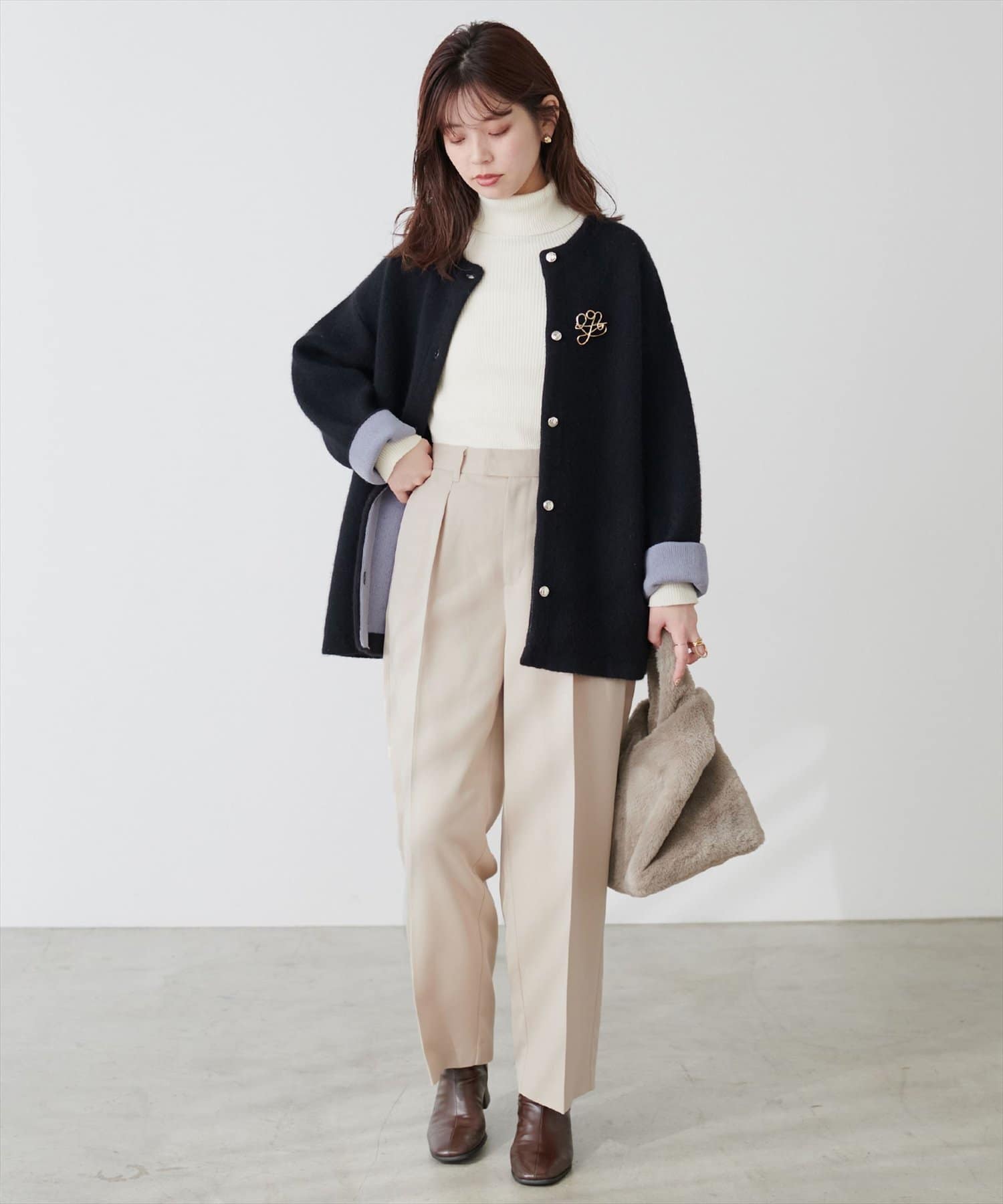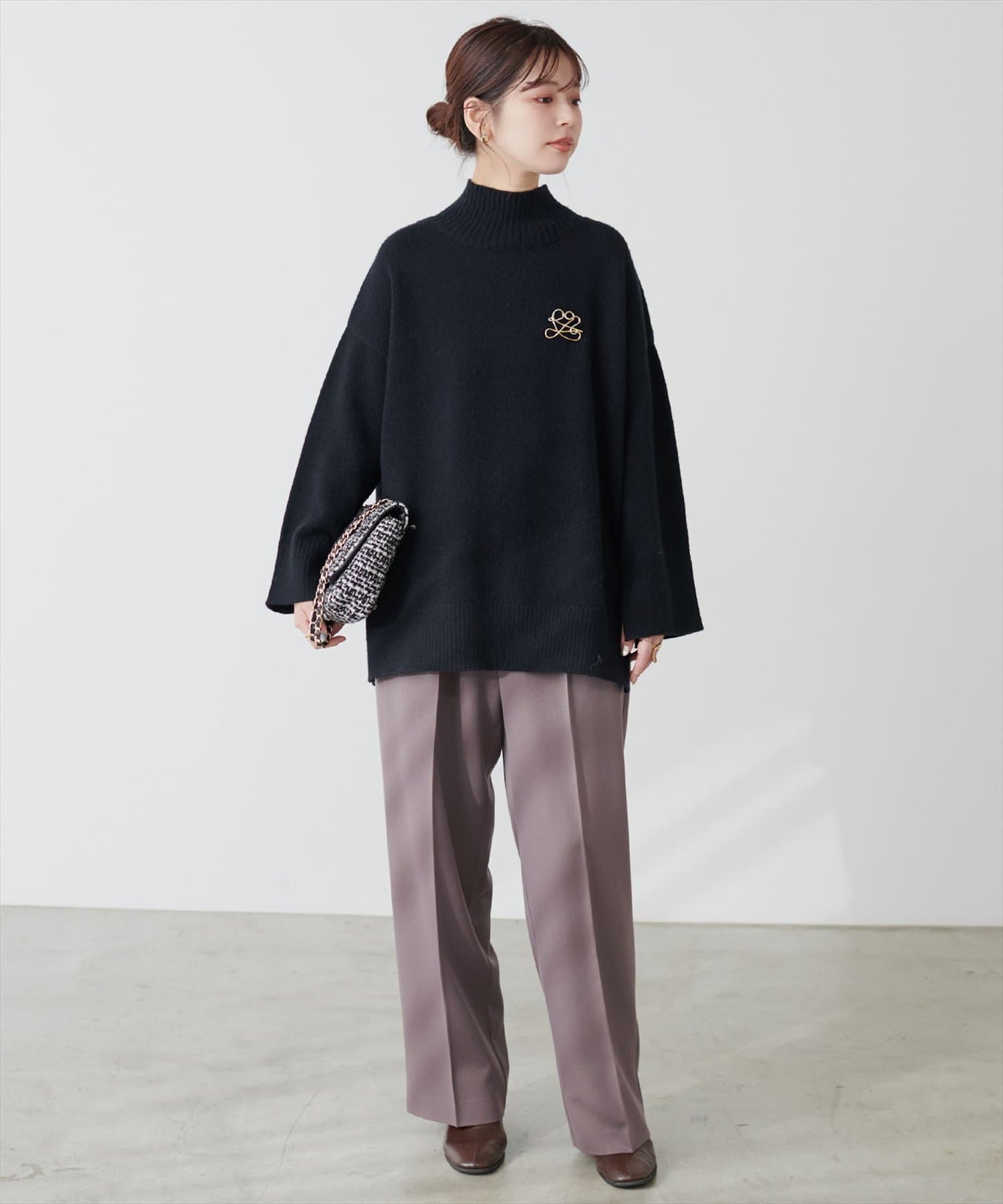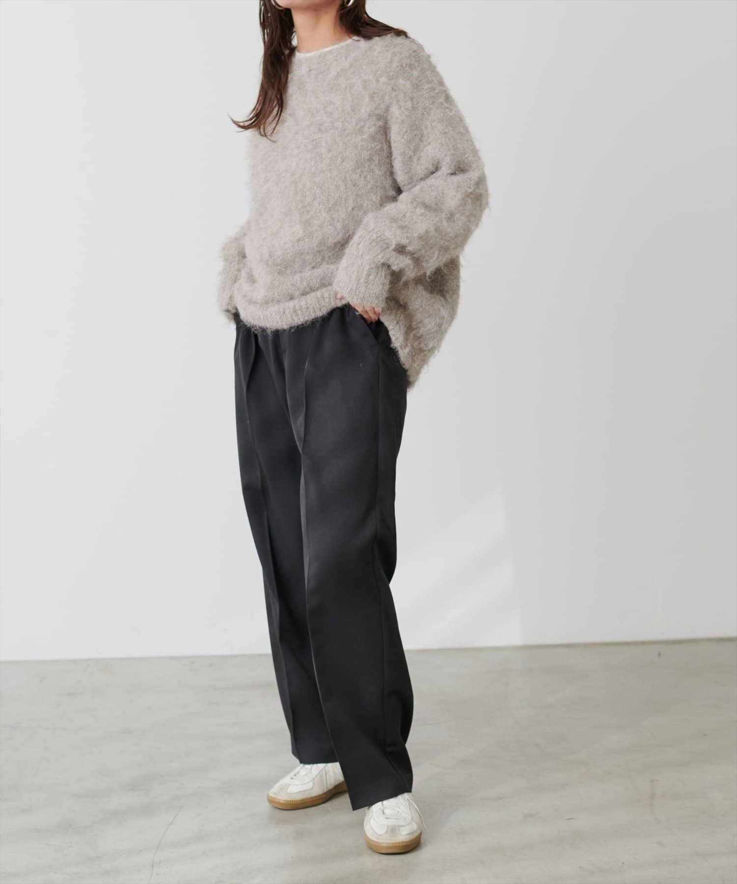 秋冬はボリュームあるニットでざっくり合わせるのもおすすめです。