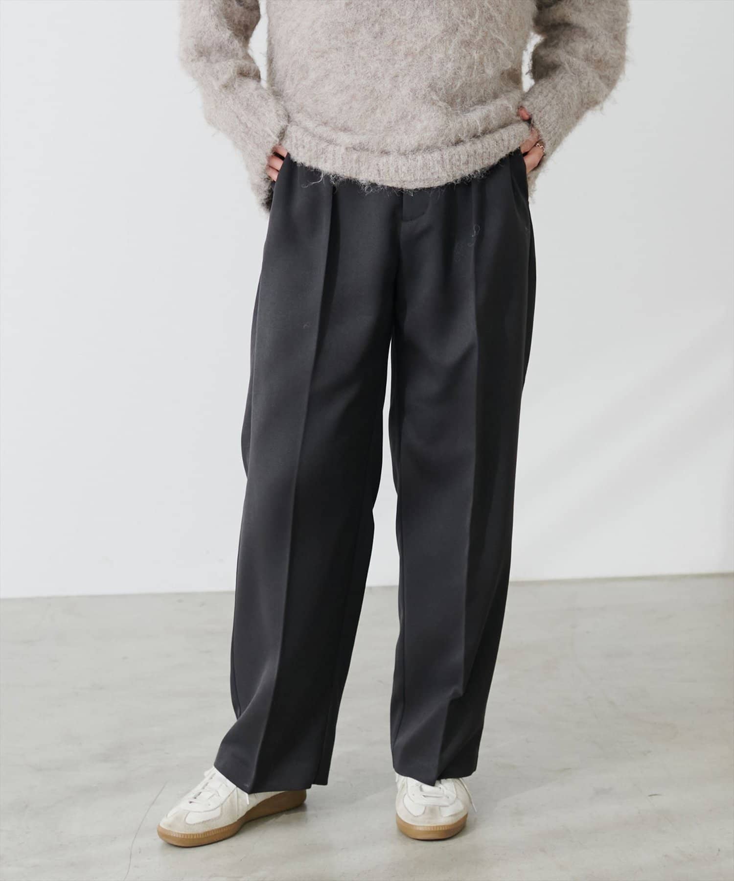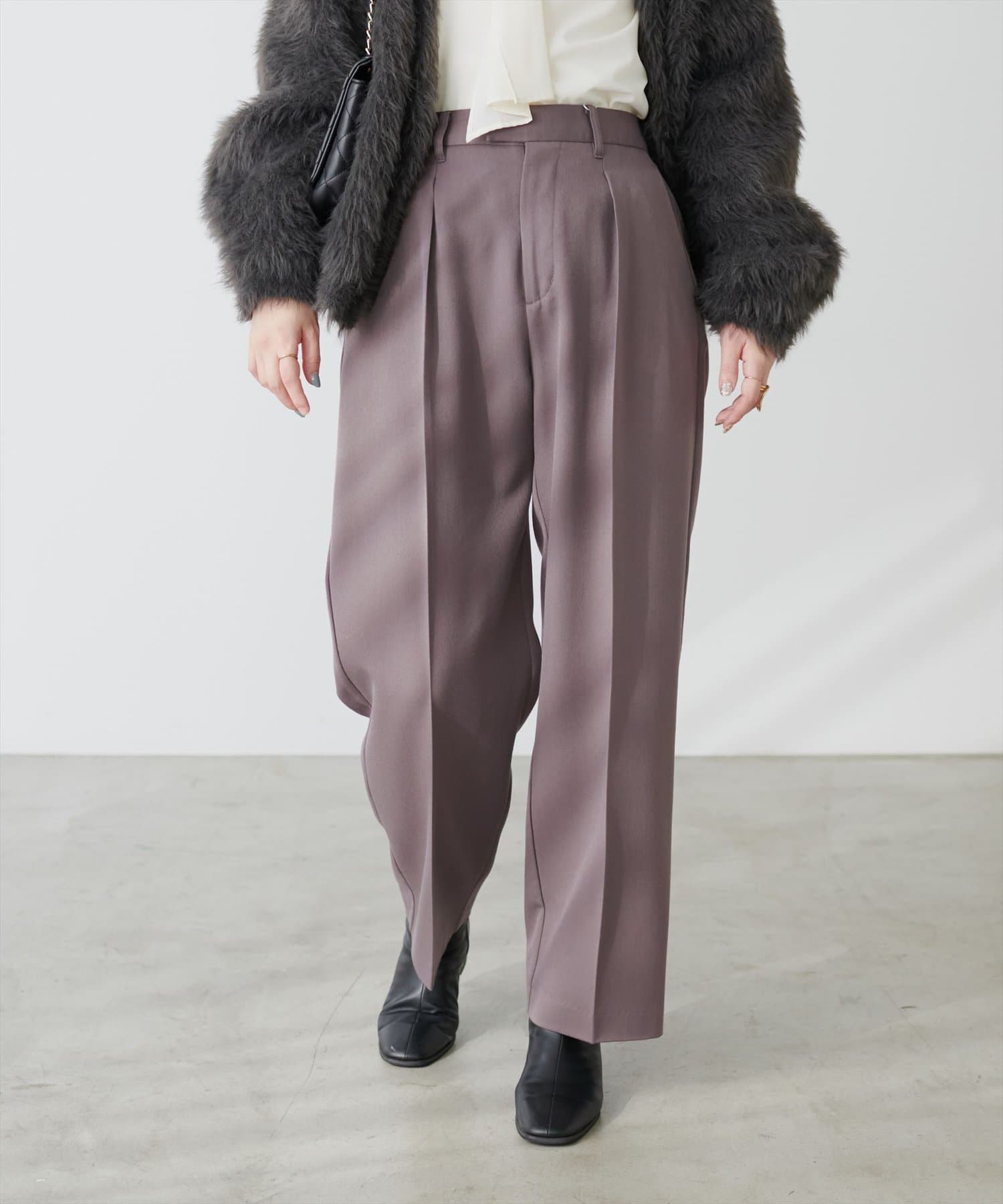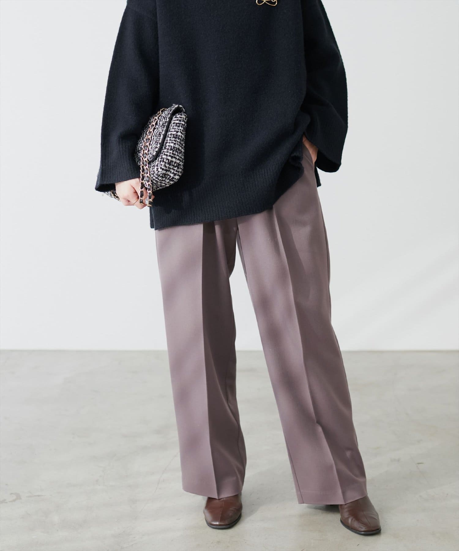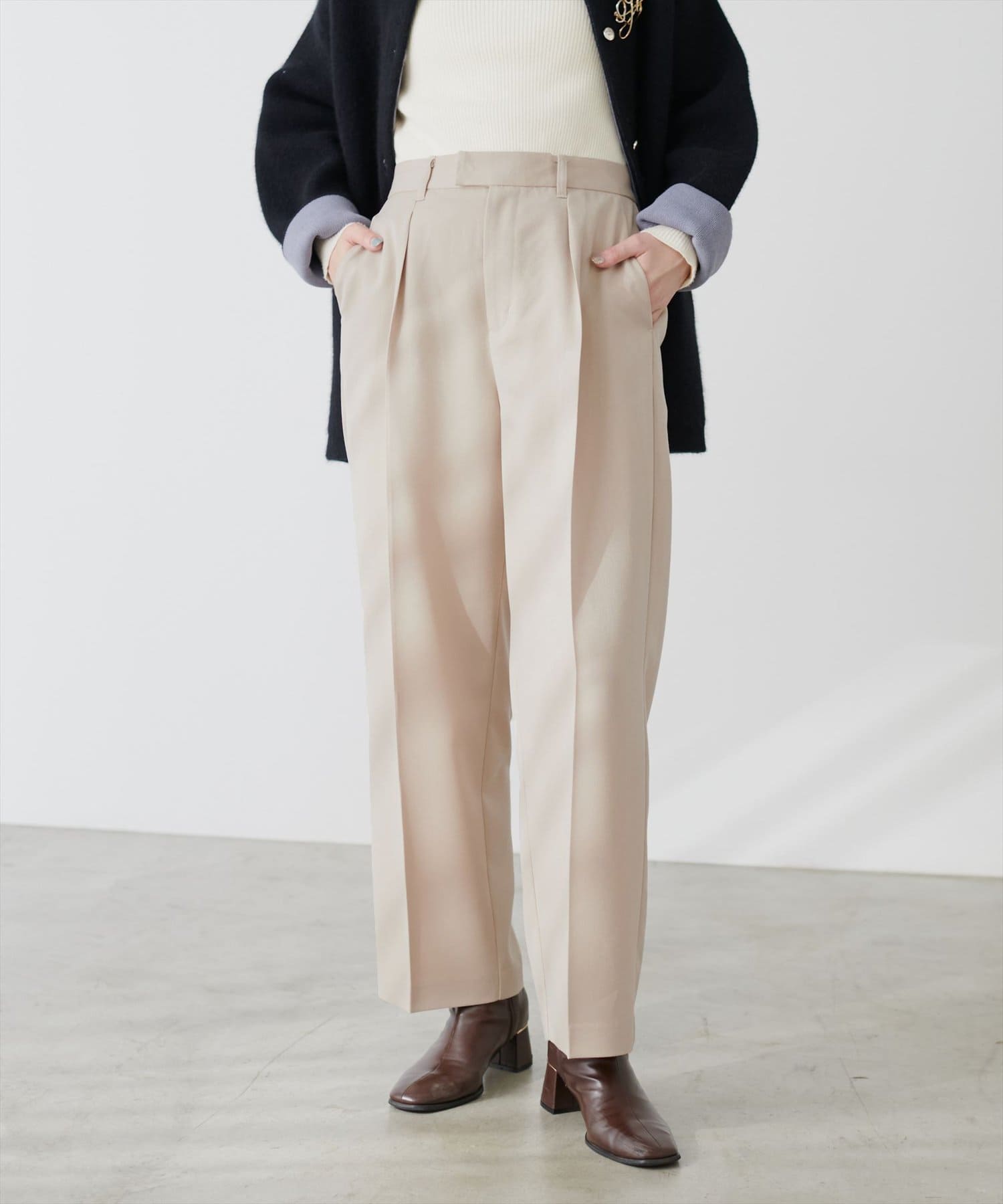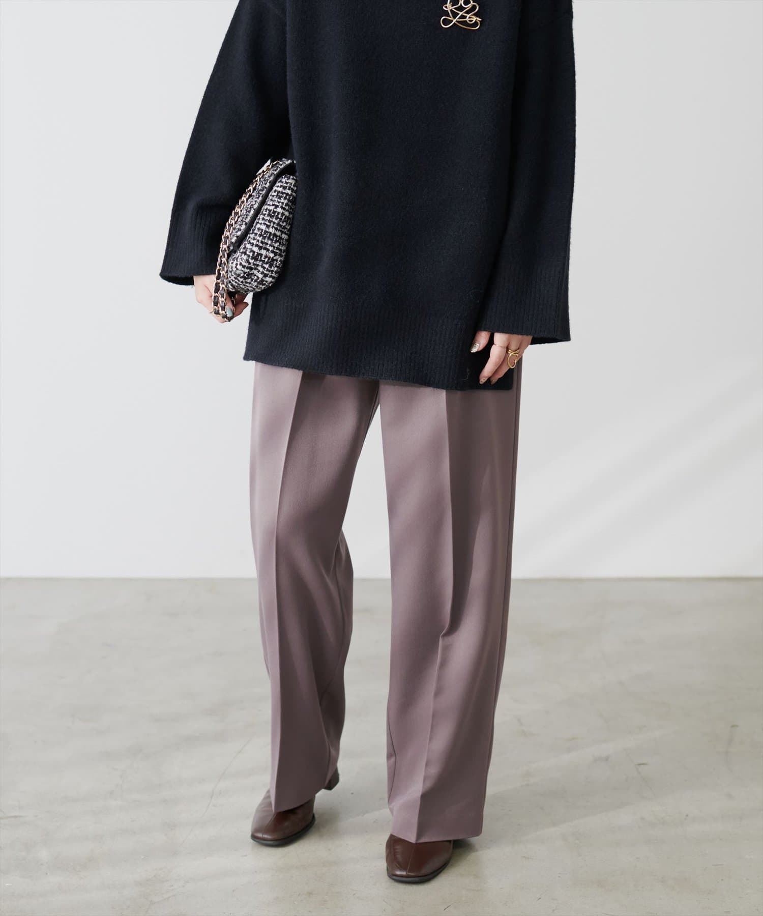 カジュアルなスタイリングにハマるセンタープレス入りの 太めのストレートパンツ。