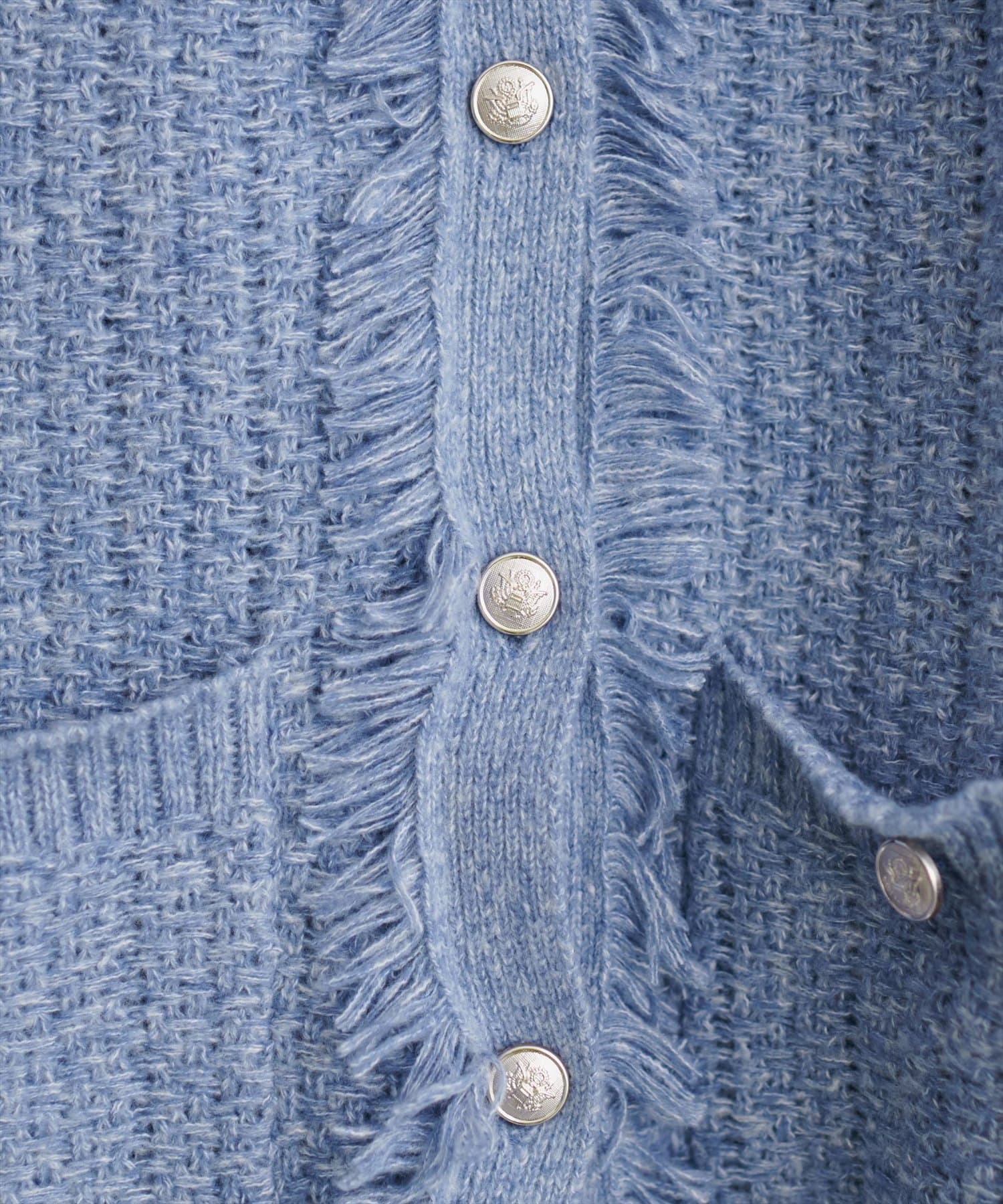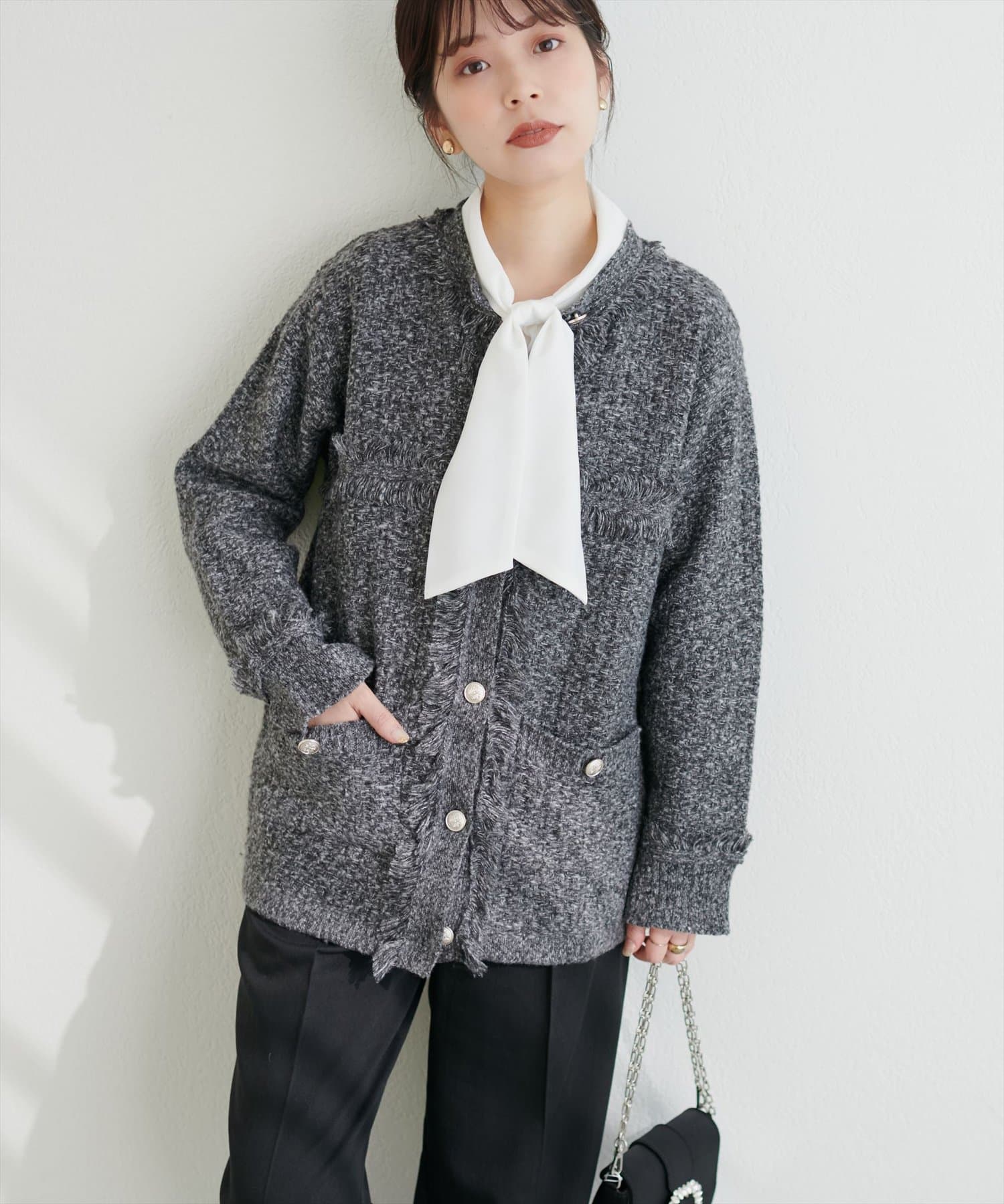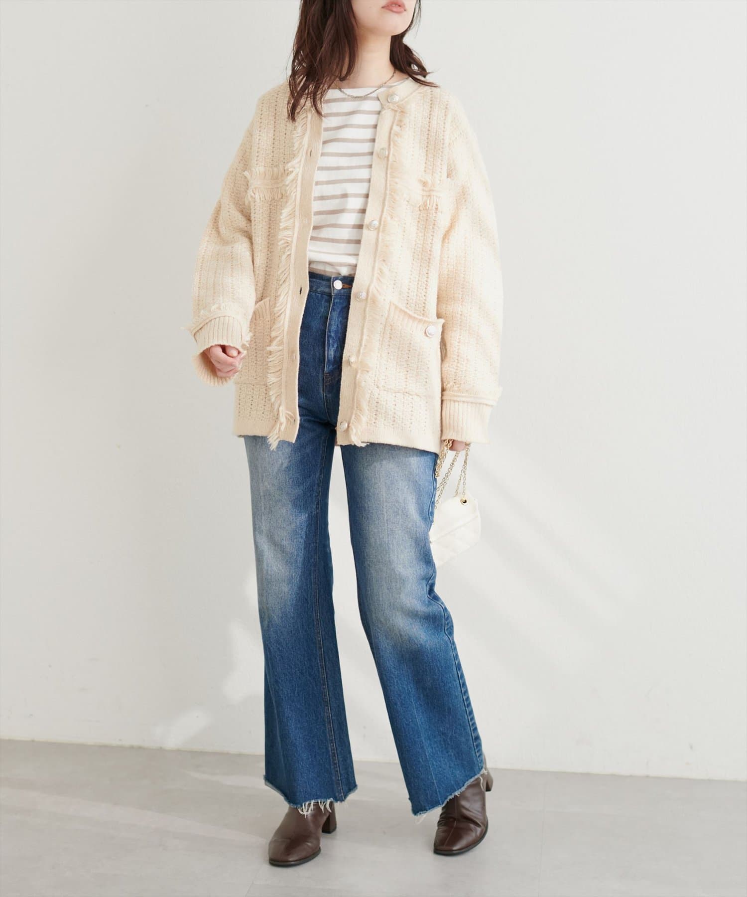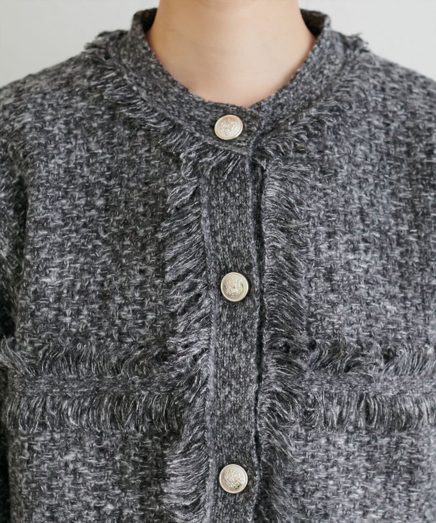 贅沢なフリンジとぎゅっとつまった編地が可愛いカーディガン。