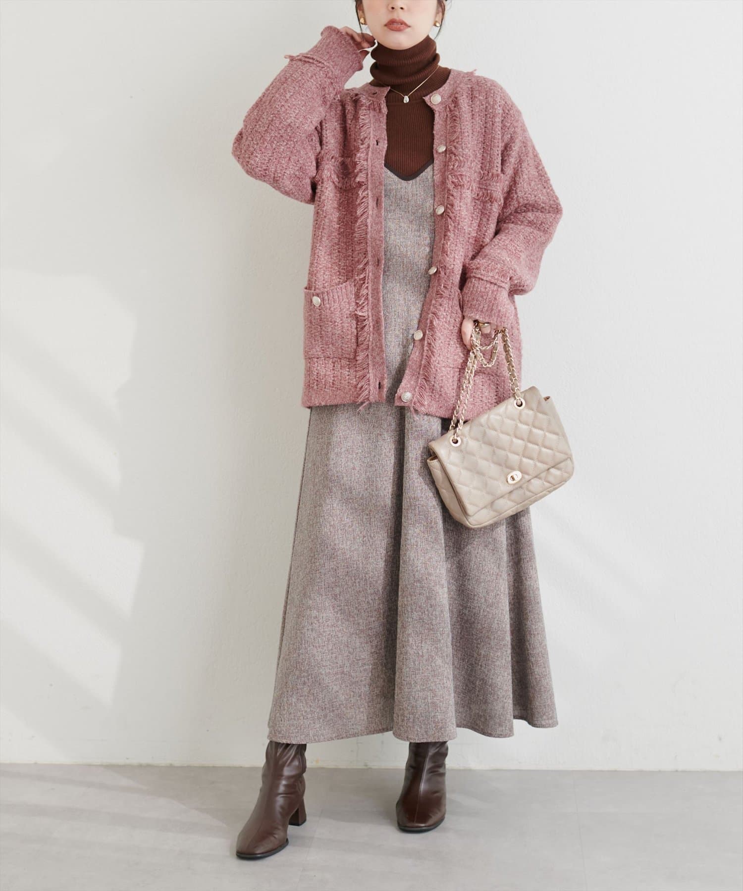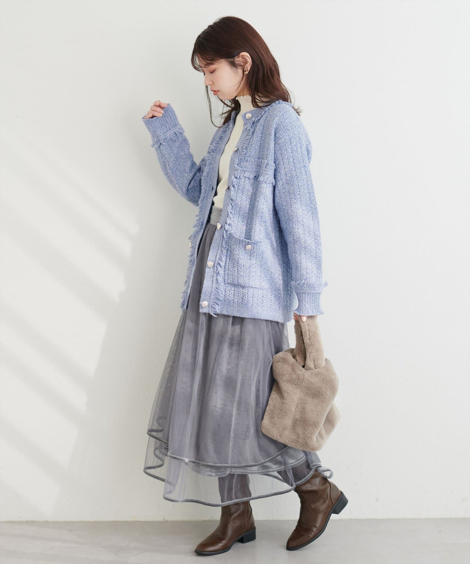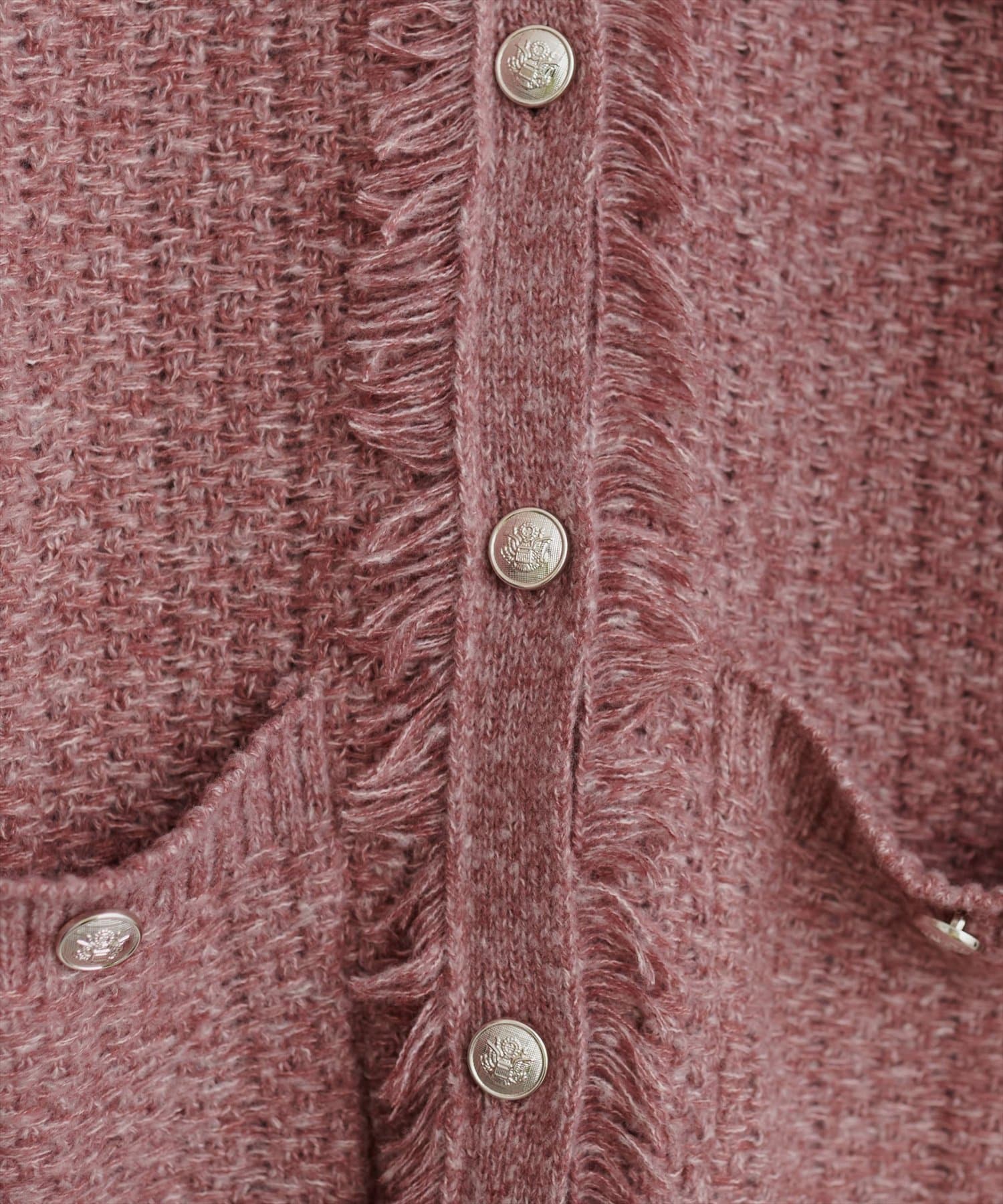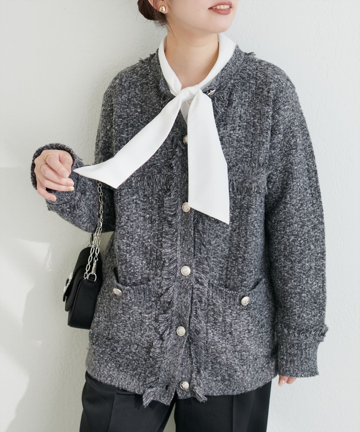 贅沢なフリンジとぎゅっとつまった編地が可愛いカーディガン。