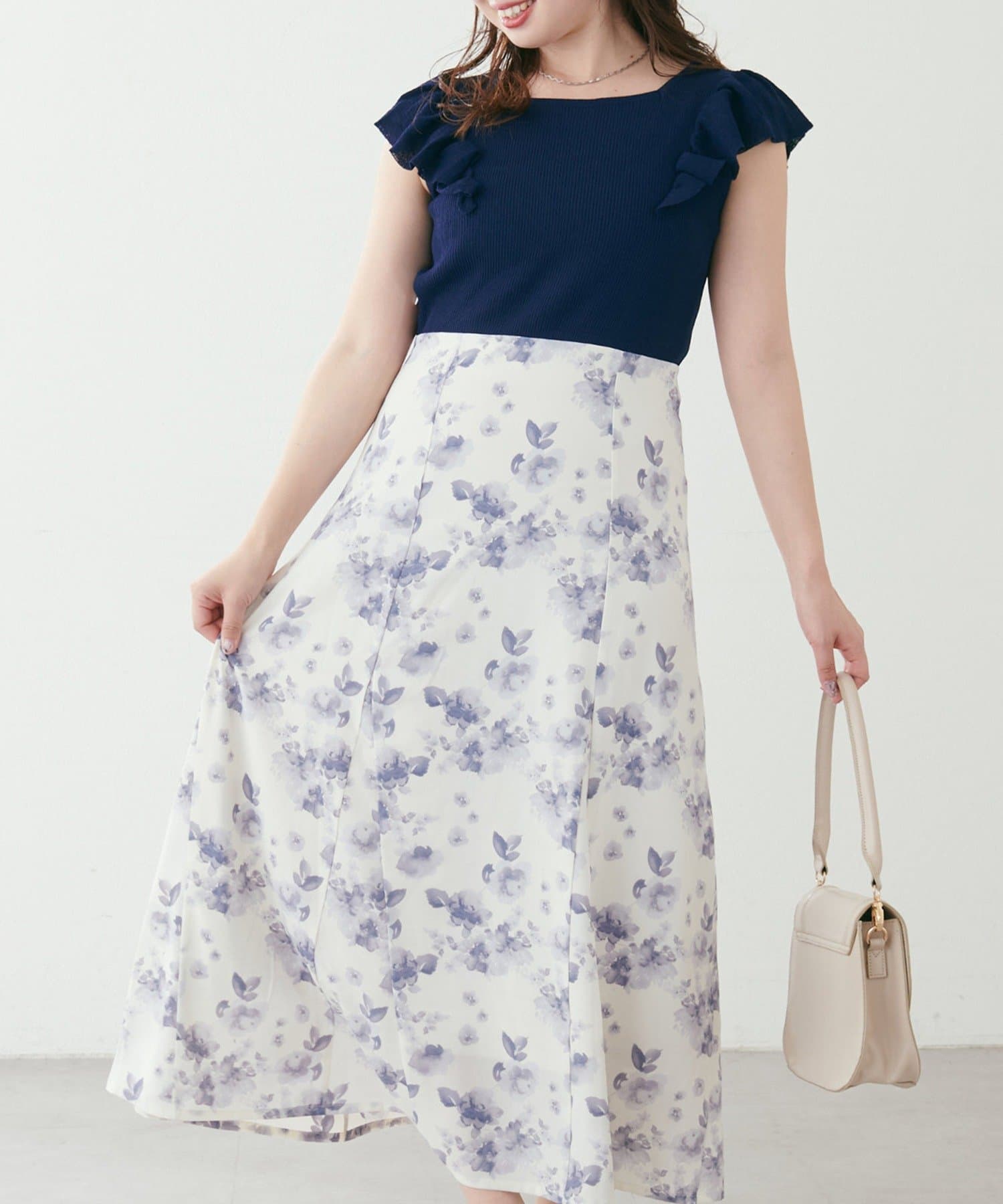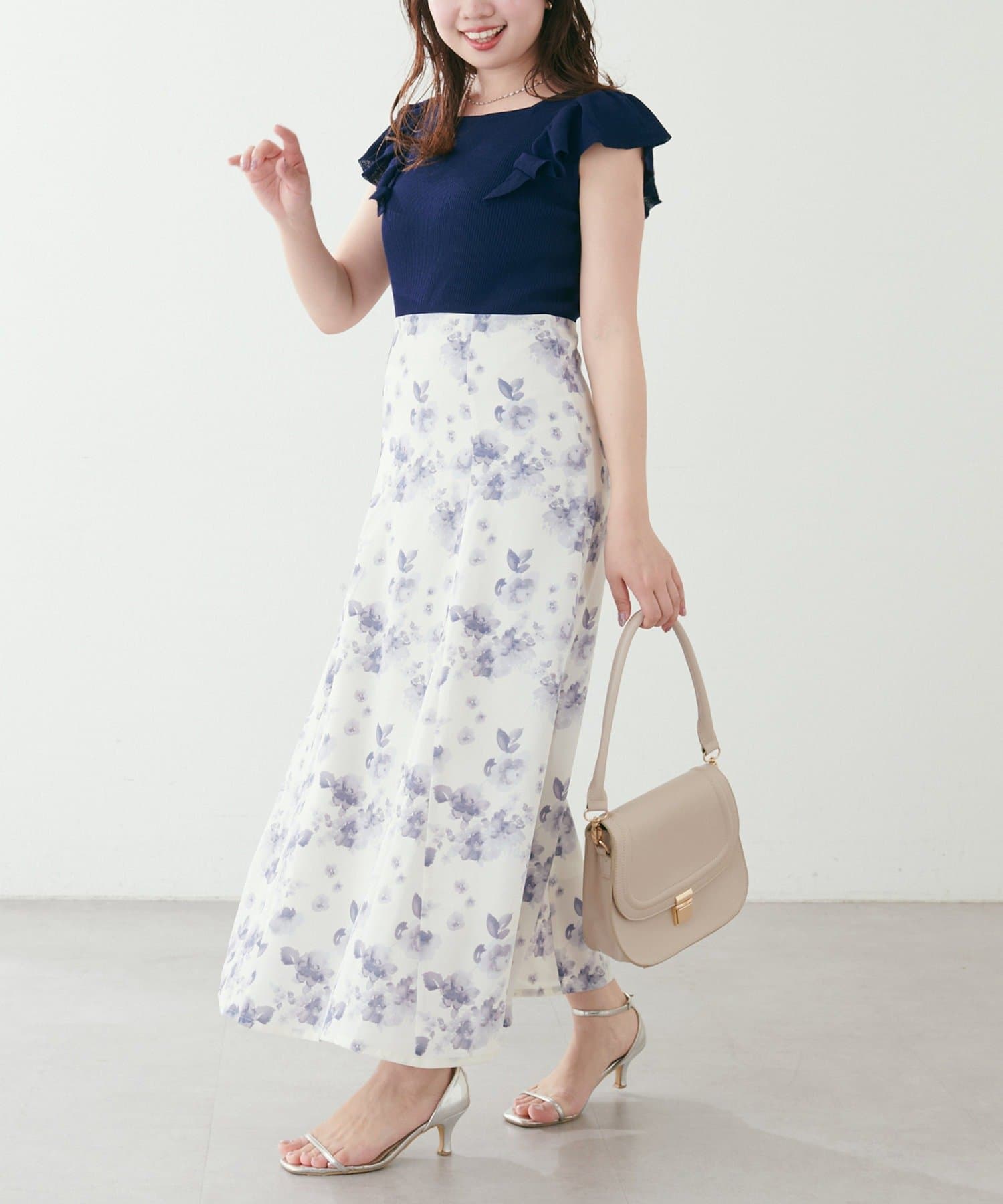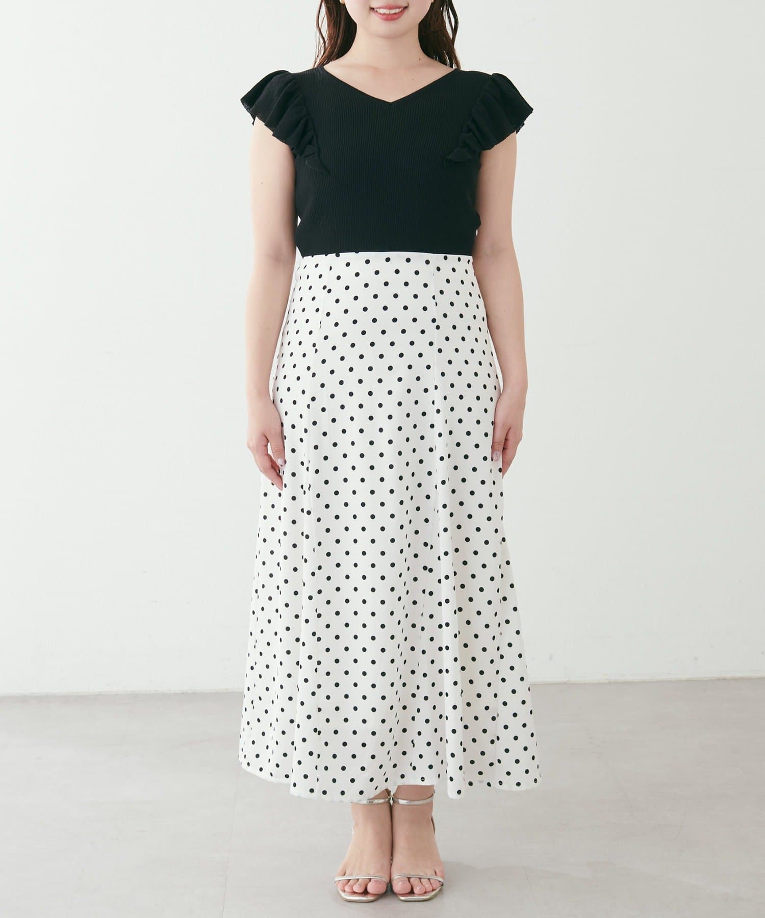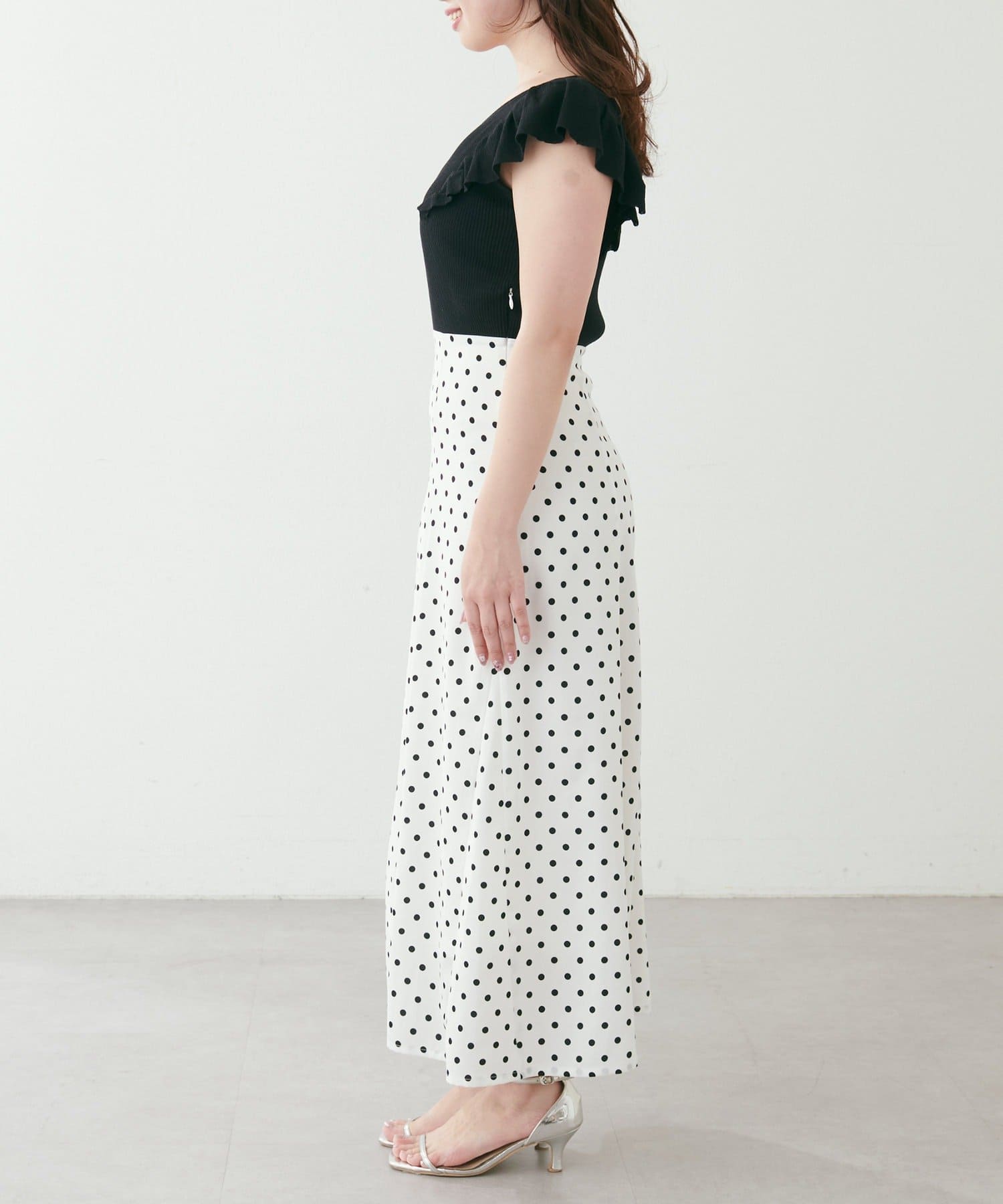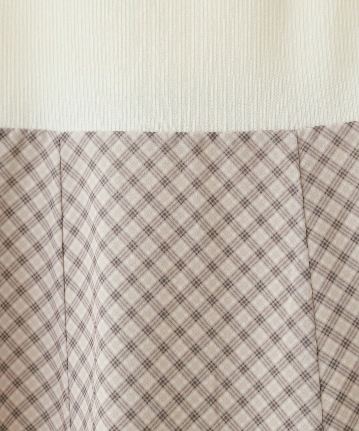 生地感:ニット部分/さらっと、しゃりっとした細いリブニット生地・スカート部分/落ち感のあるさらっとした生地感