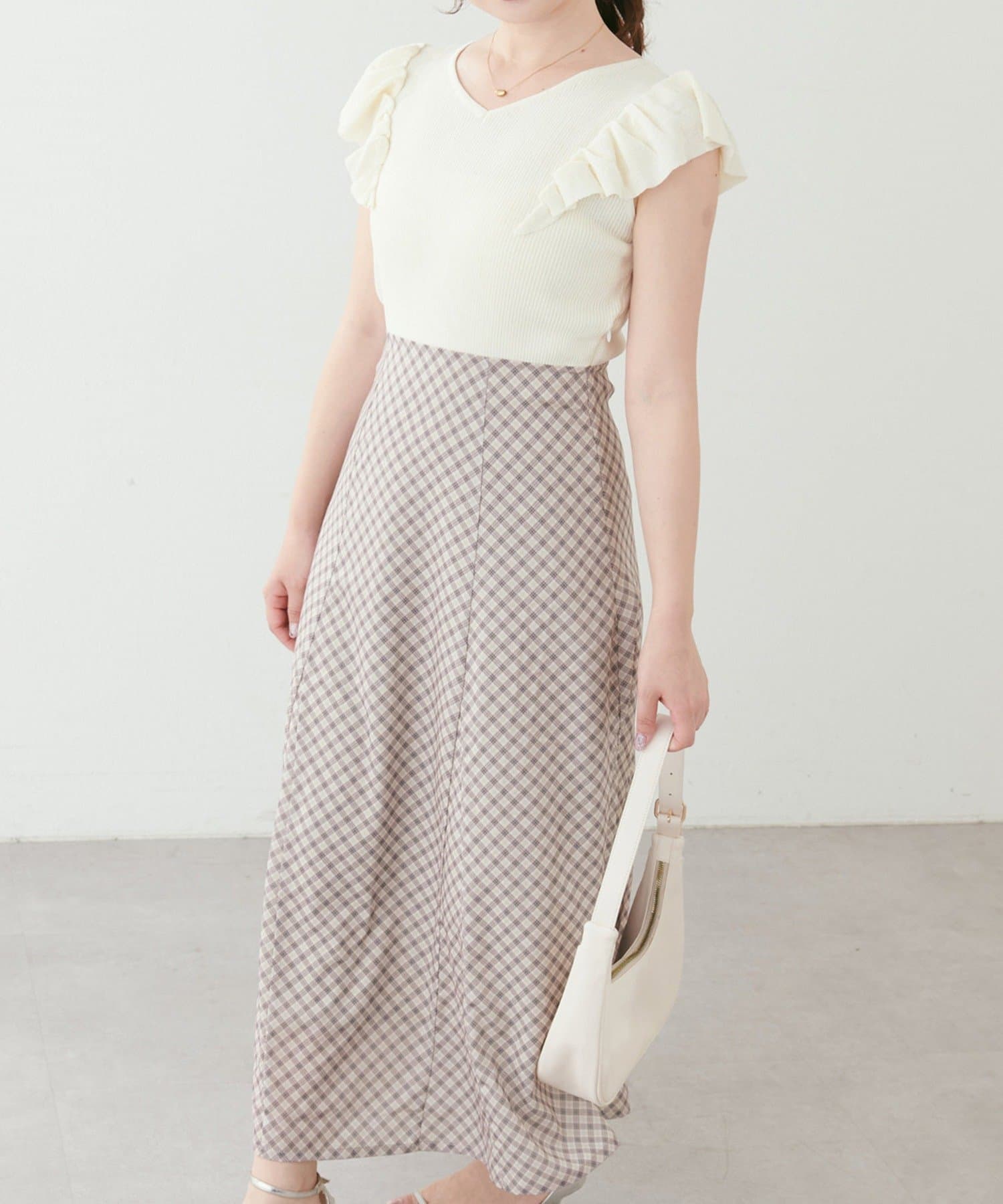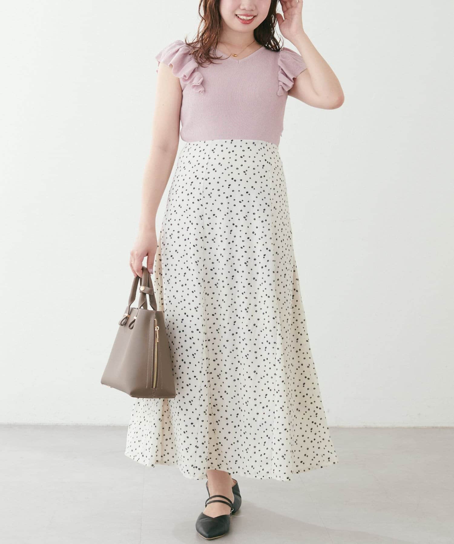 ほんのりハイウエスト切り替えのスカート部分は、ゆるやかなくびれで女性らしさ際立つシルエットに仕上げました。