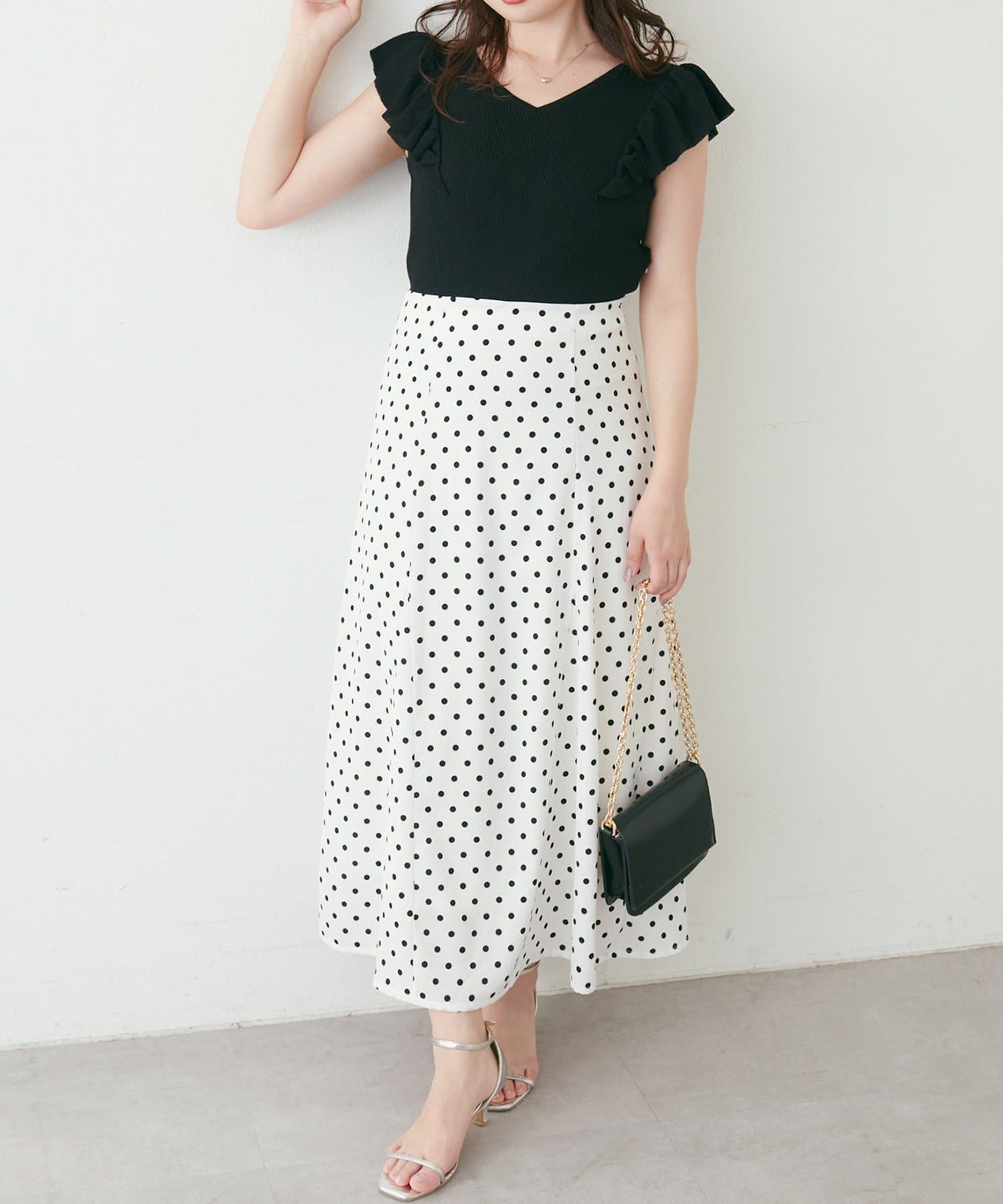 スカート部分は、つるんと落ち感の出る素材なので、裾の揺れまで抜かりなく女性らしさを演出