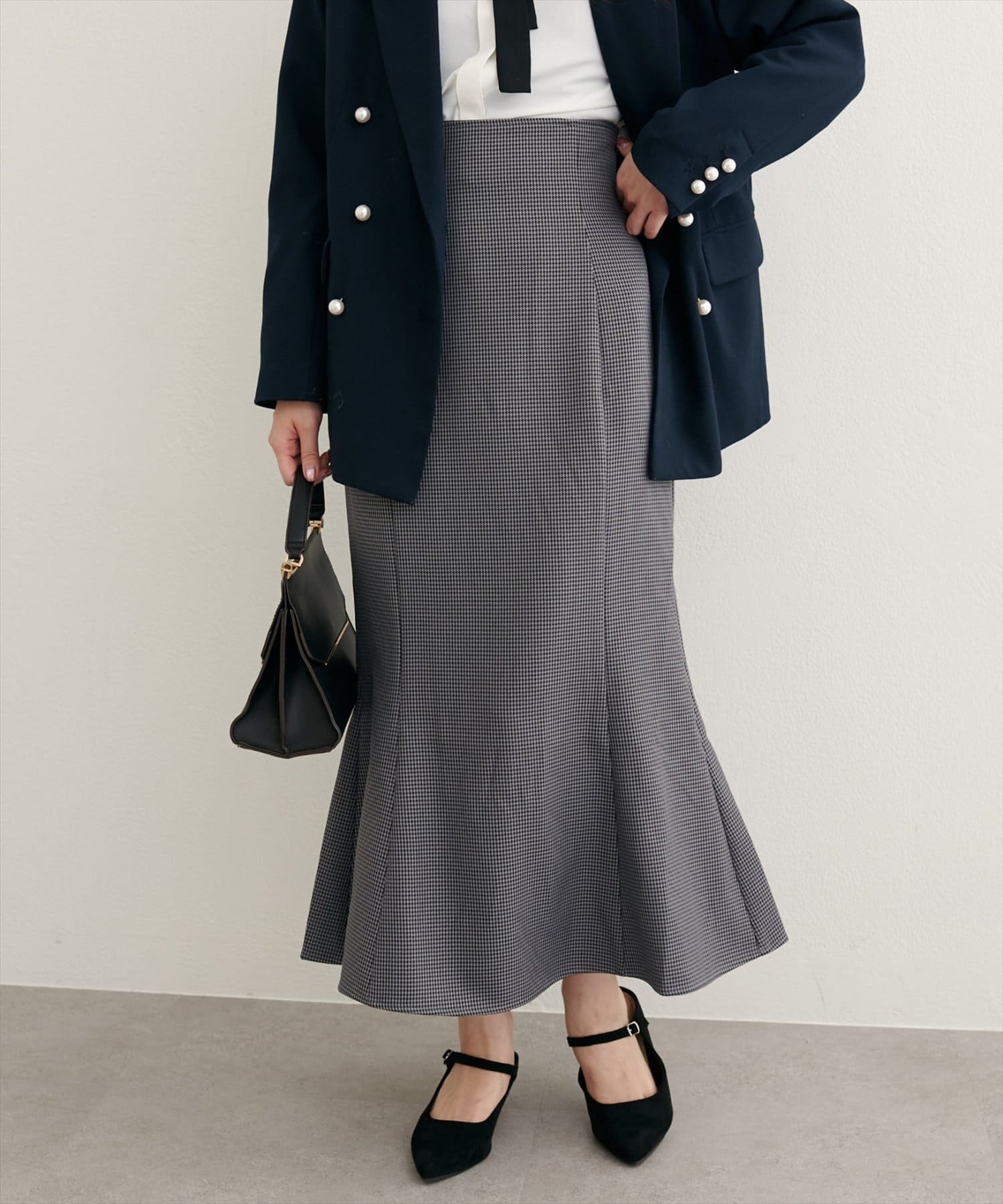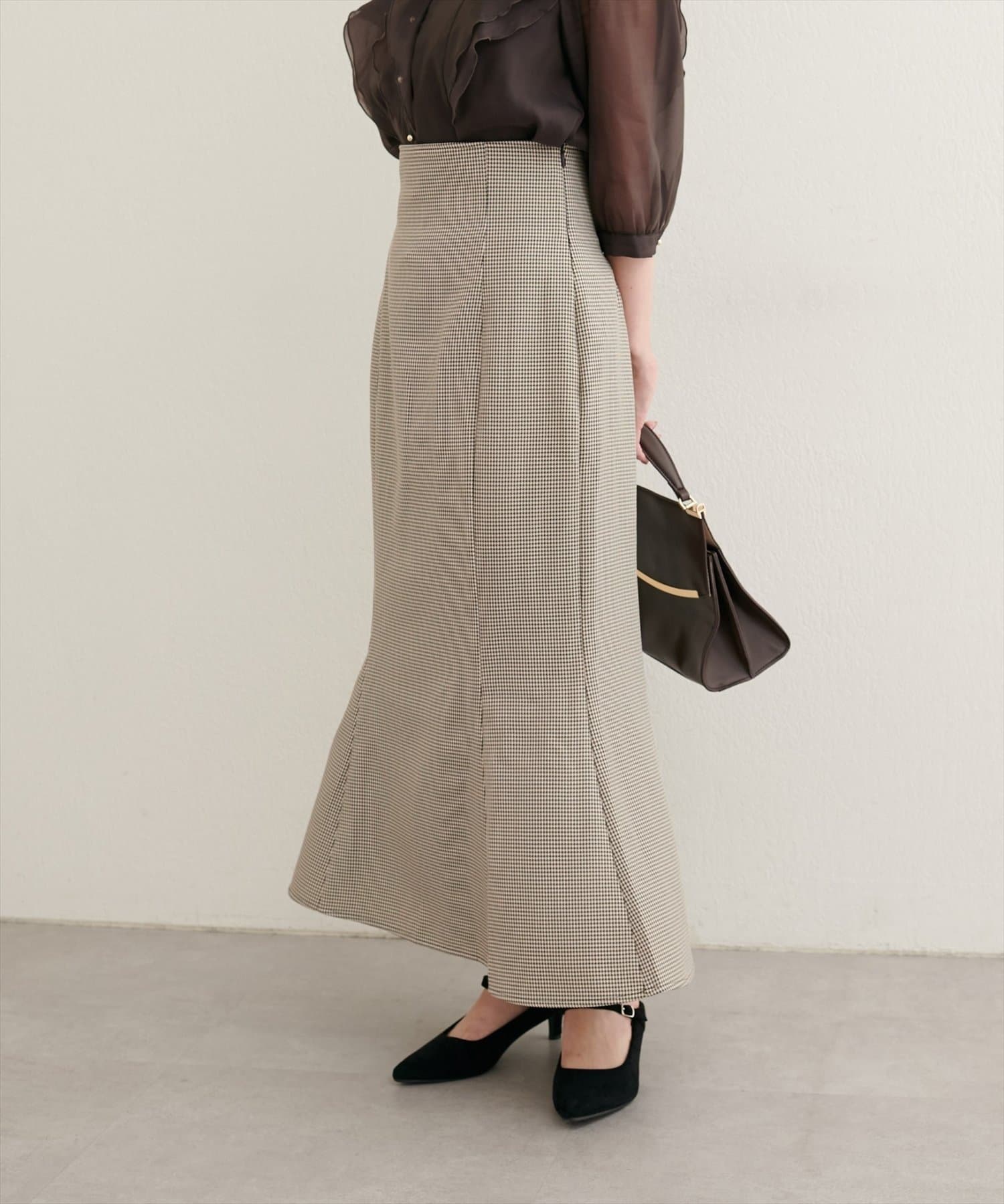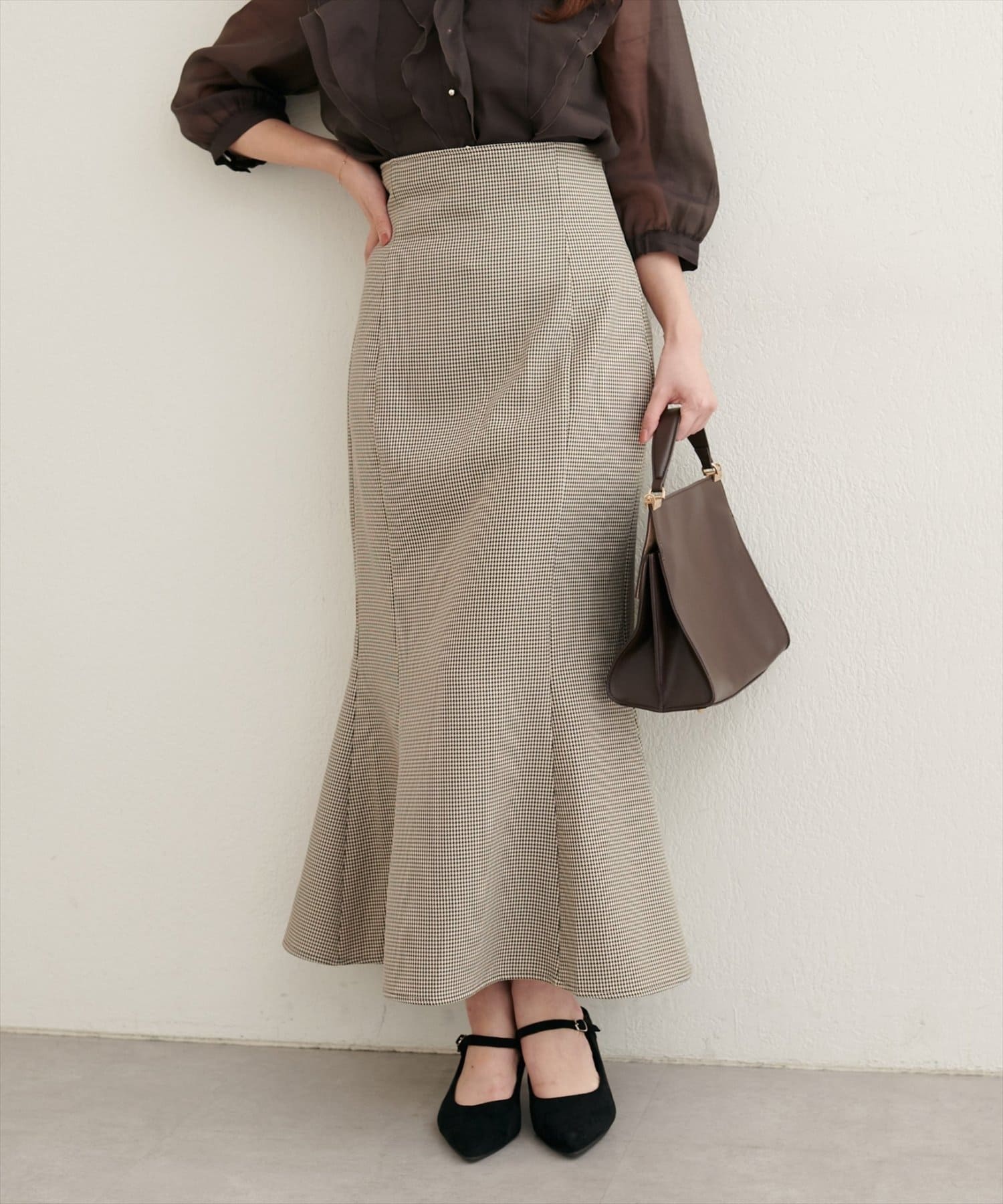 ベージュ、スミクロの千鳥柄はハリのある生地感でより綺麗なシルエットです。