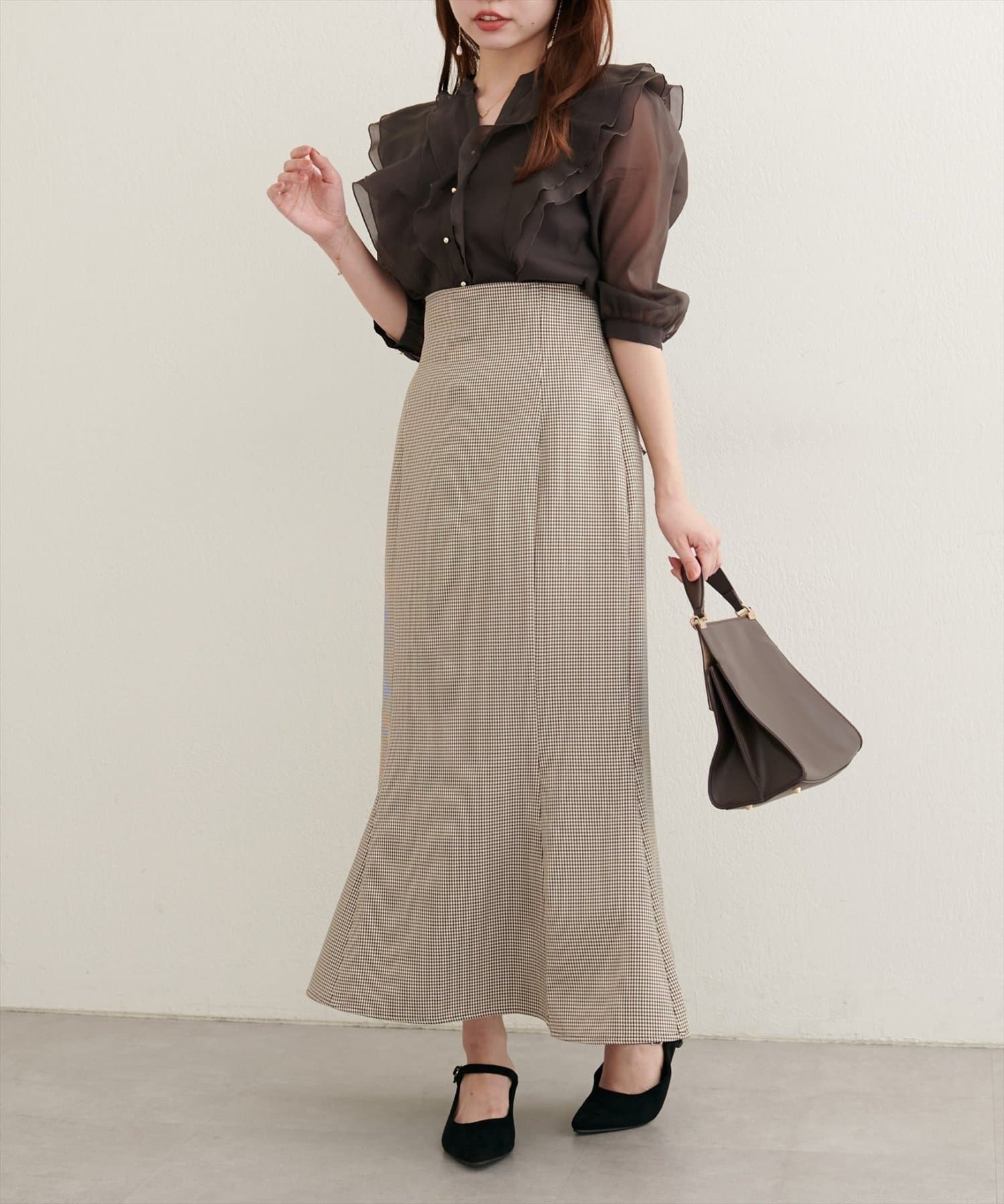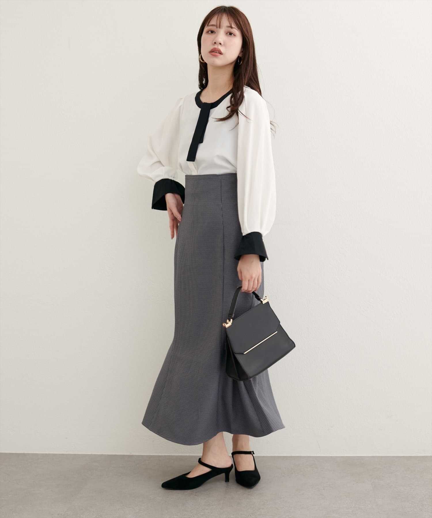 ブラウスやニットと合わせてきれいめスタイリング、ジャケットやアウターも着やすいシルエットです。