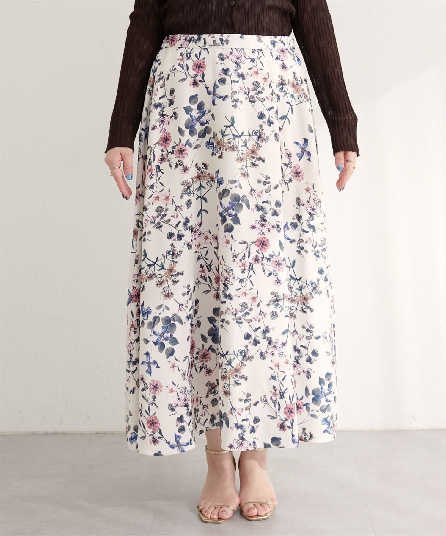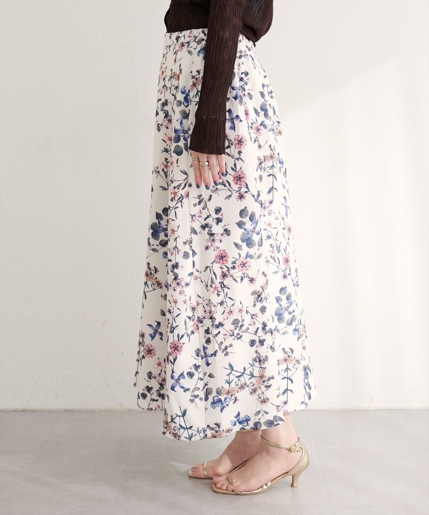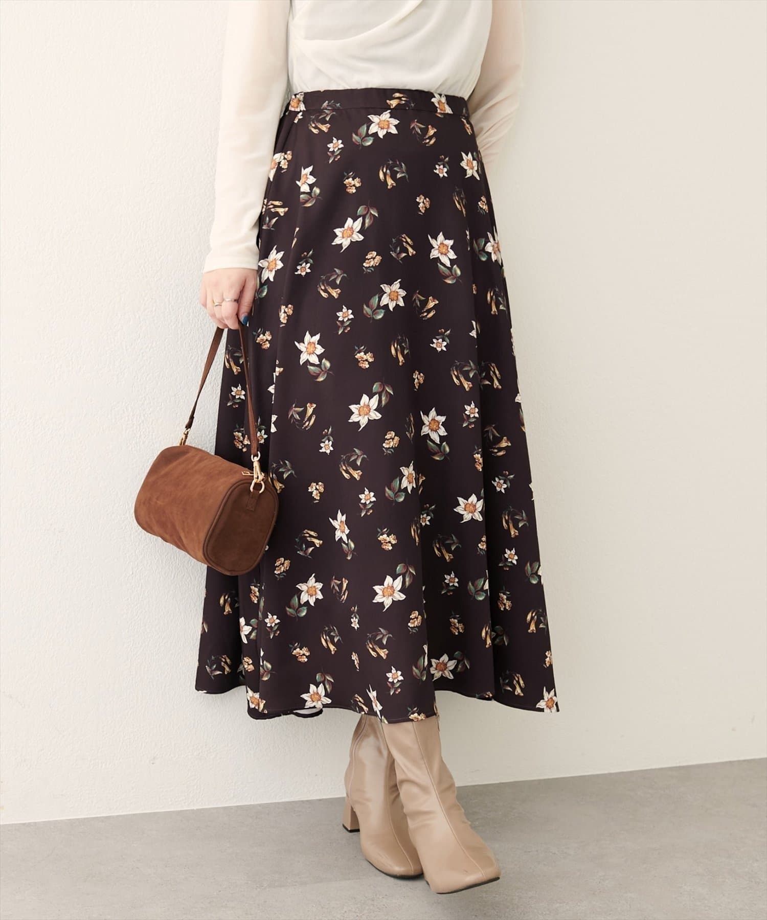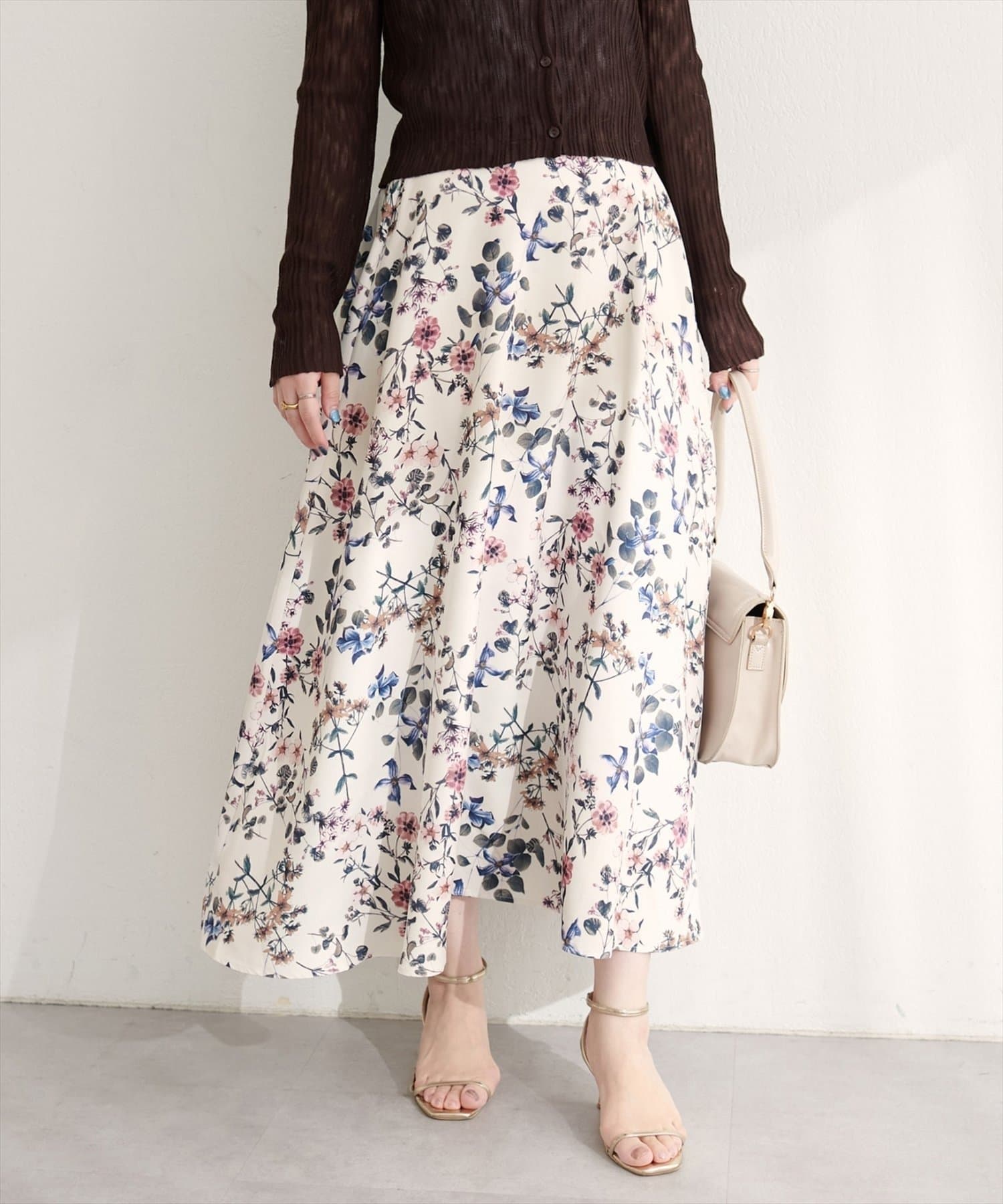 歩くたびにふわりと揺れるシルエットが、女性らしさを引き立てるフロリエンタルフレアスカート。