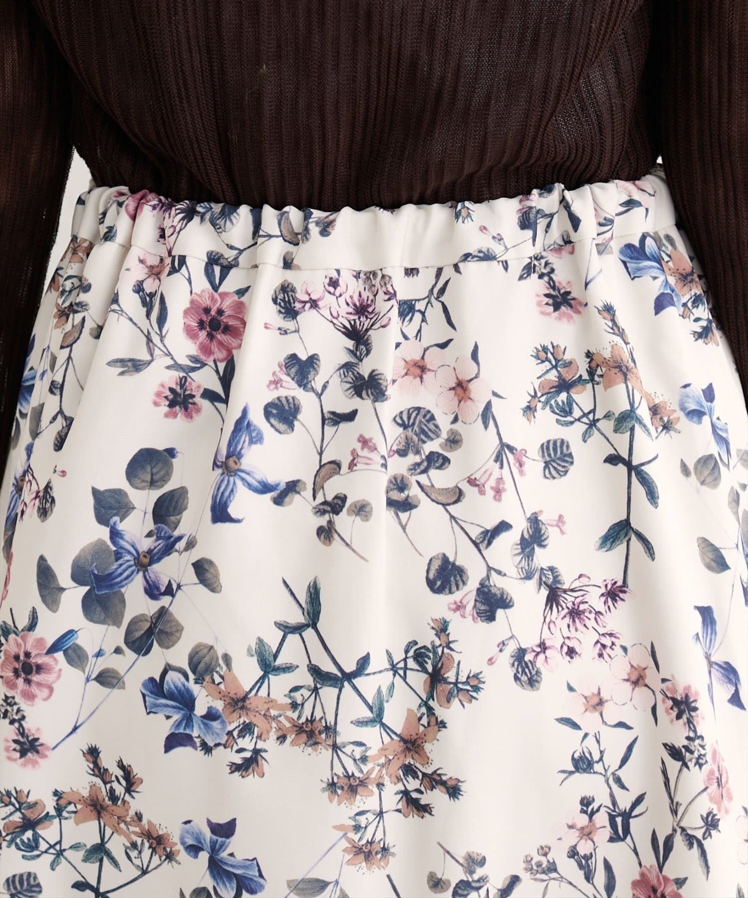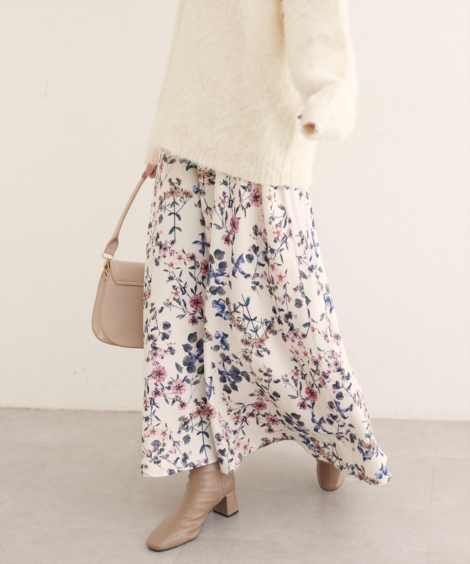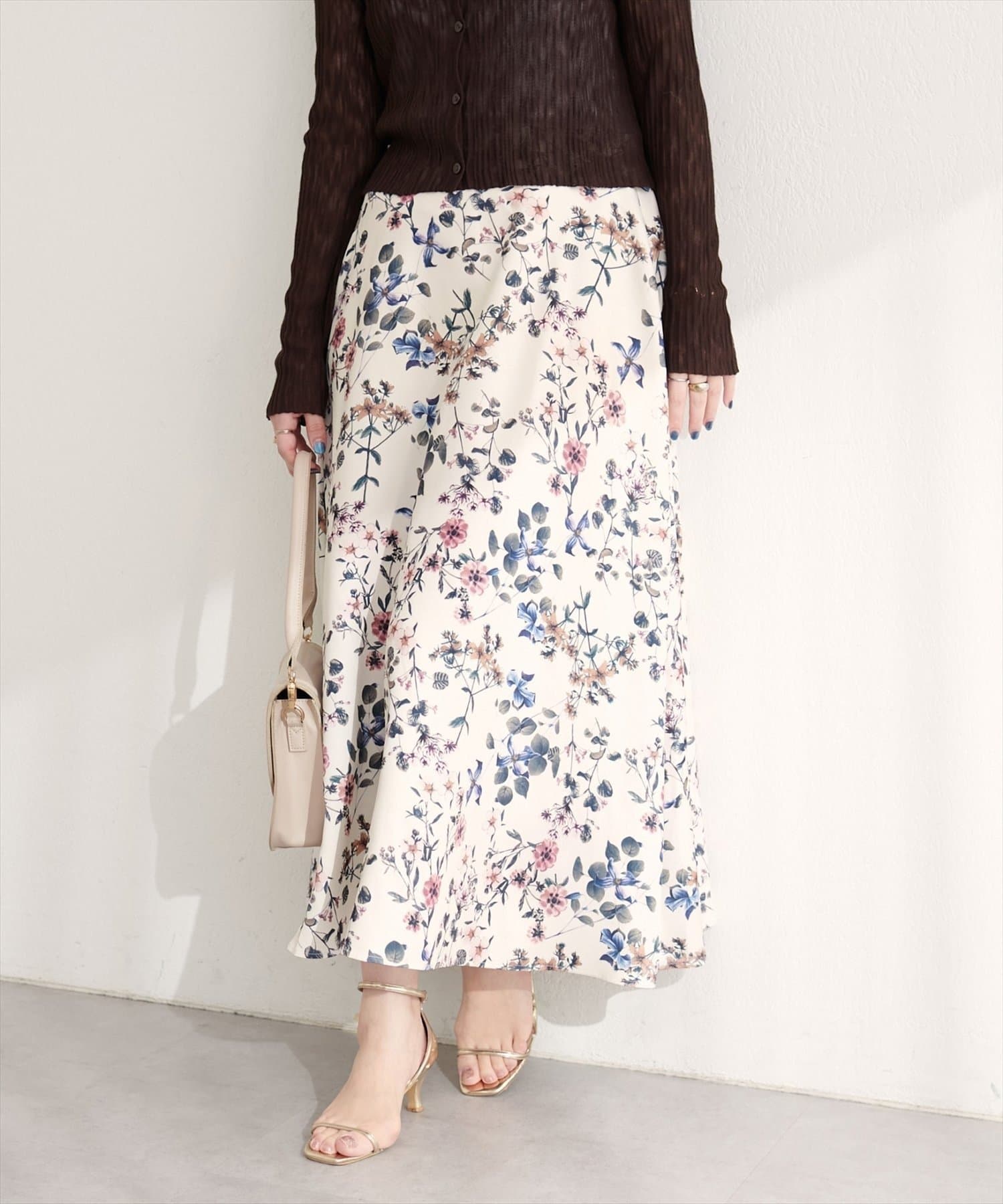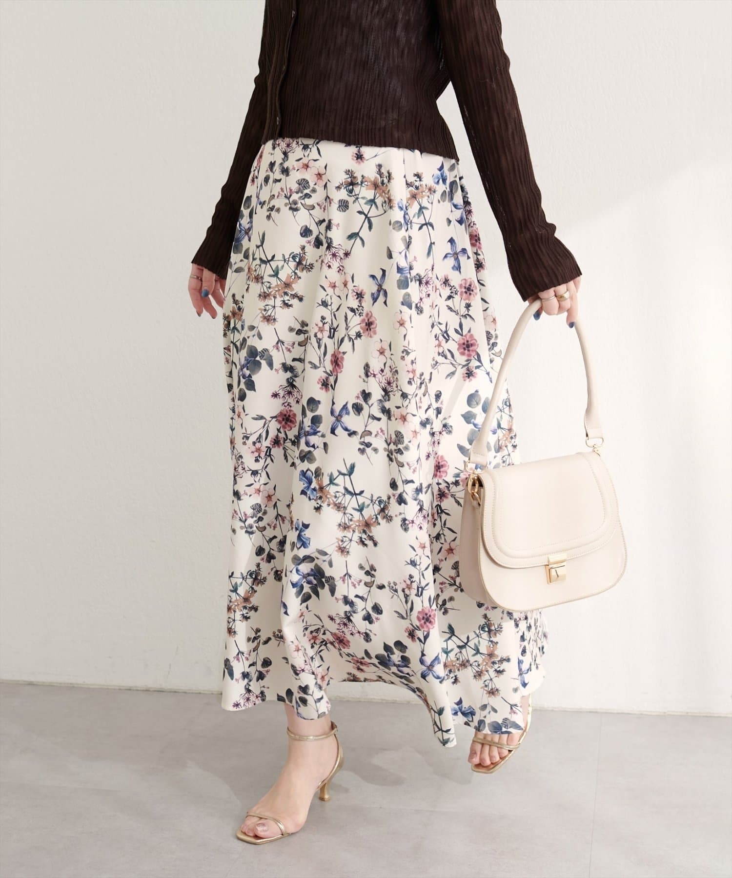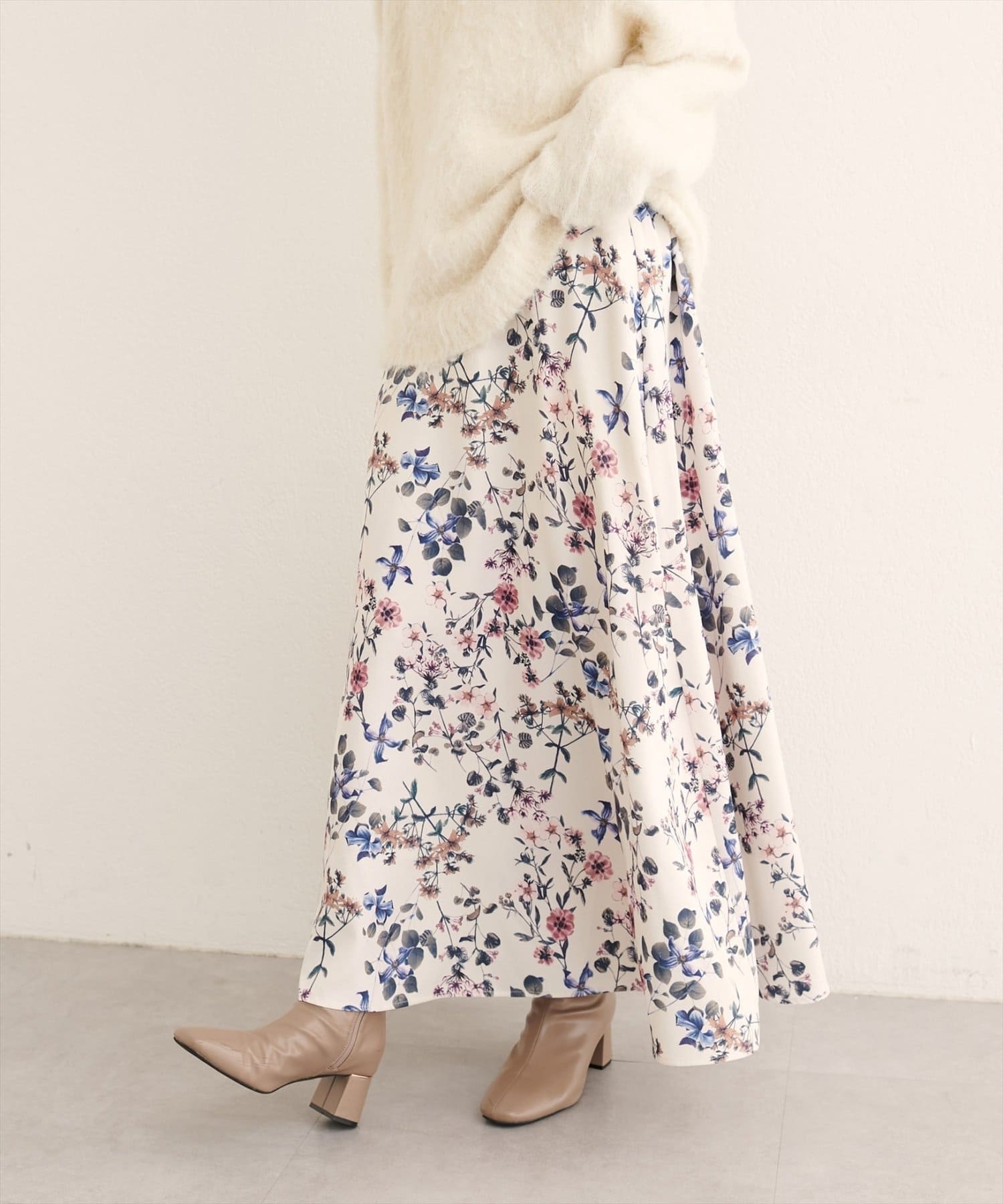 歩くたびにふわりと揺れるシルエットが、女性らしさを引き立てるフロリエンタルフレアスカート。