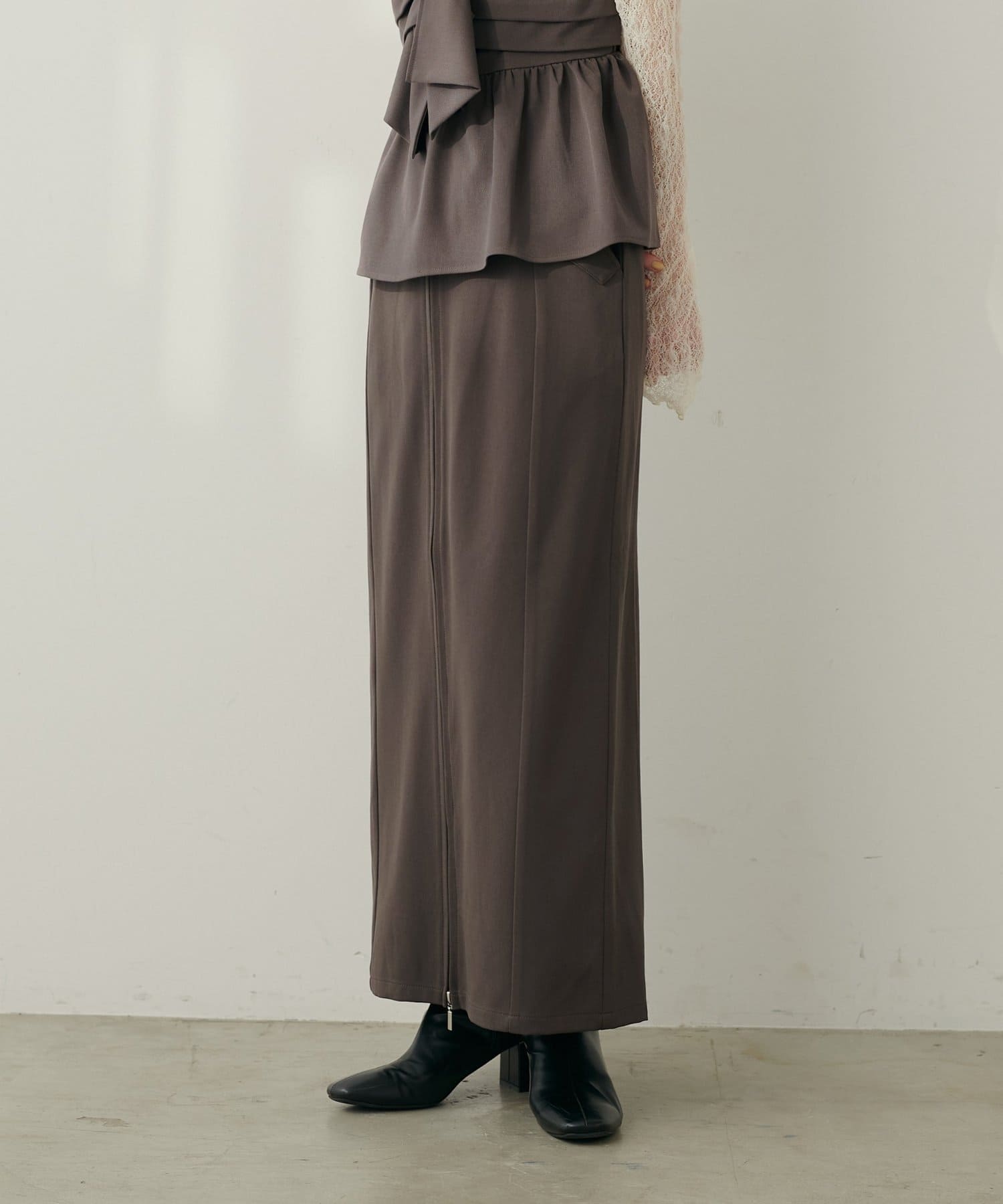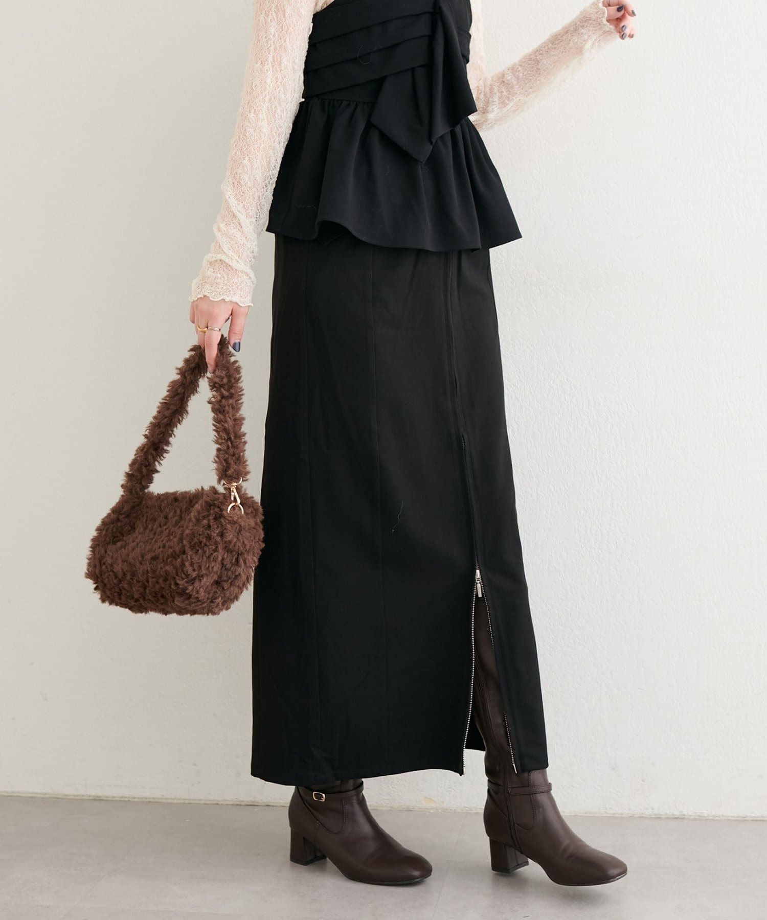 フロント部分にジップが施されており、ジップを開けてスリット見せして着るのがおすすめです。