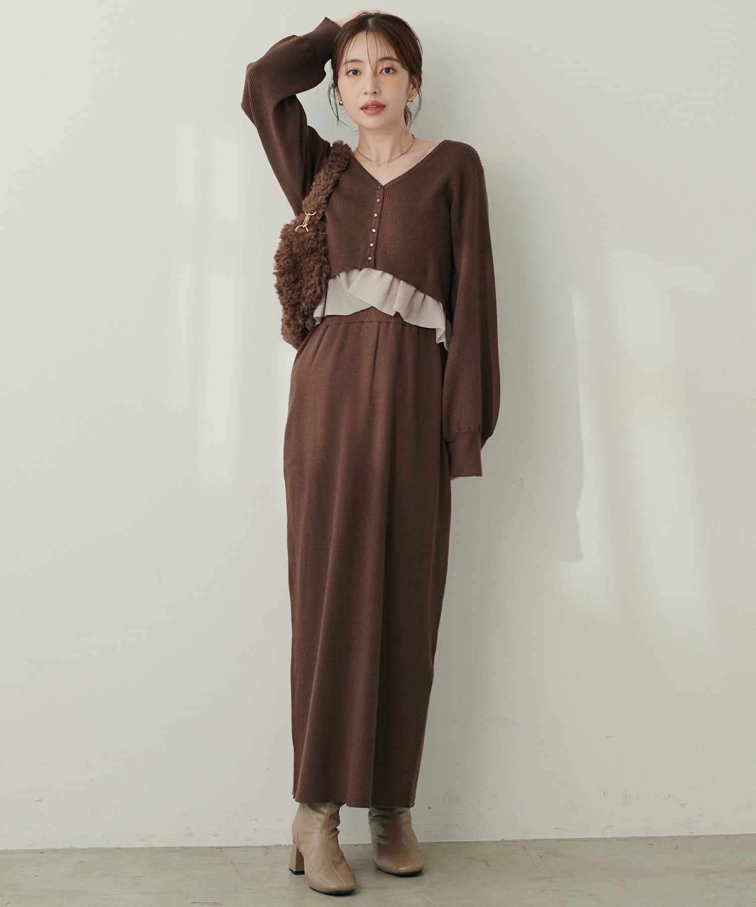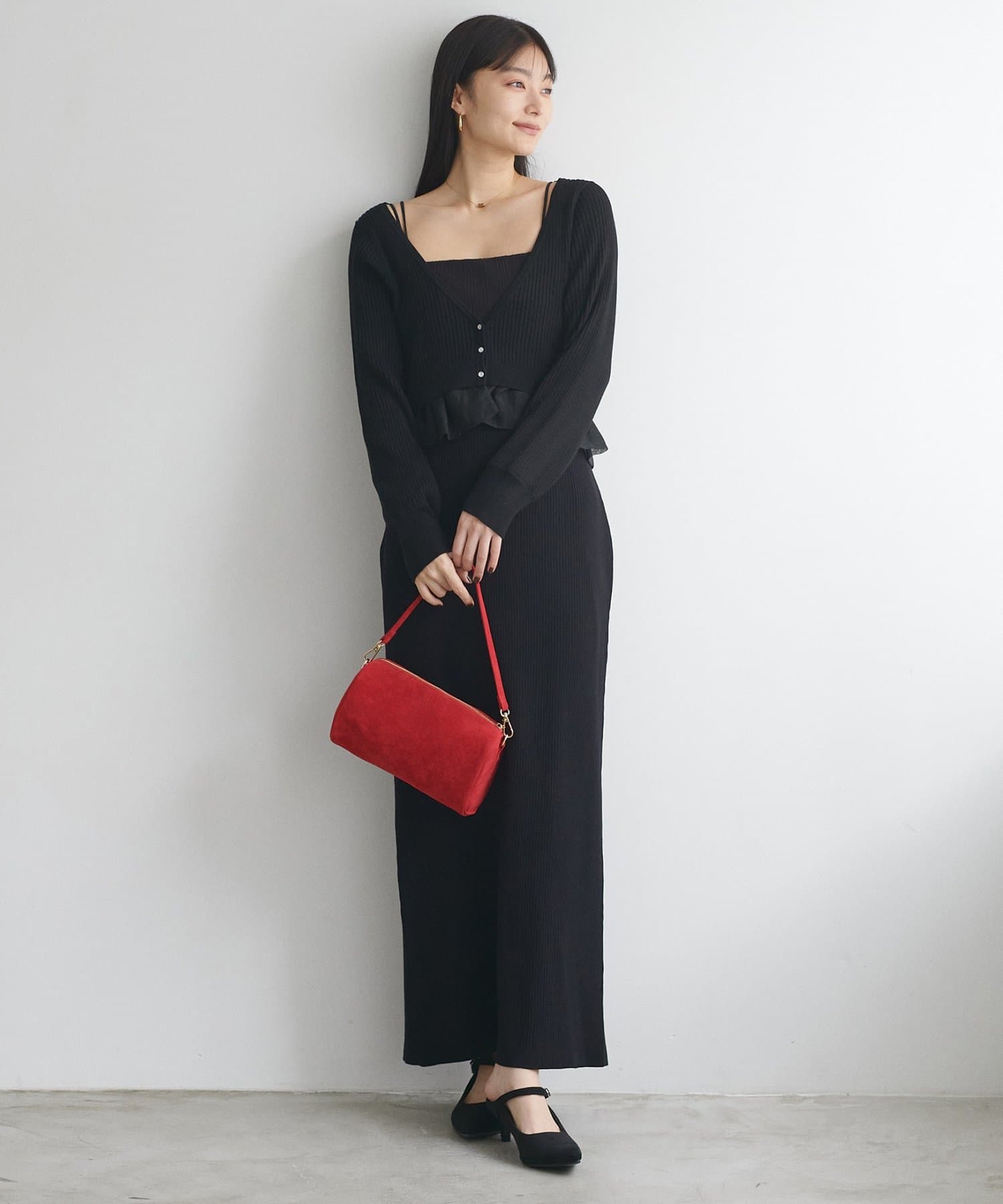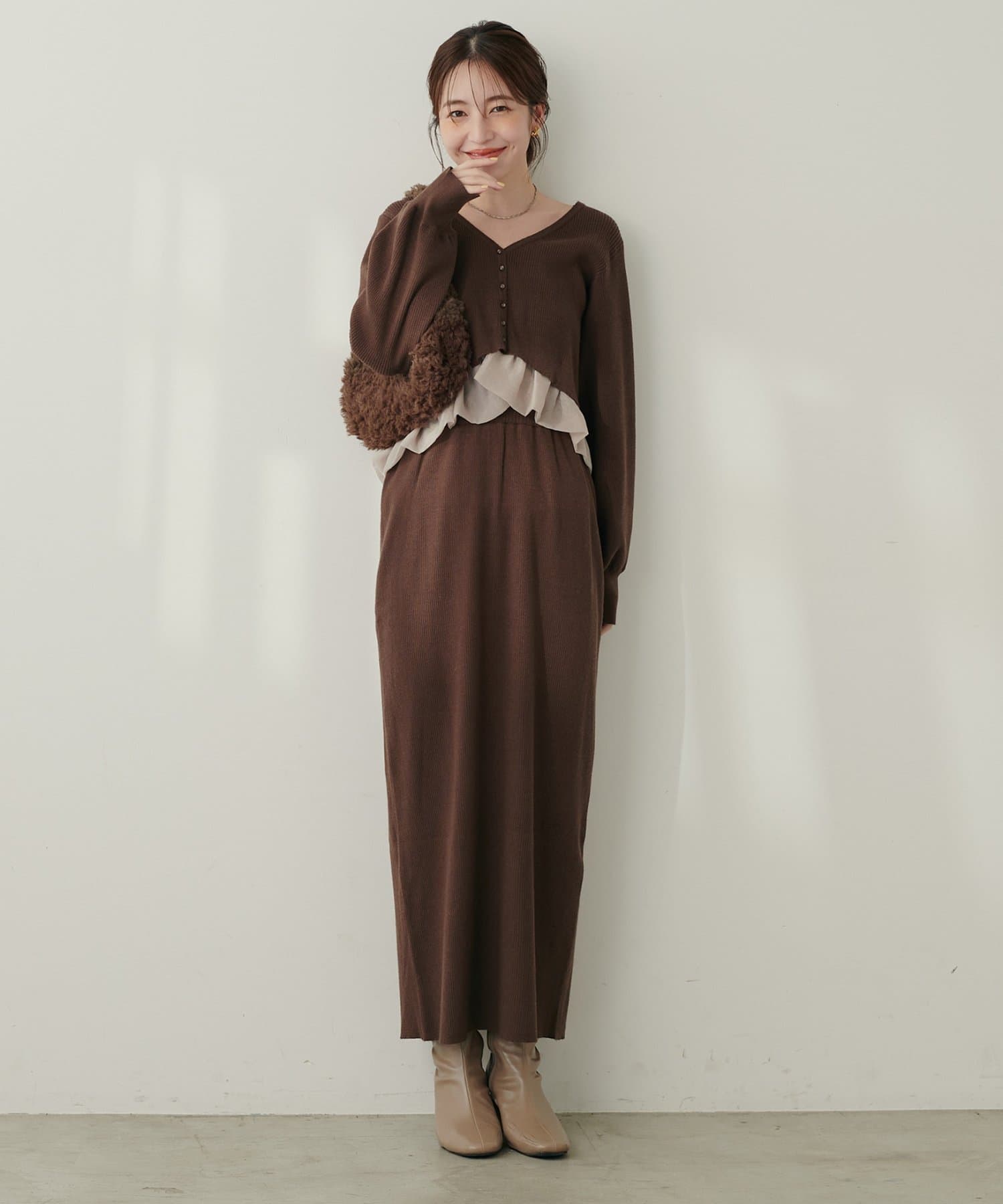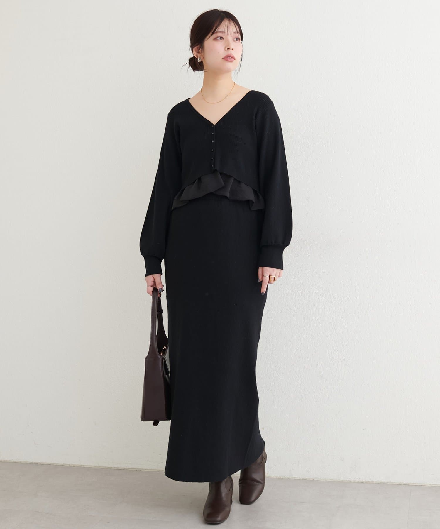 縦のラインを強調するリブ編みが、ボディラインを美しく引き立て、スタイルアップ効果も期待できます。