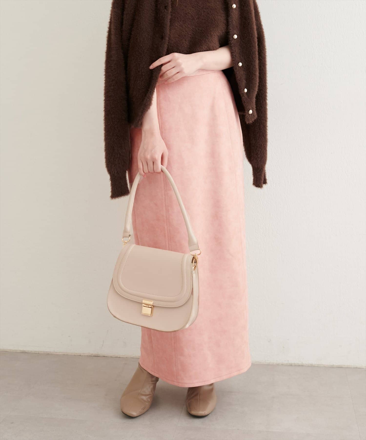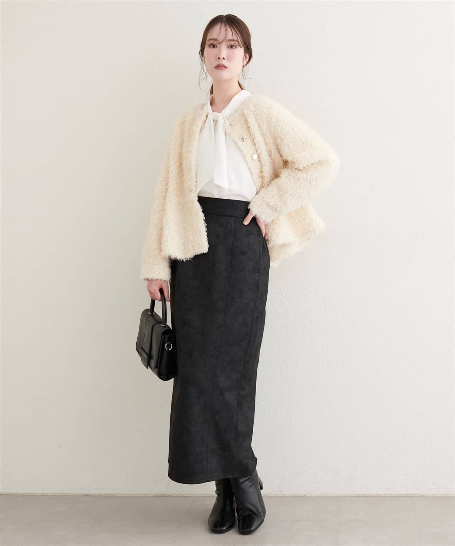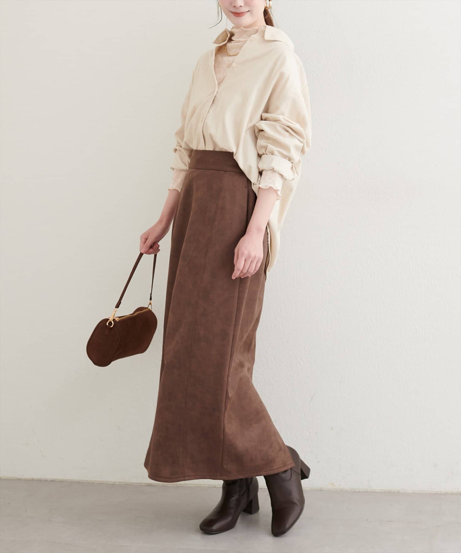 • natural couture(ナチュラルクチュール) 合皮風ポンチスエードタイトスカート